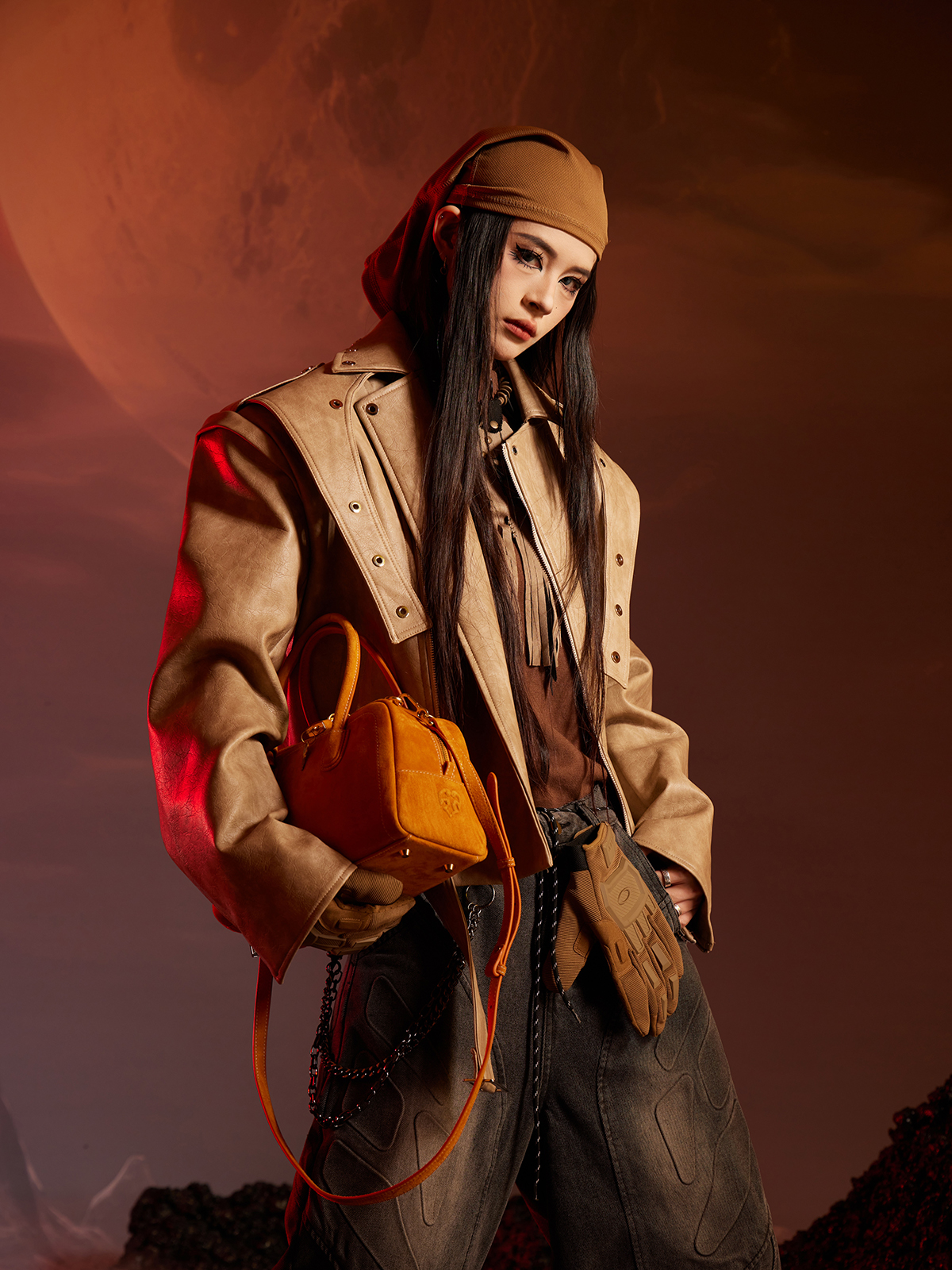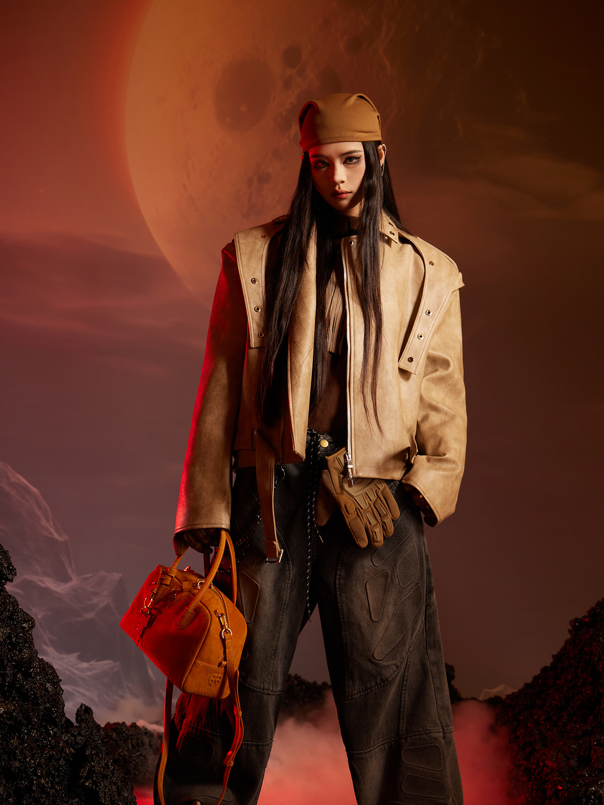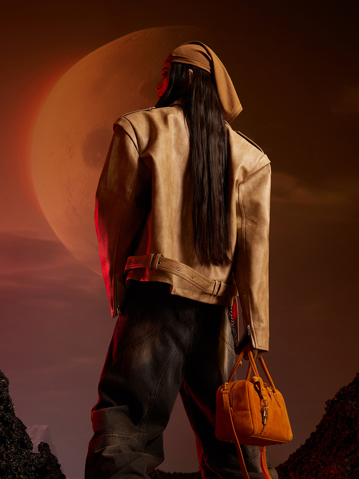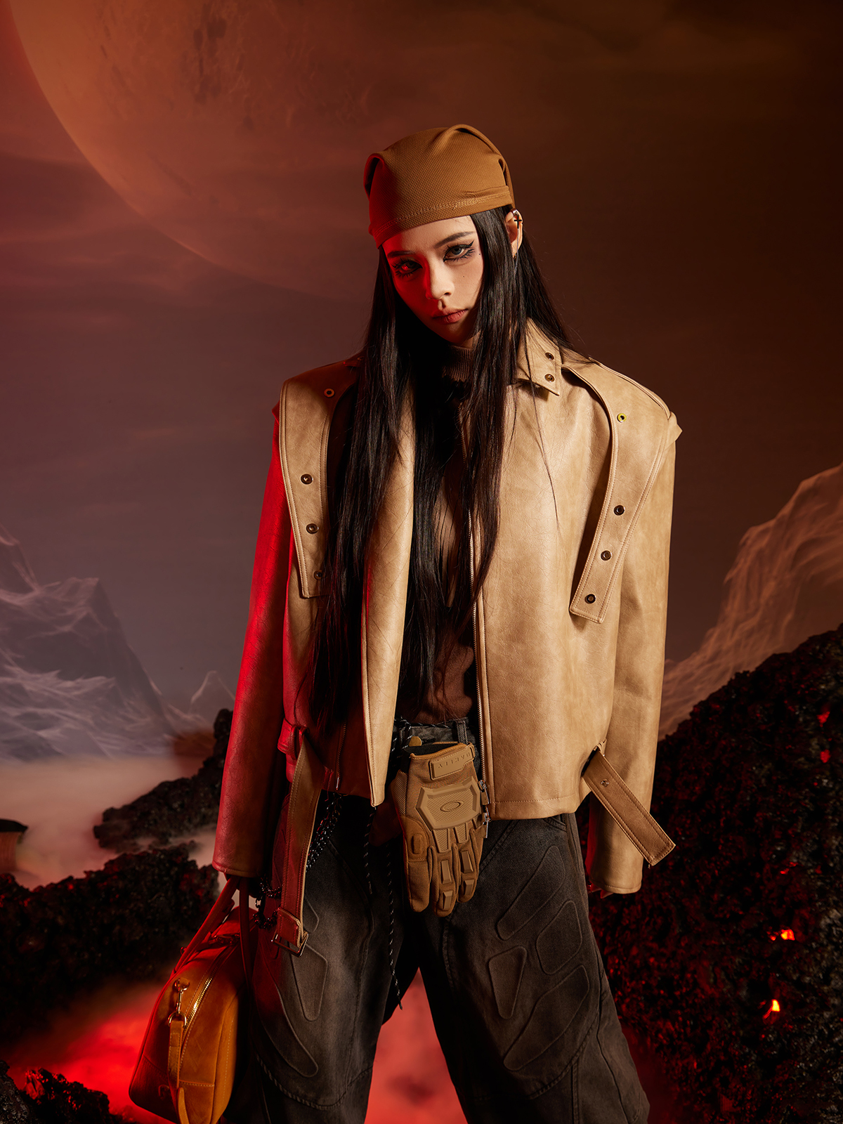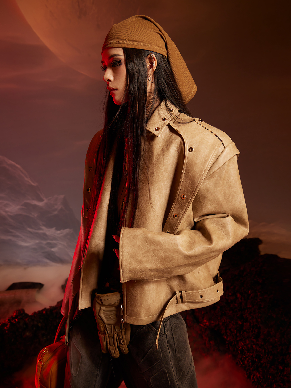 Washed Patchwork PU Leather Jacket WN13456