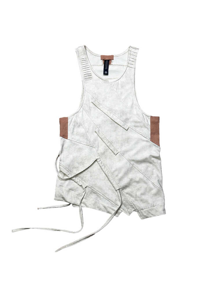 Wax-Dyed Washed Fringe Sleeveless T-Shirt WN13840