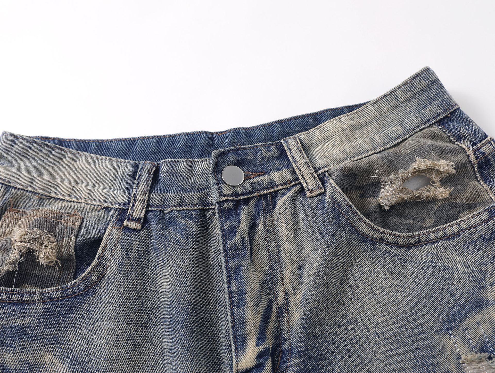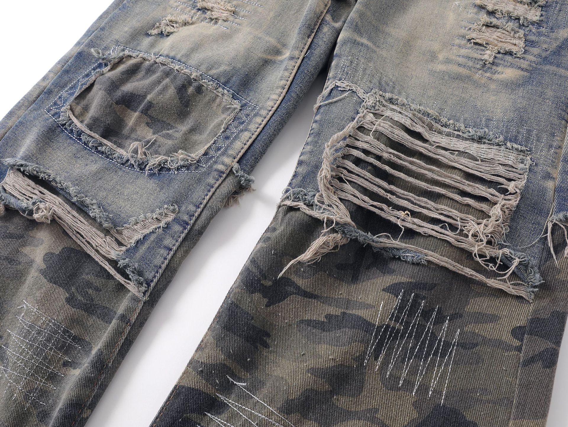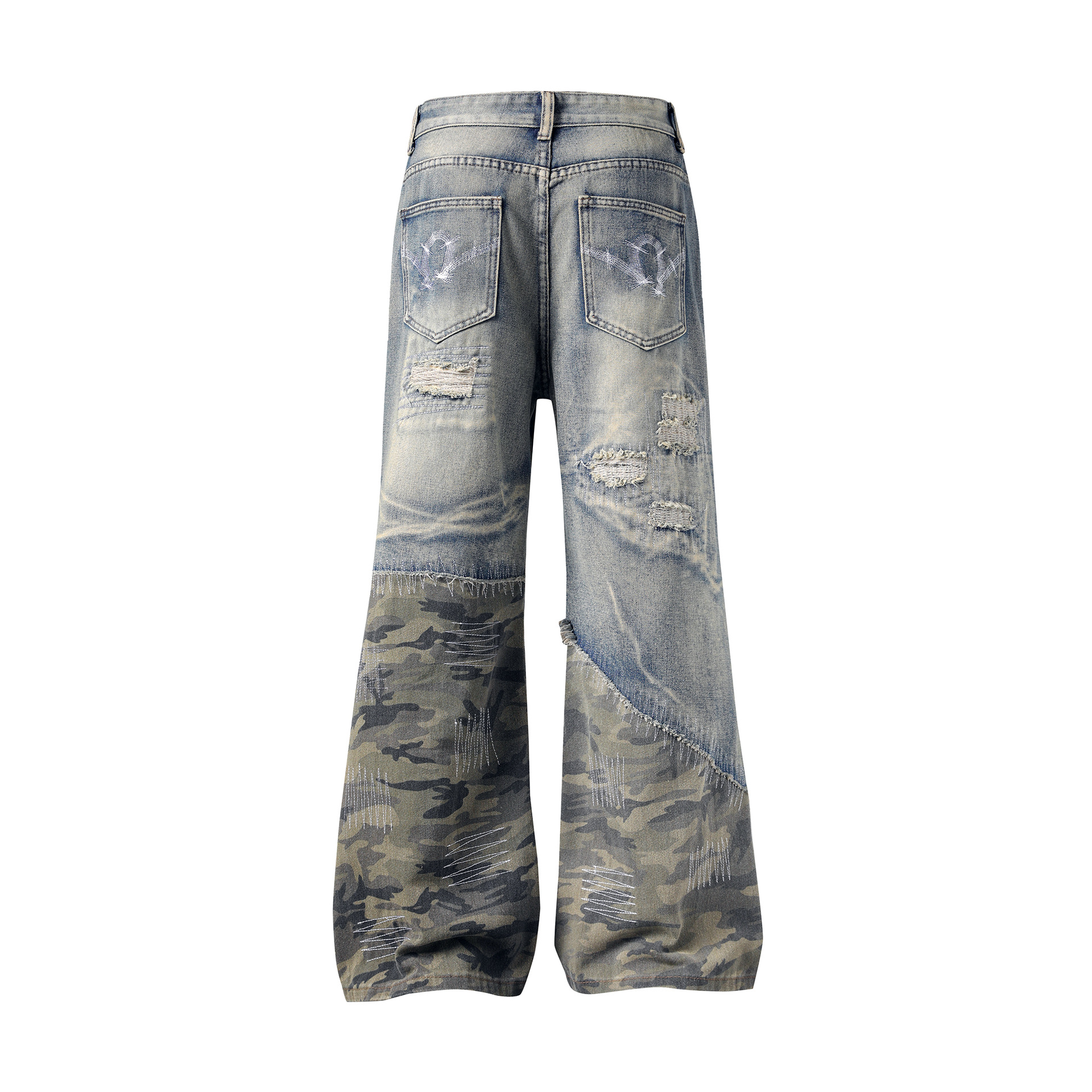 Camouflage Patchwork Damage Denim Jeans WN14445