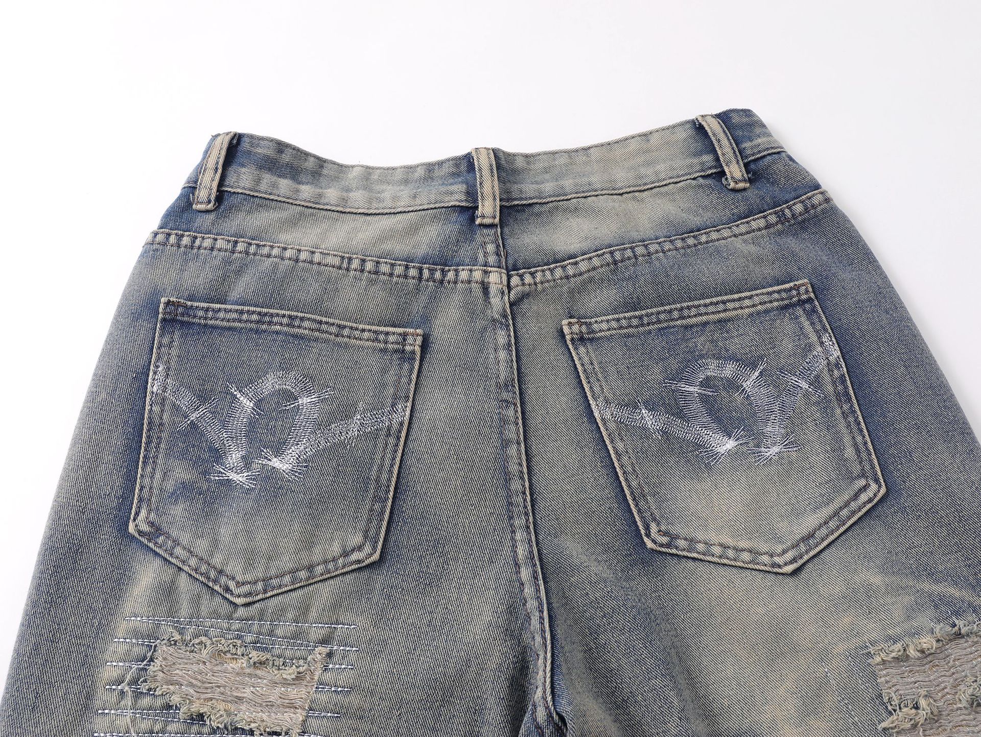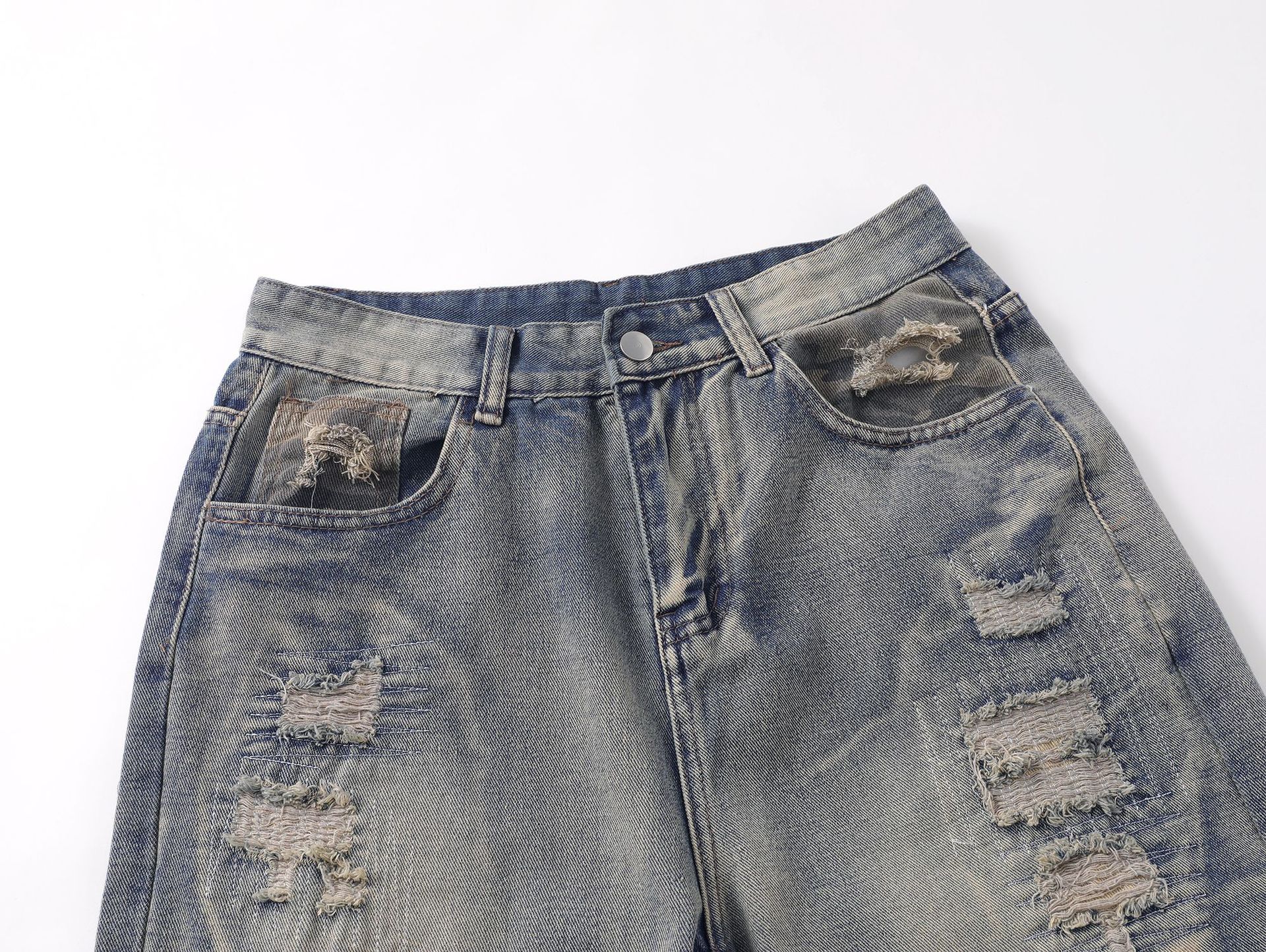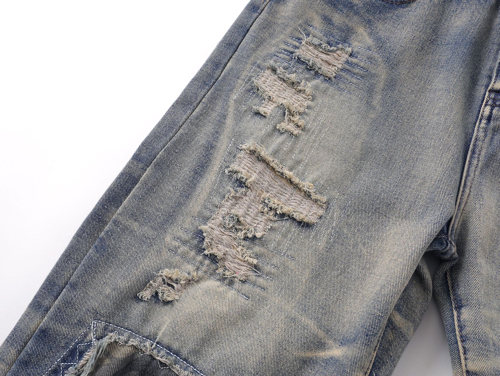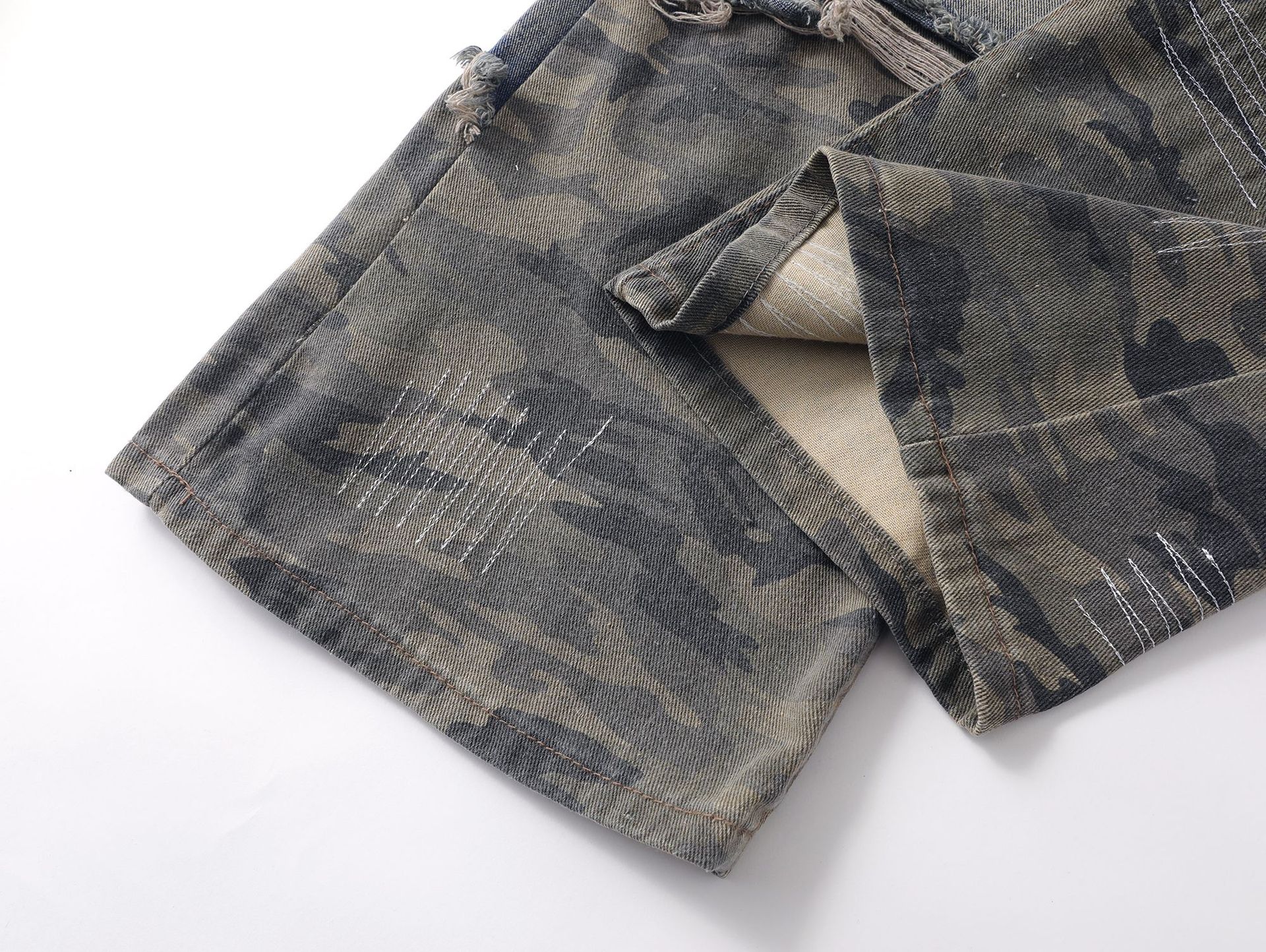 Camouflage Patchwork Damage Denim Jeans WN14445