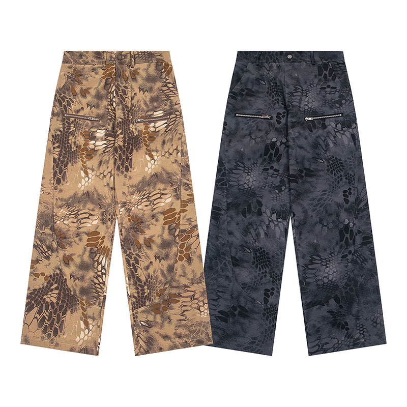 Snakeskin Pattern Wide-Leg Denim Jeans WN15034