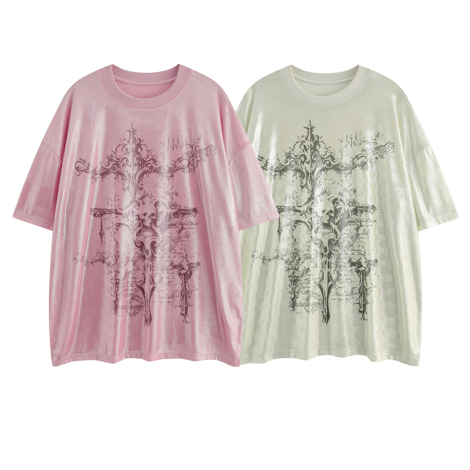 Skull Cross Print Oversize Short Sleeve T-Shirt WN15067