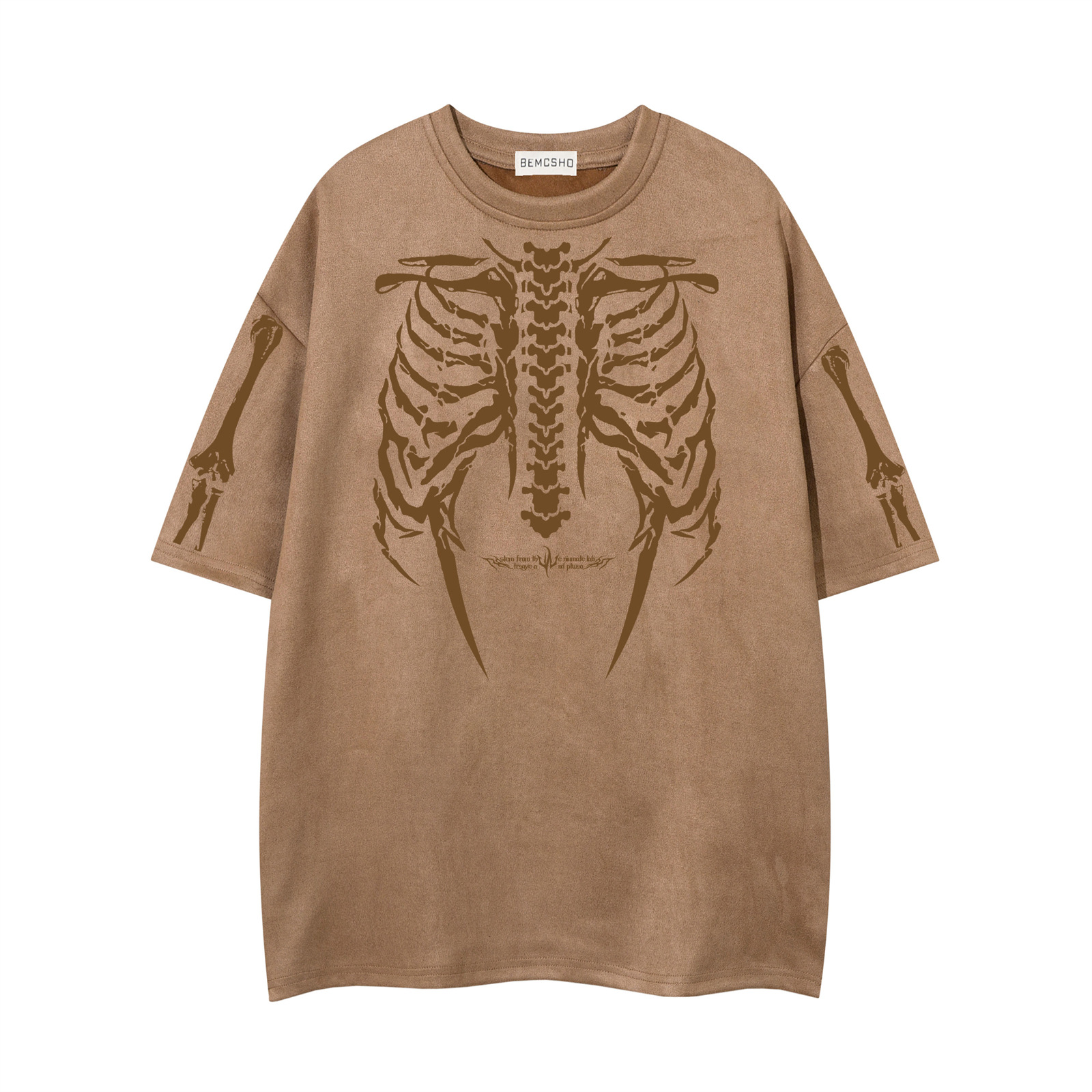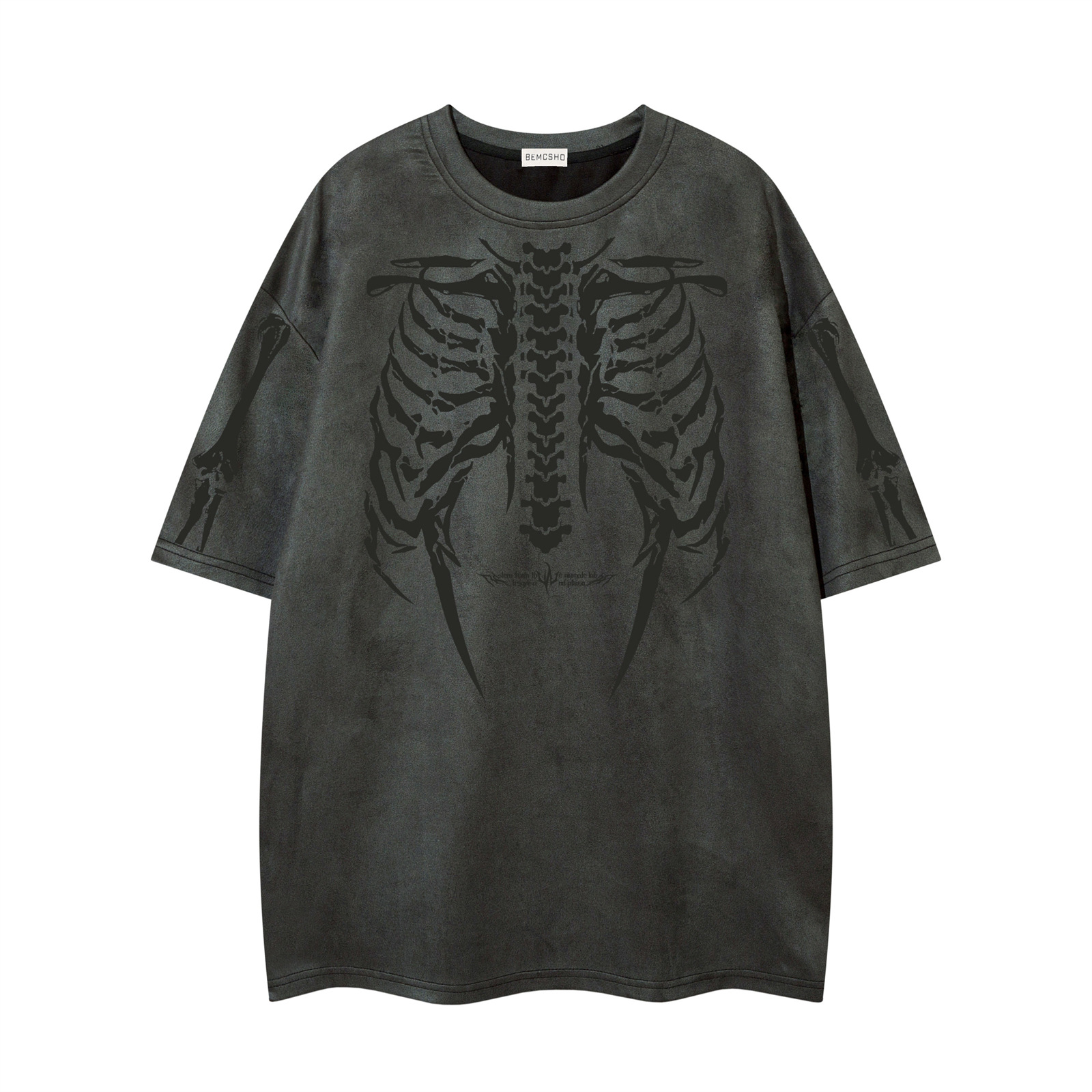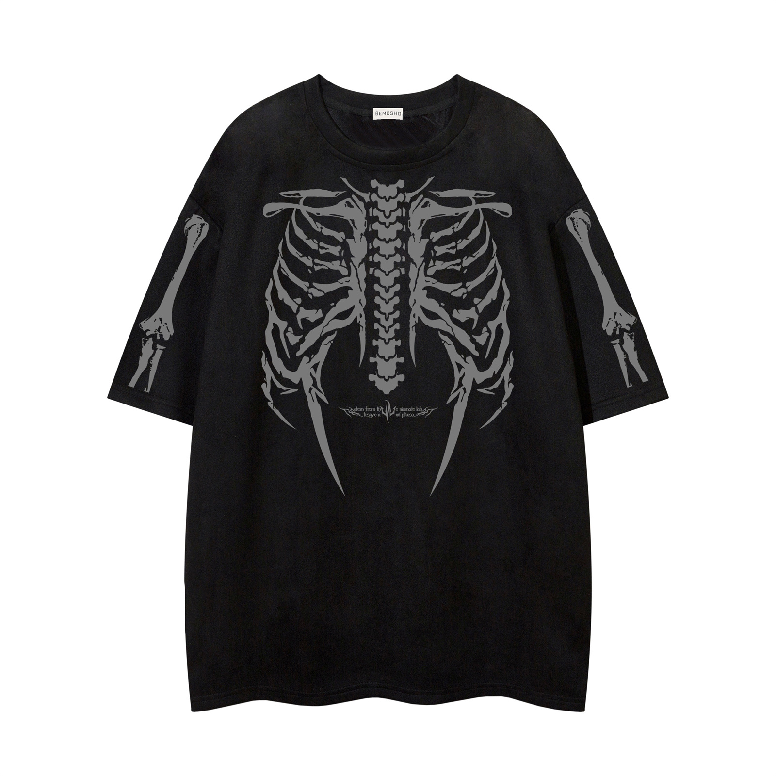 Skeleton Print Design Oversize Short Sleeve T-Shirt WN15081