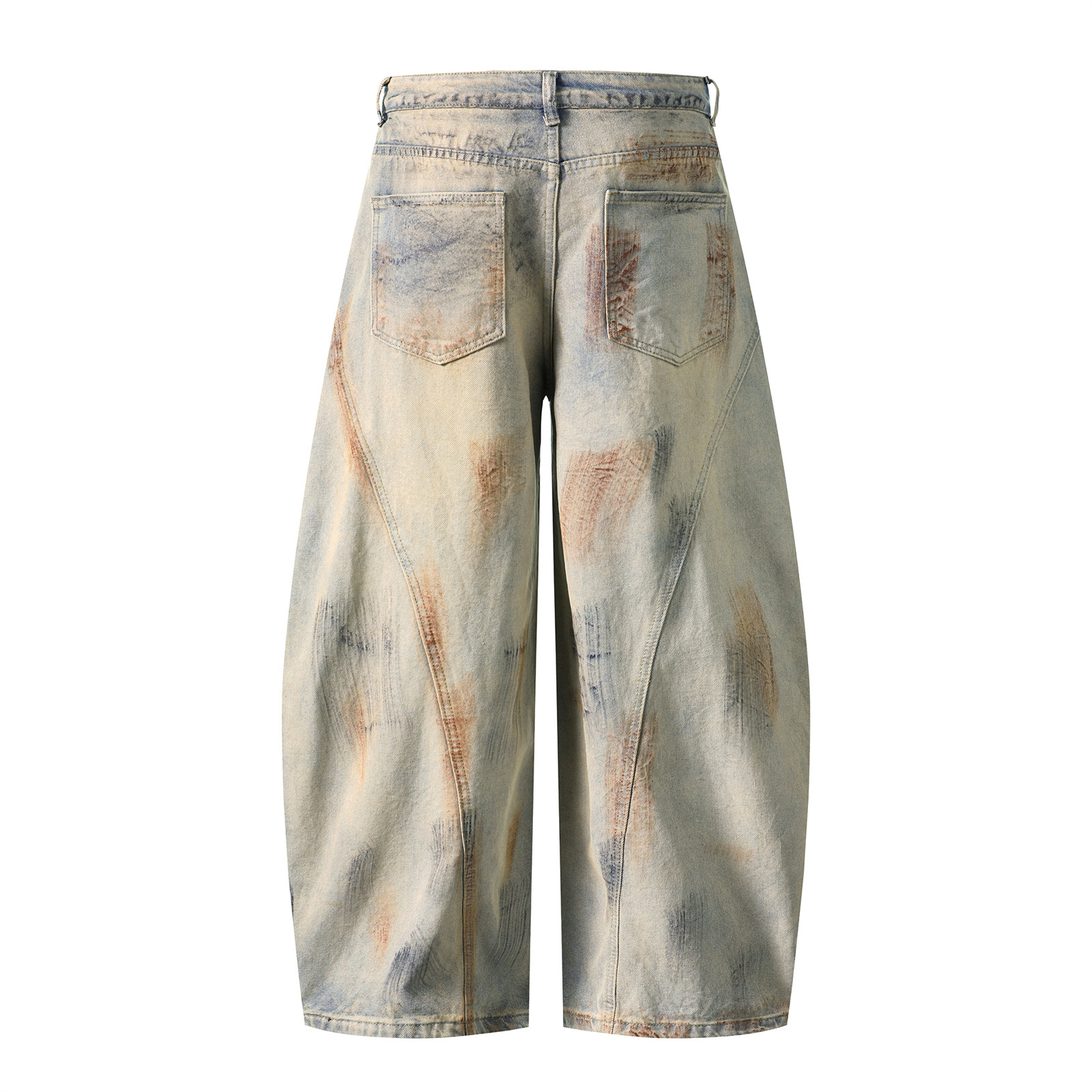 Washed Mud Dye Dirty Wide-Leg Denim Jeans WN15083