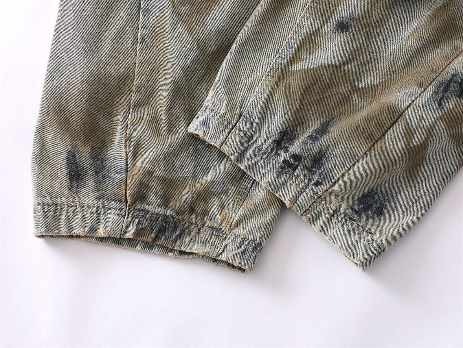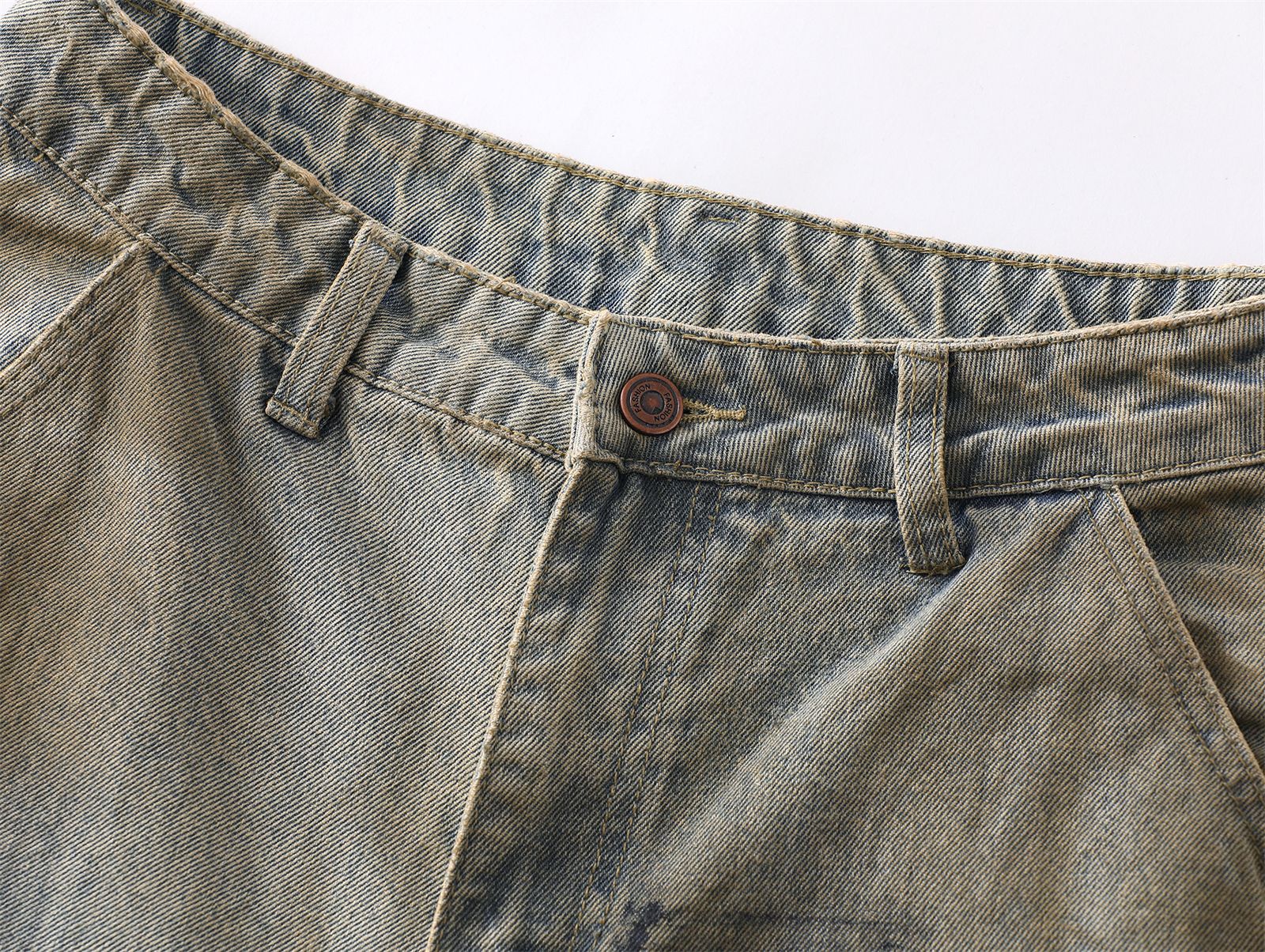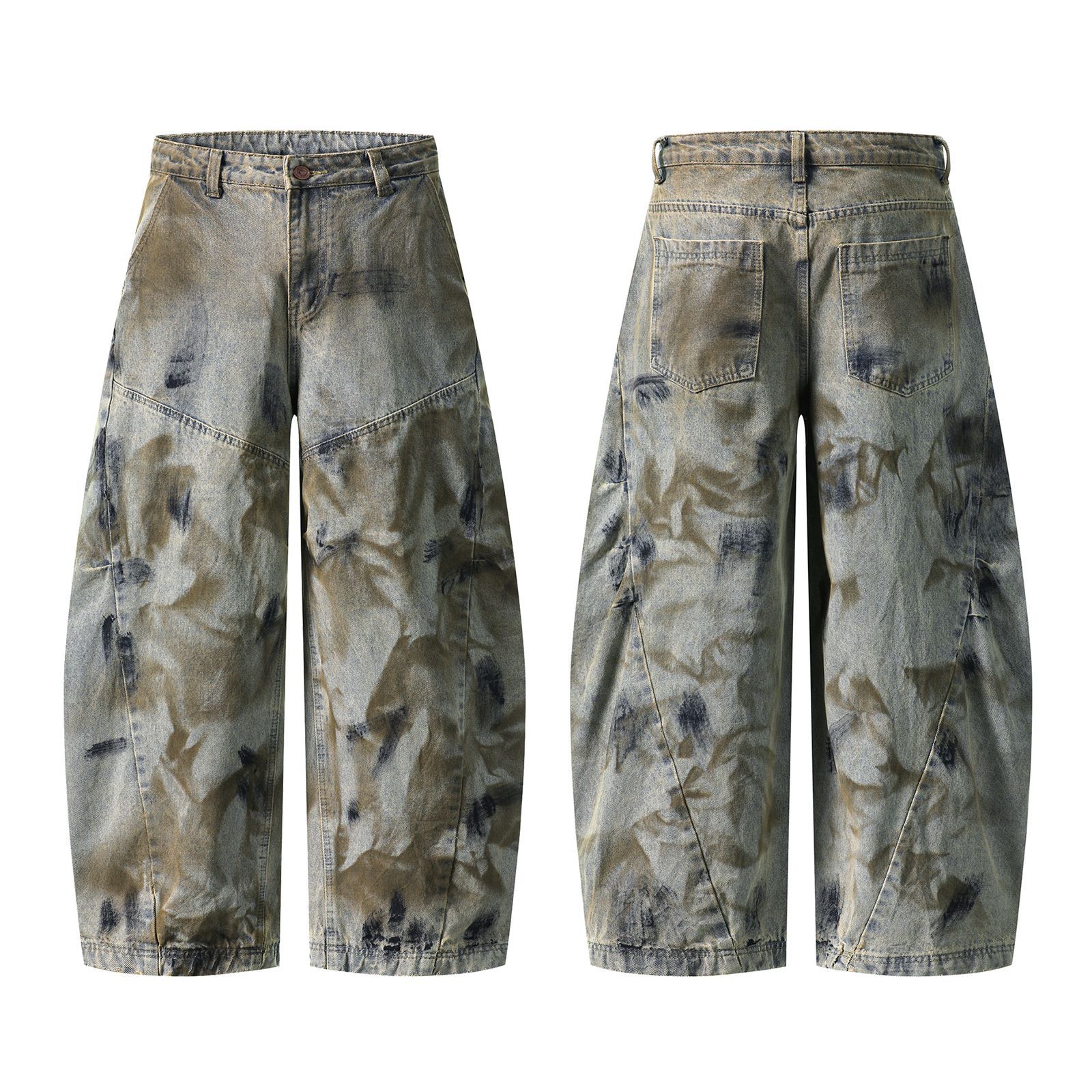 Dirty Wash Curved-Cut Wide-Leg Denim Jeans WN15084