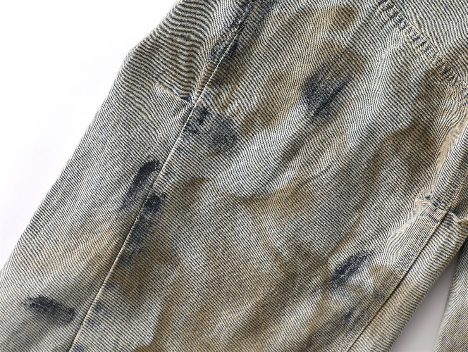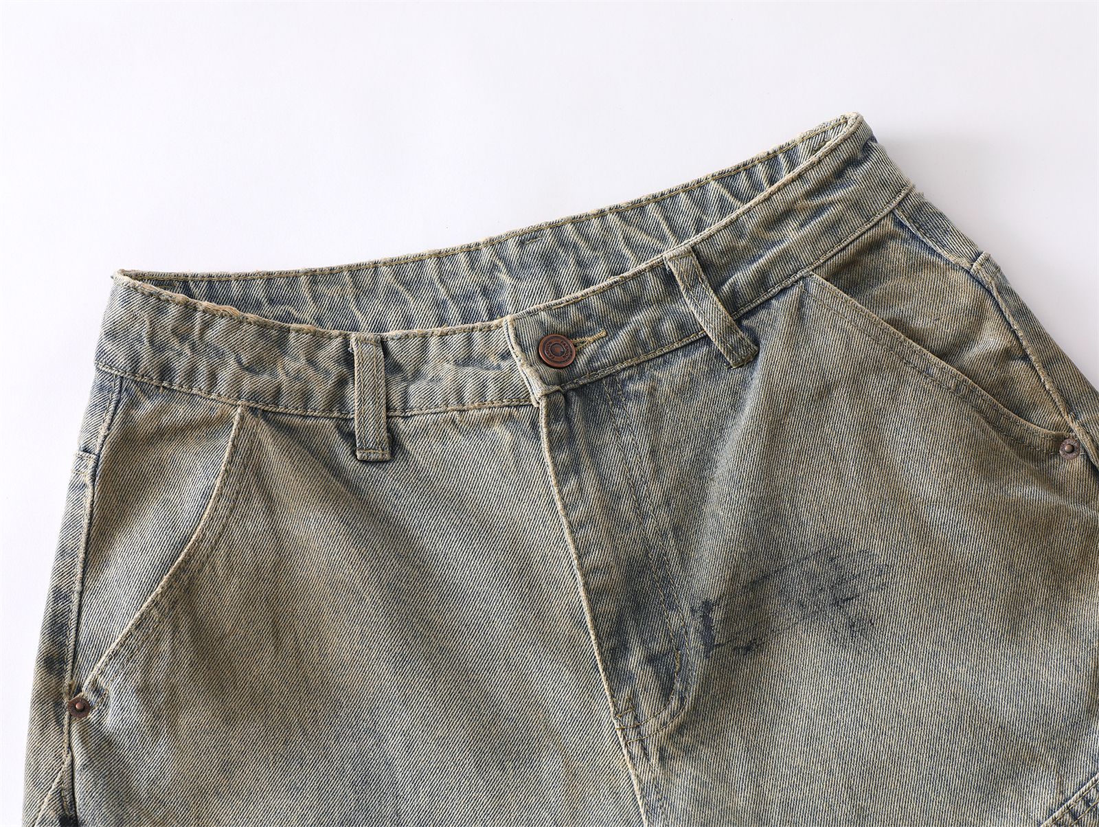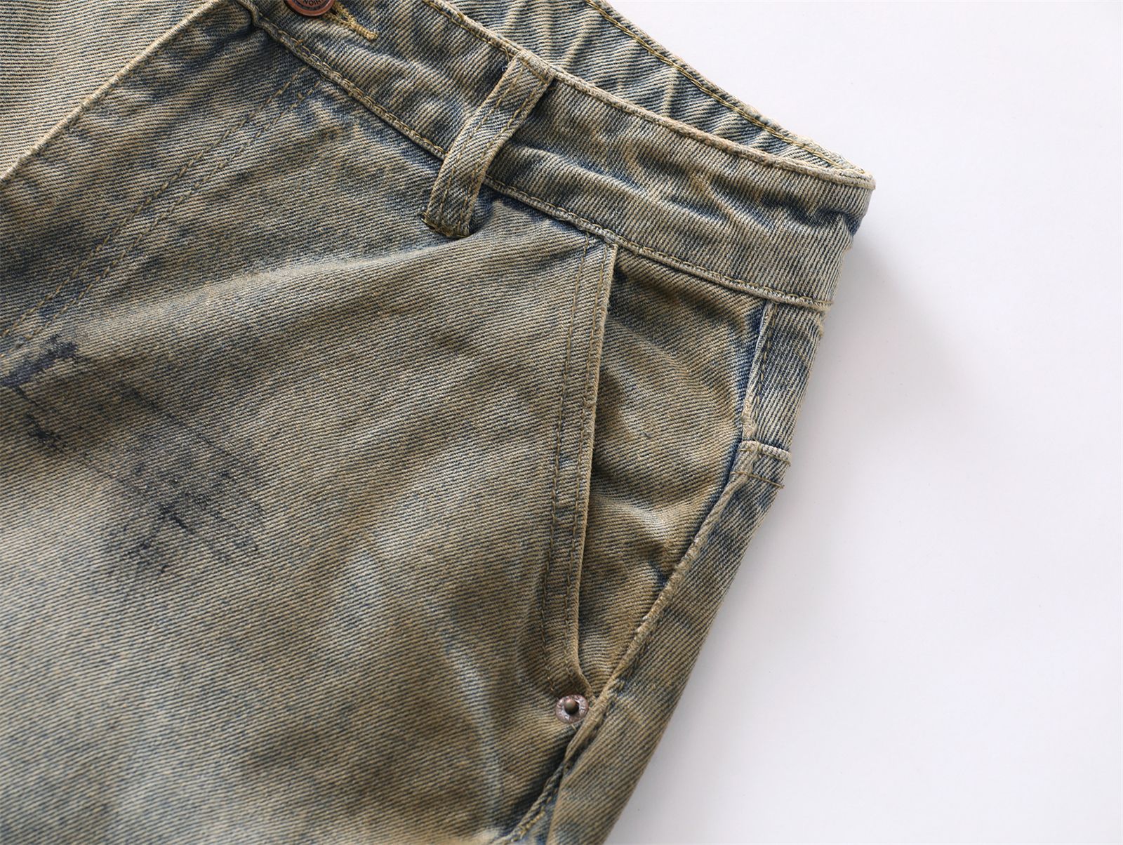 Dirty Wash Curved-Cut Wide-Leg Denim Jeans WN15084