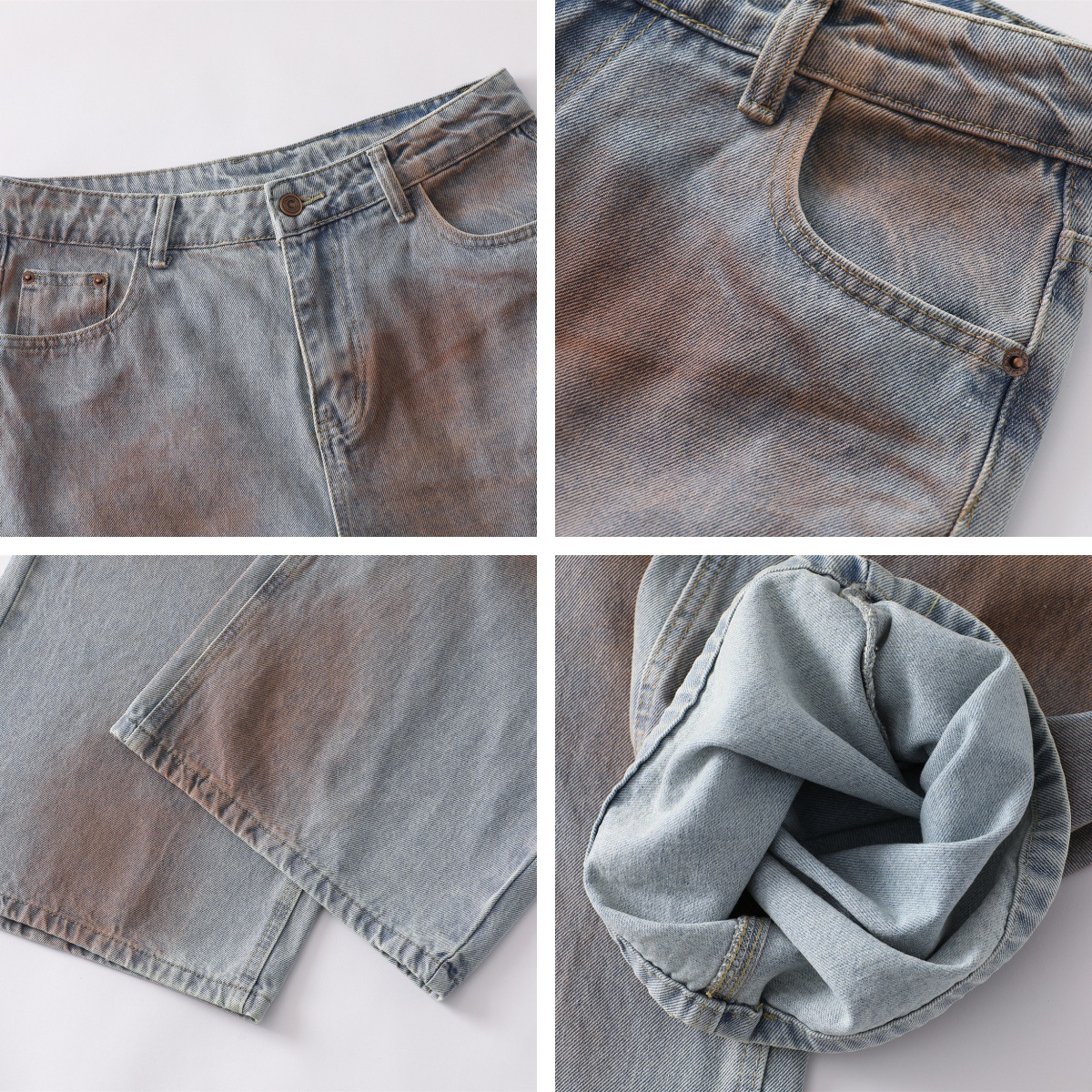 Washed Hand-Brush Wide-Leg Denim Jeans WN15086