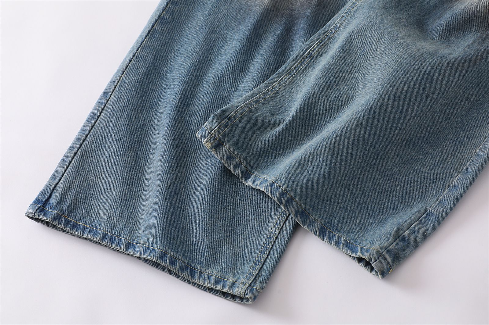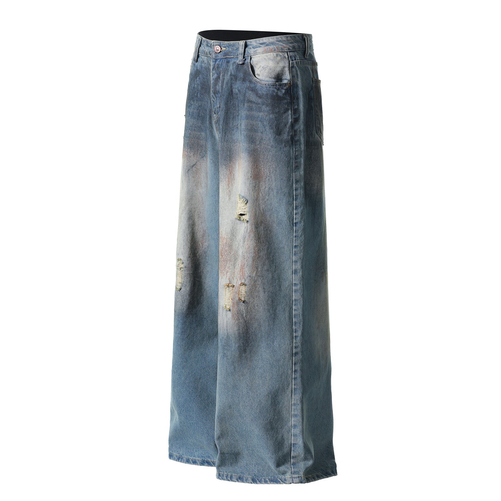 Dirty Dye Damage Design Wide-Leg Denim Jeans WN15087