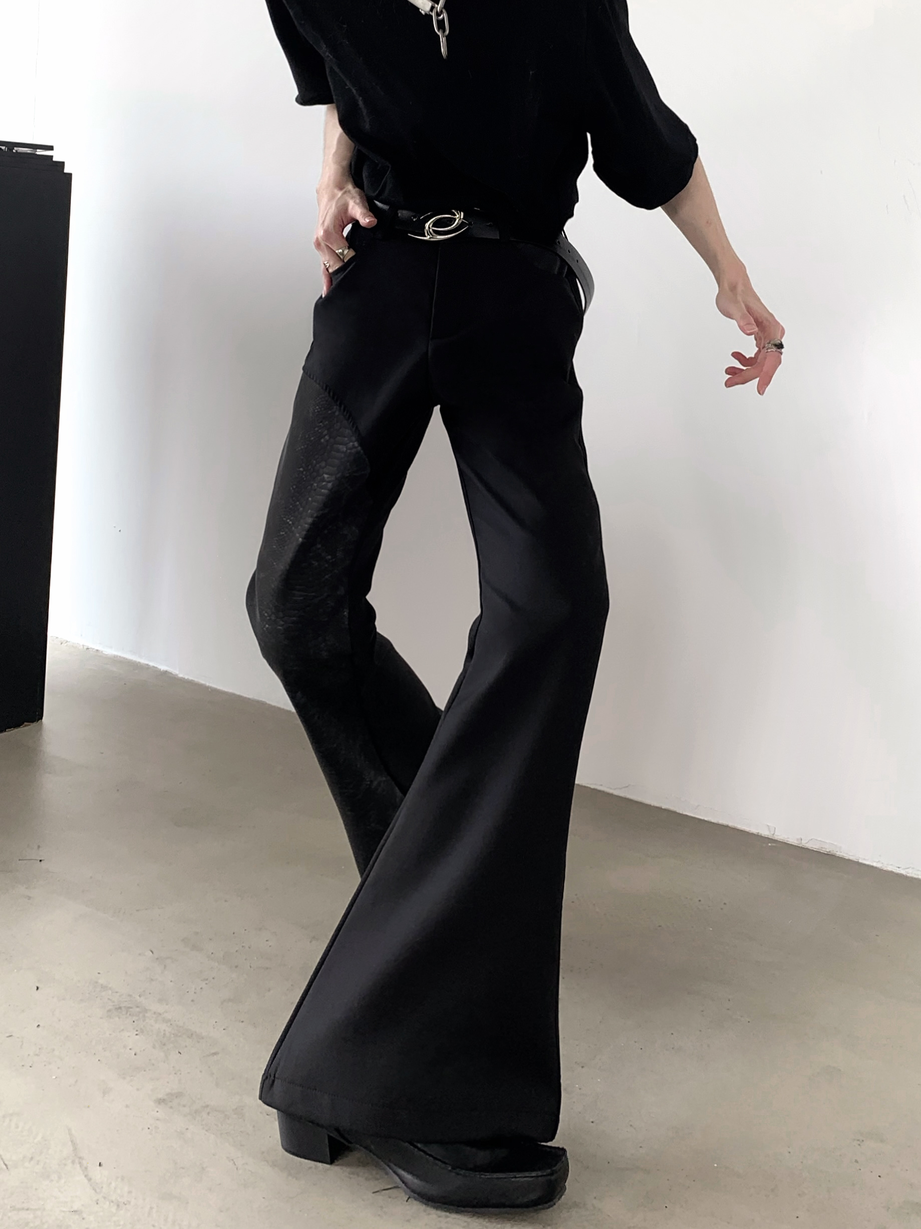 Snake Pattern Draping Flare Trousers WN15413