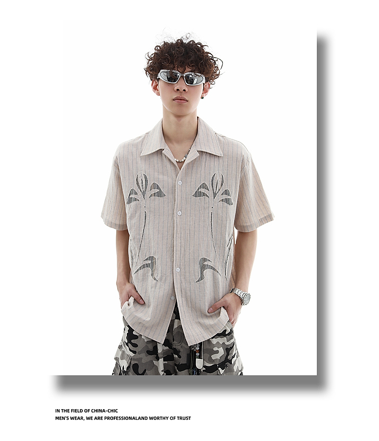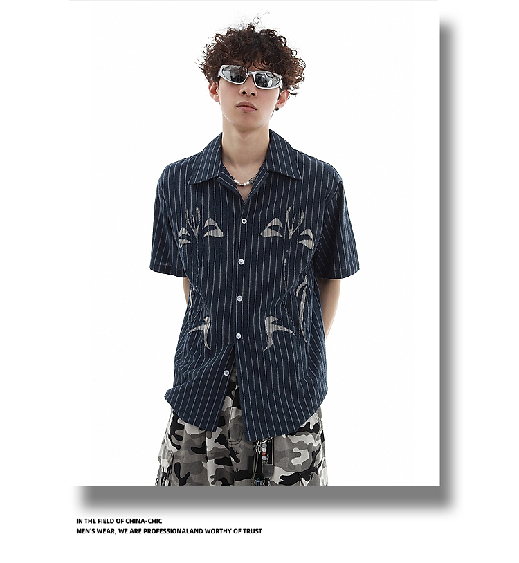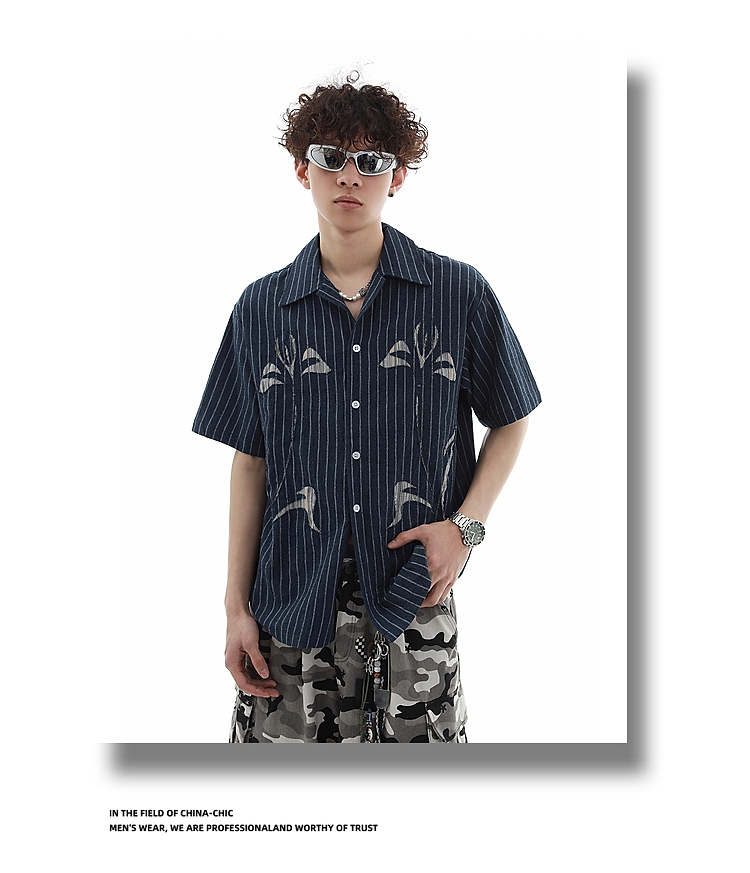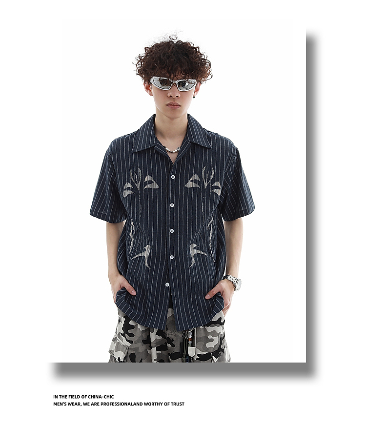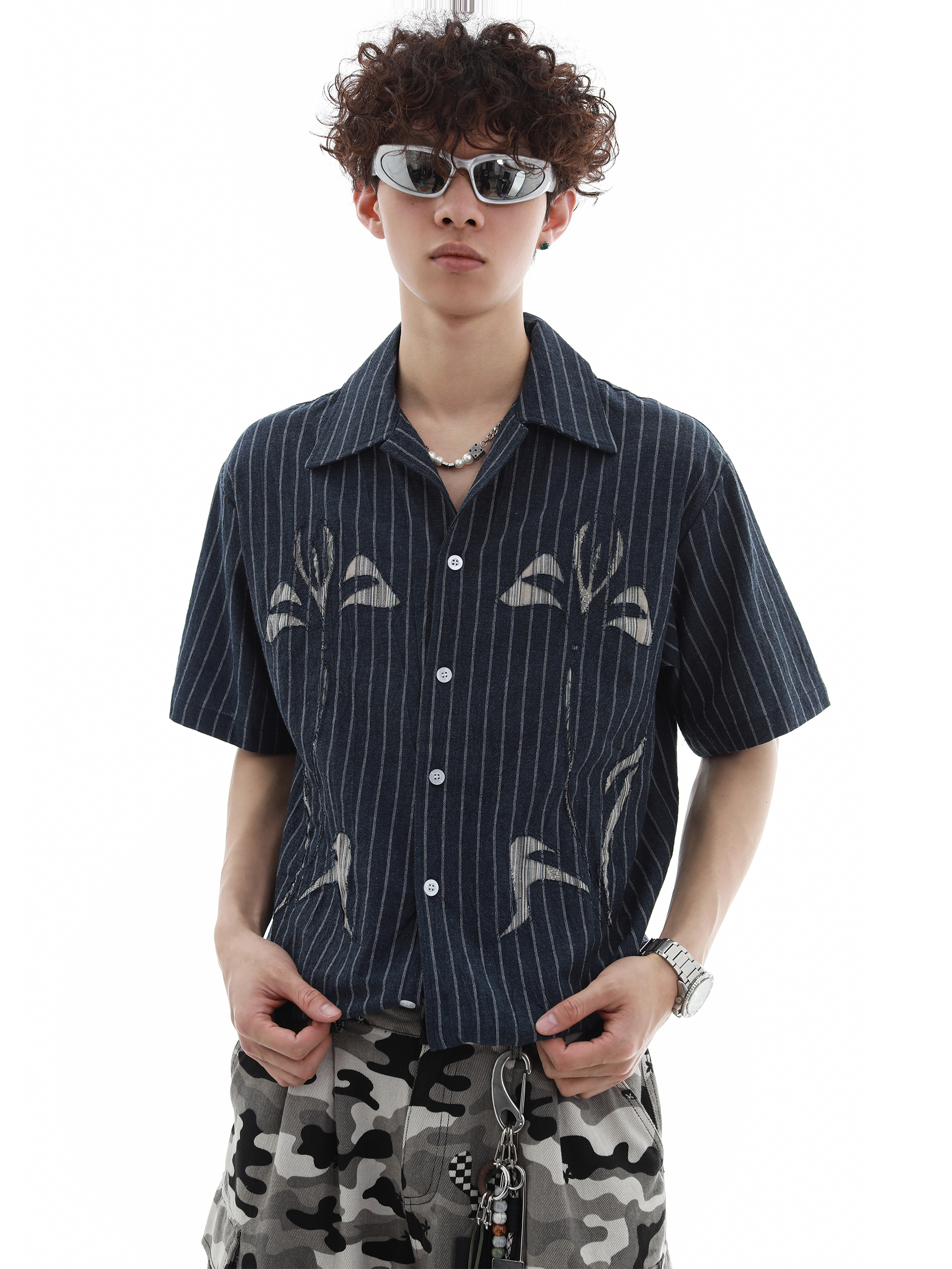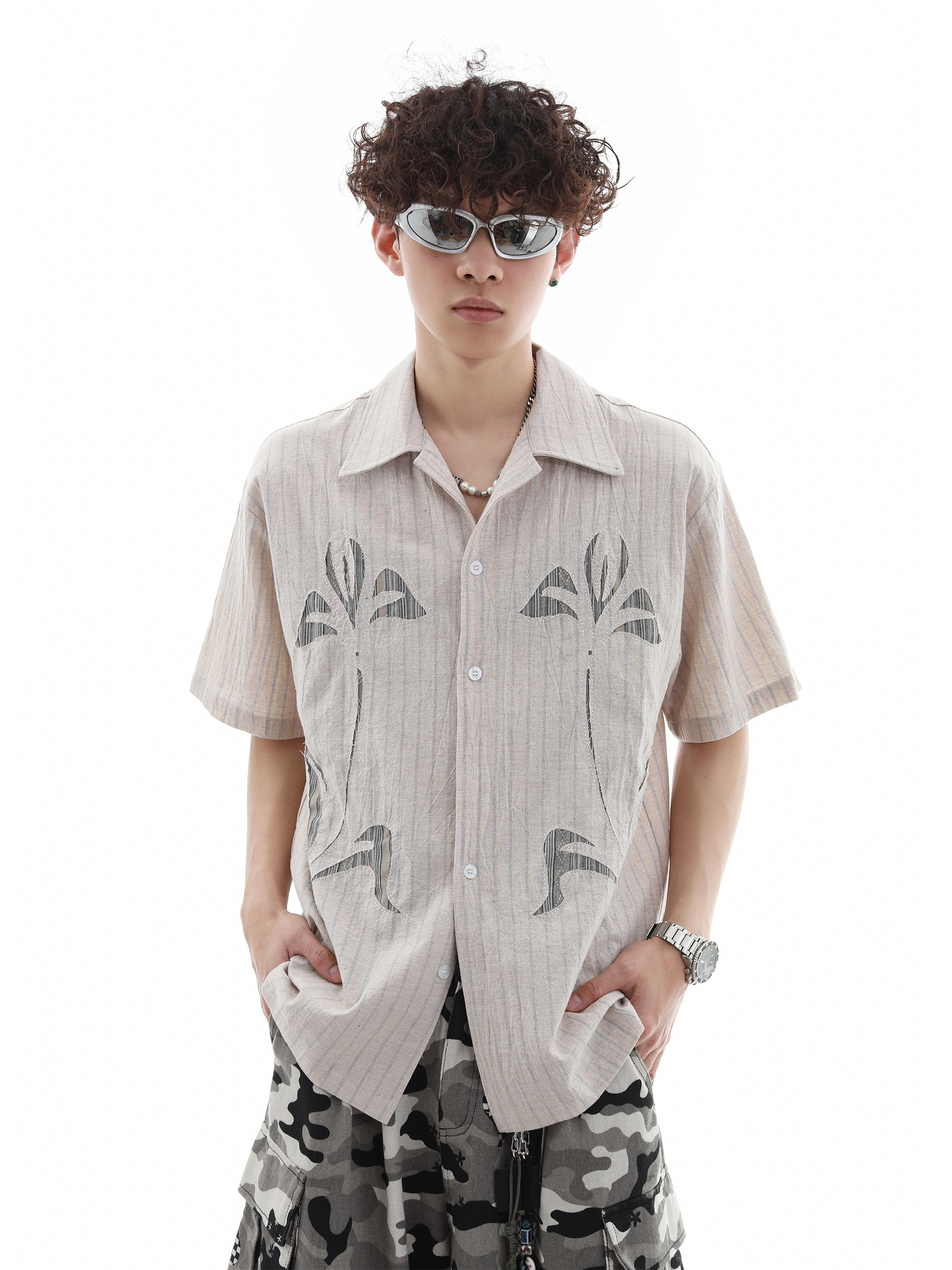 Patch Embroidery Stripe Short Sleeve Shirt WN15707