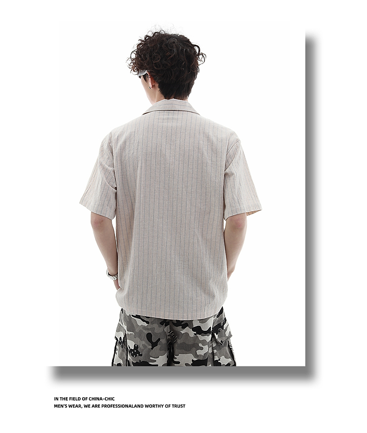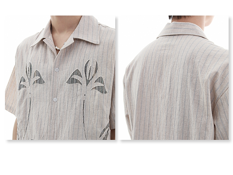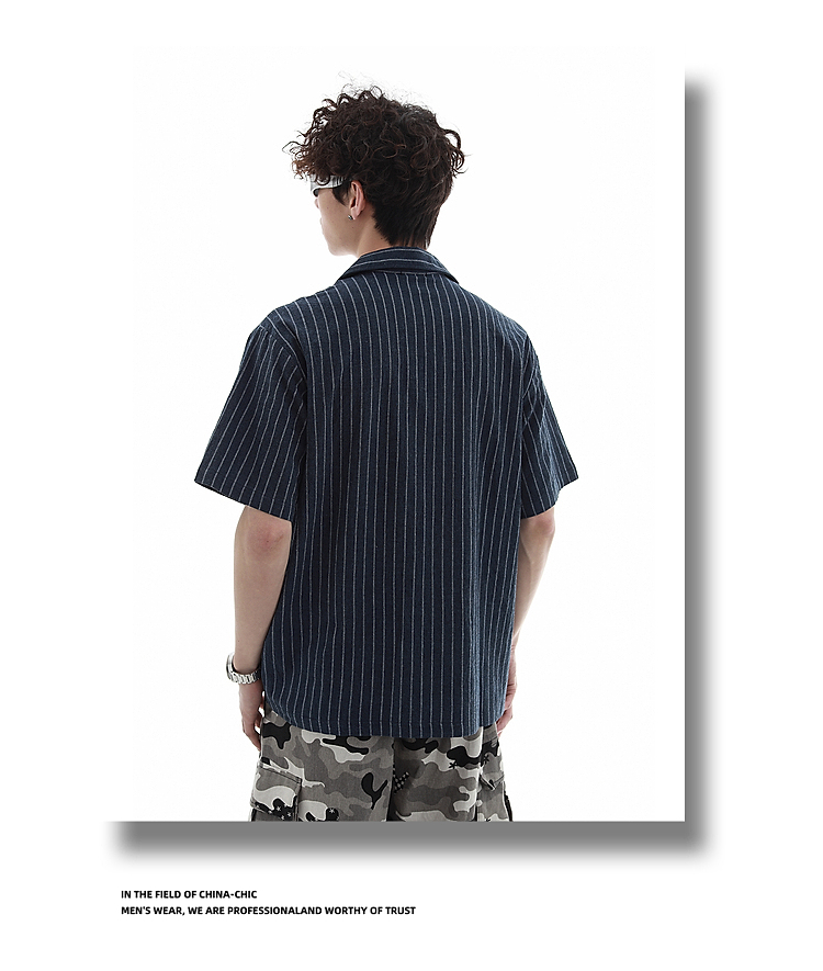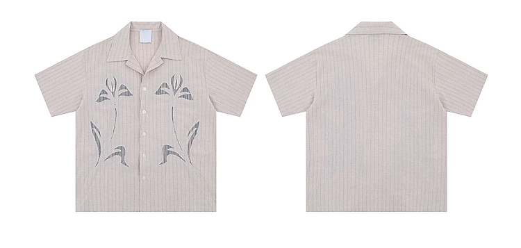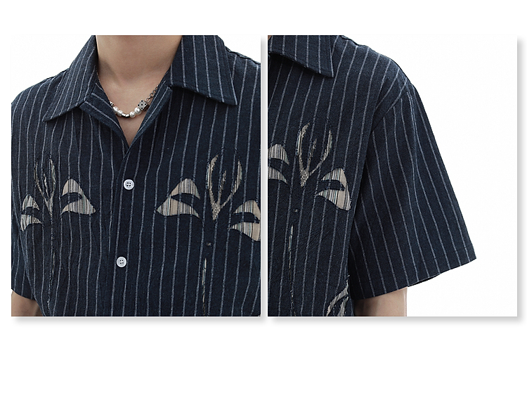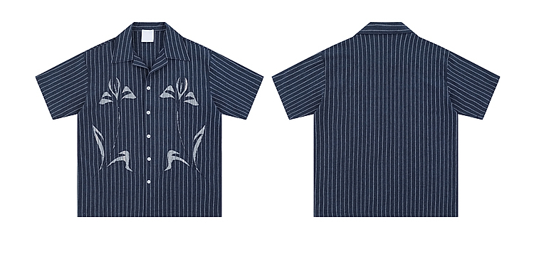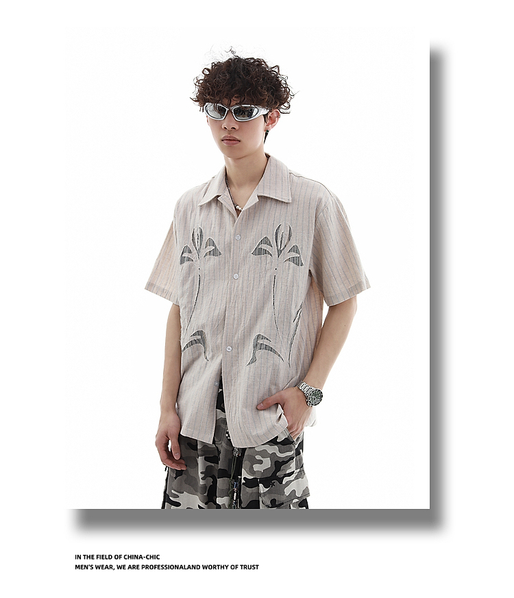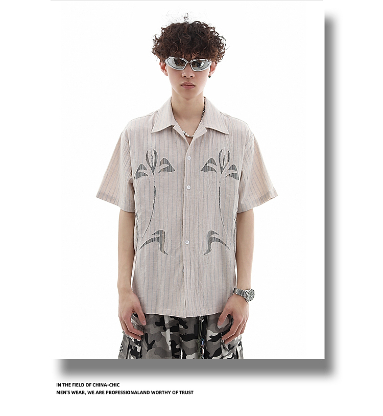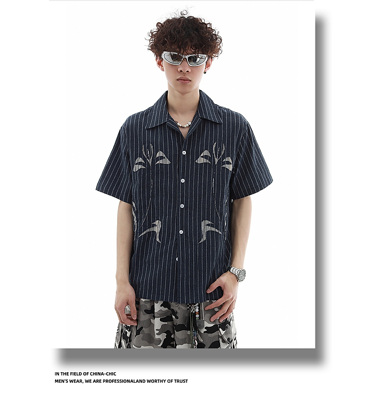 Patch Embroidery Stripe Short Sleeve Shirt WN15707