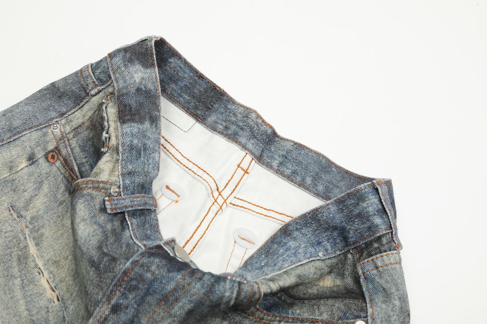 Dirty Dye Print Washed Straight Leg Denim Jeans WN16118
