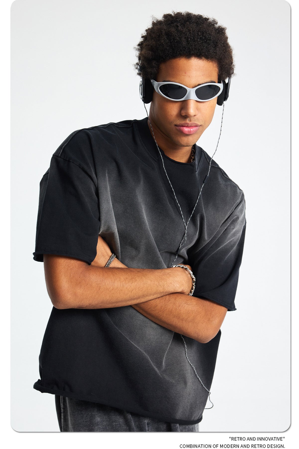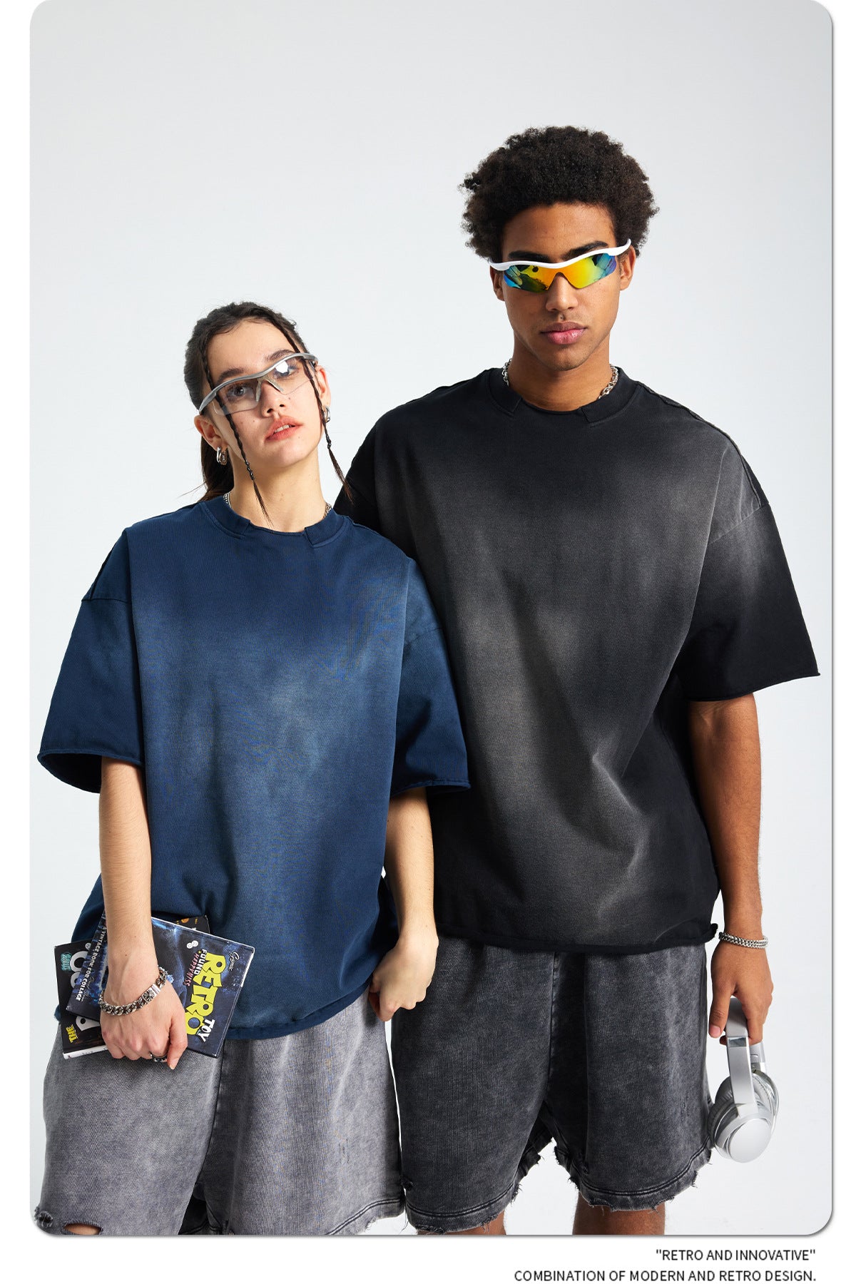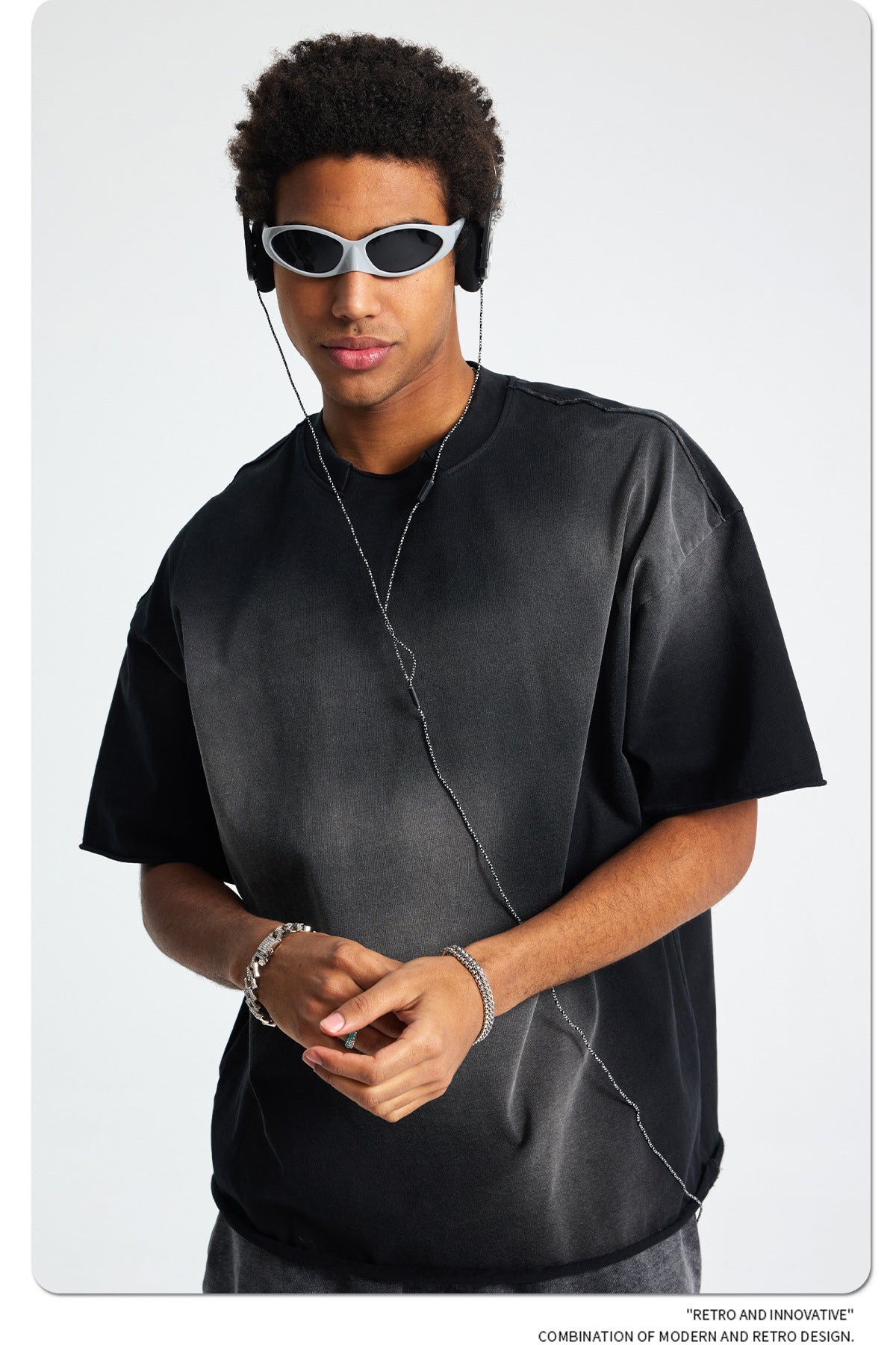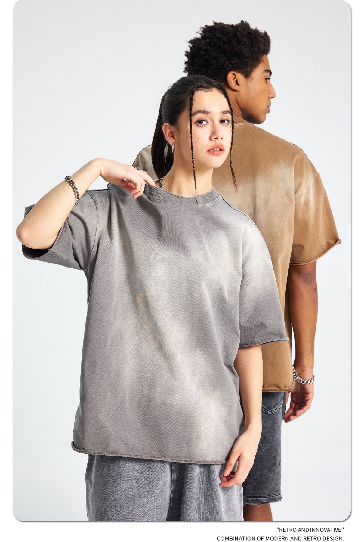 Spray Dye Raw Edge Damage Washed Short Sleeve T-Shirt WN16265