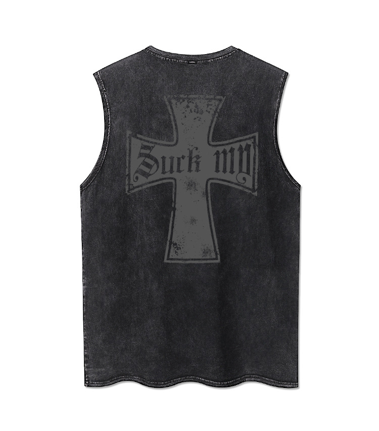 Oversize Cross Print Washed Tank Top WN16510