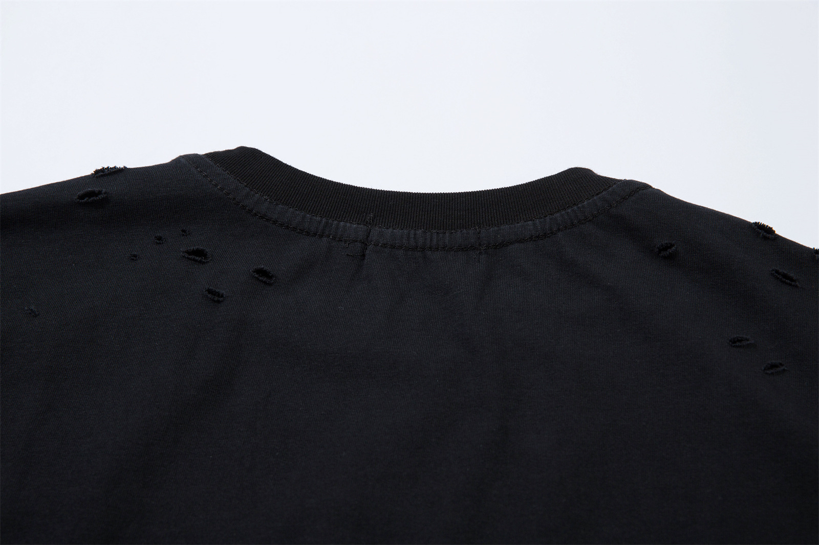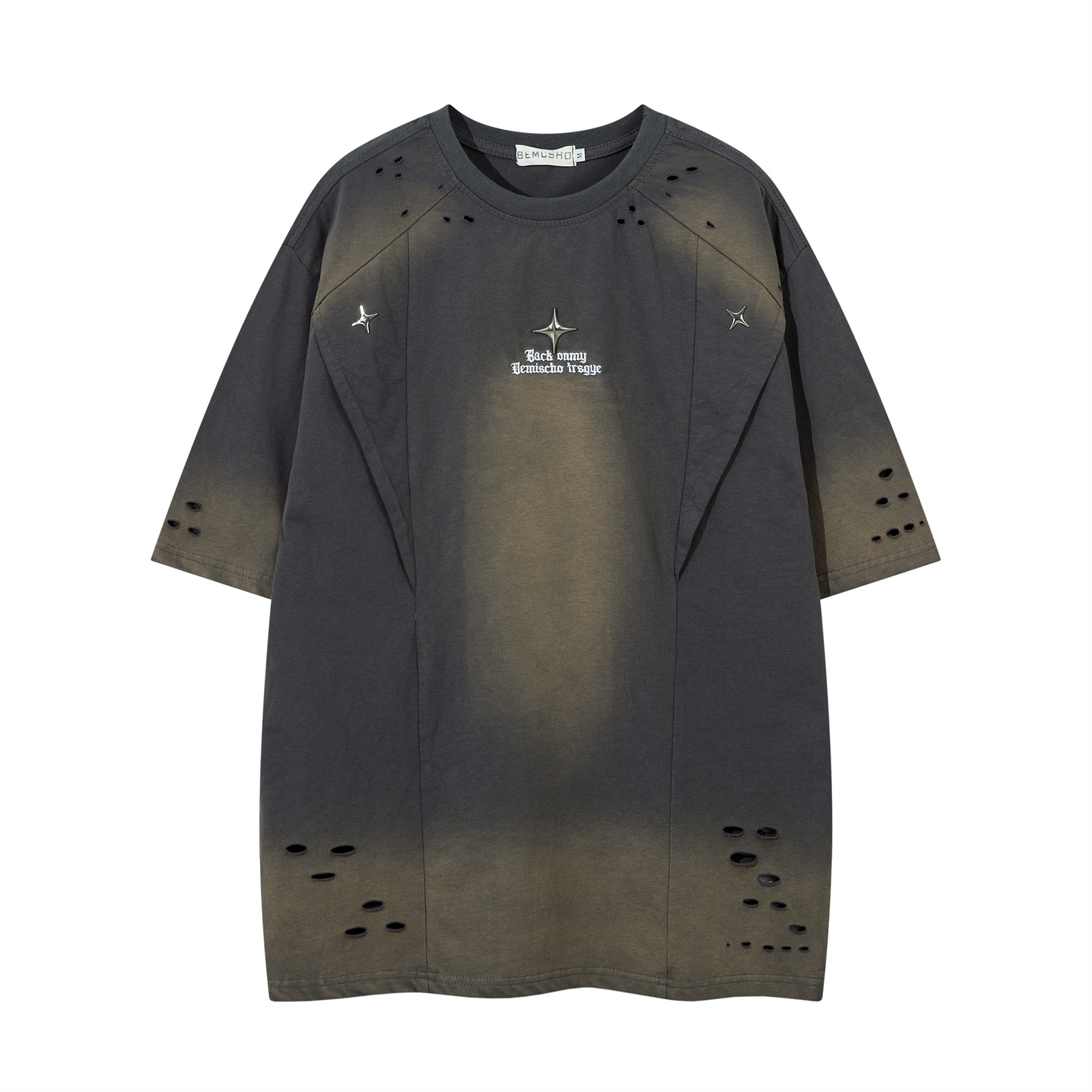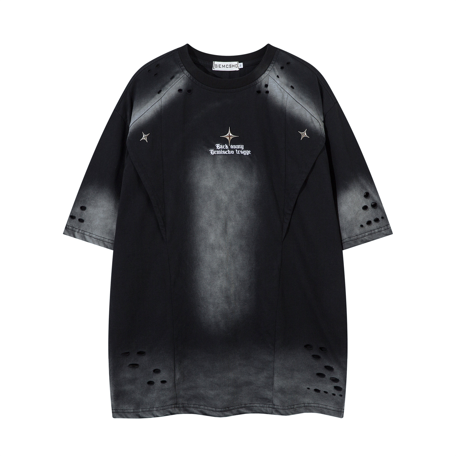 Damage Oversize Letter Embroidery Short Sleeve T-Shirt WN16543