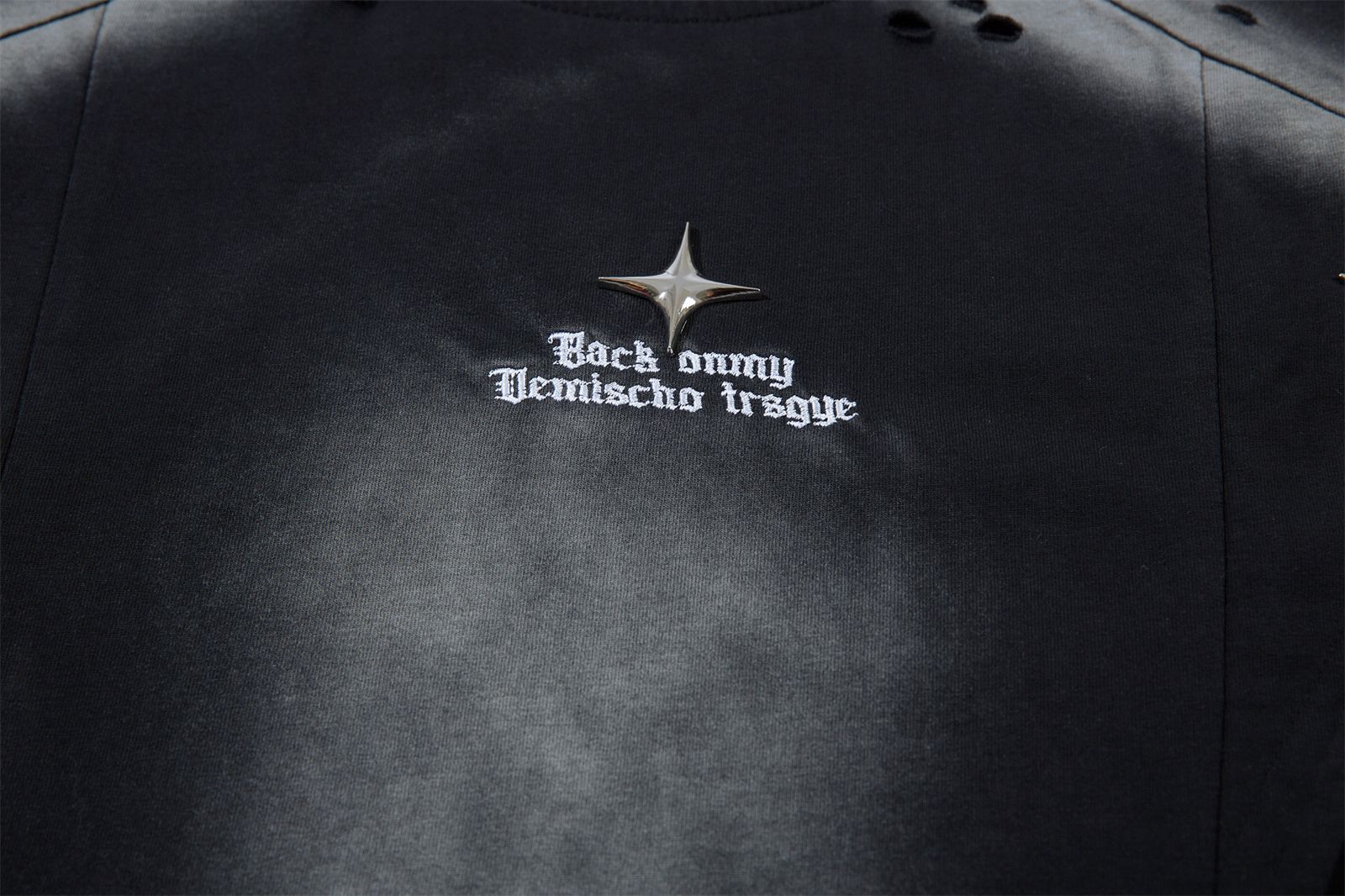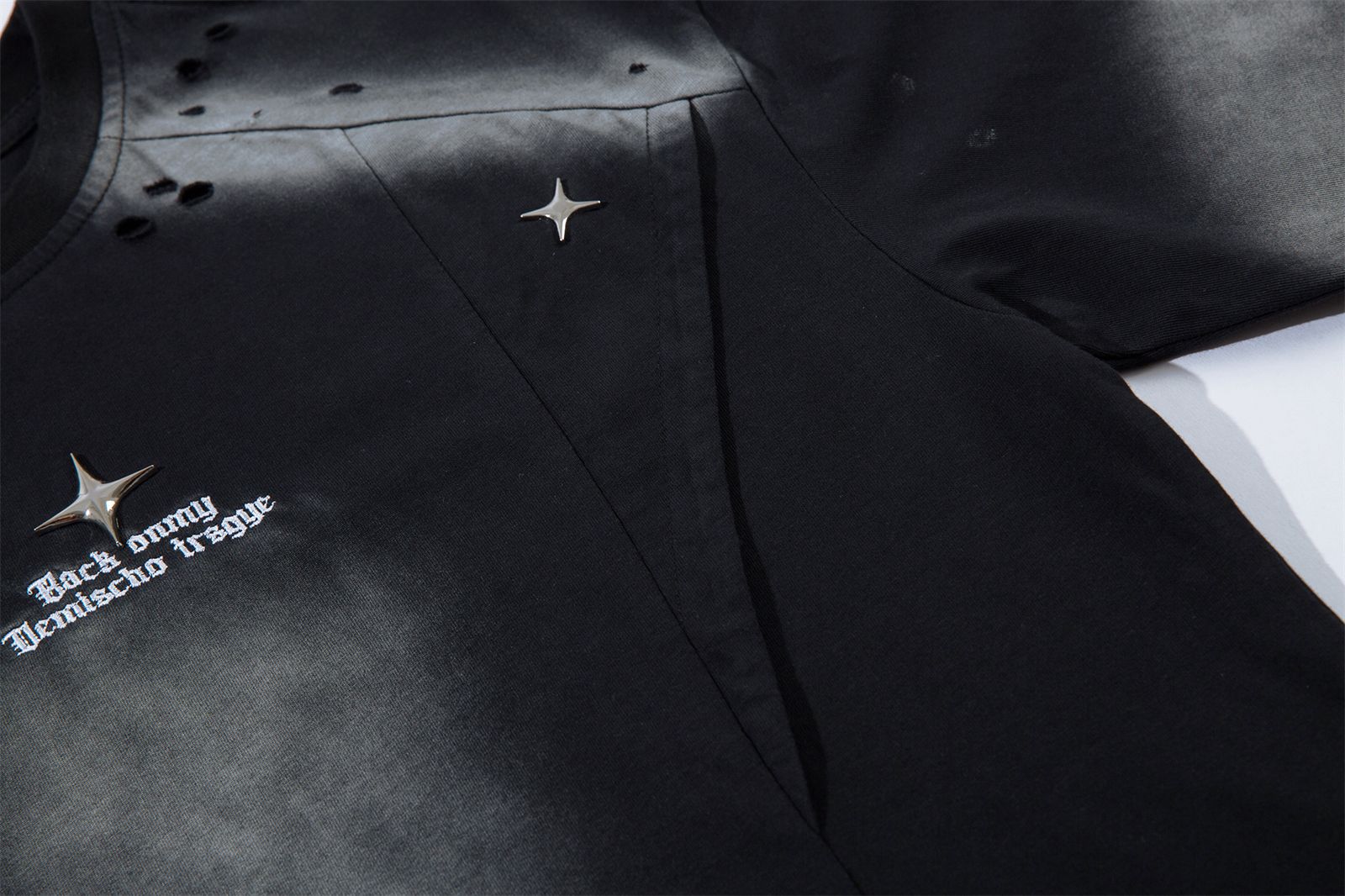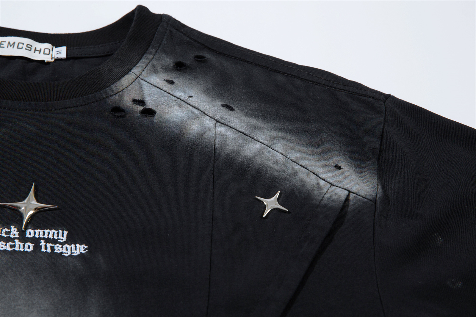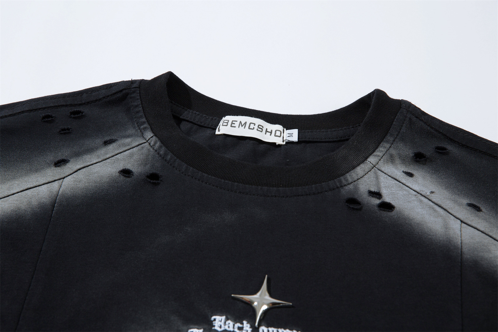 Damage Oversize Letter Embroidery Short Sleeve T-Shirt WN16543