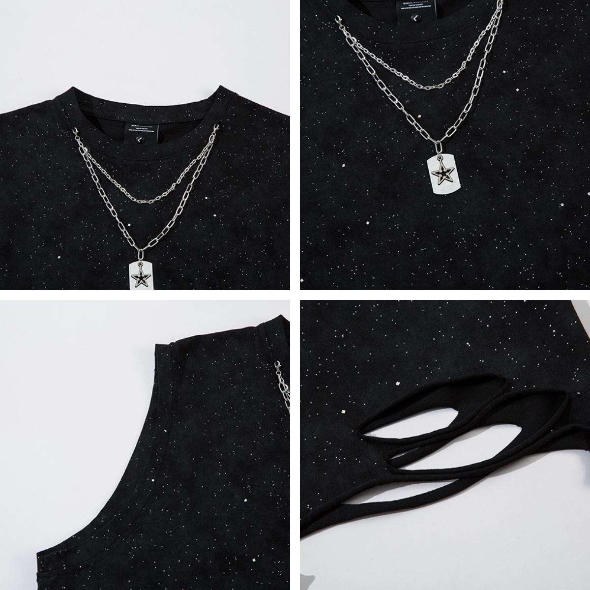 Starry Chain Damage Sleeveless T-Shirt WN16546