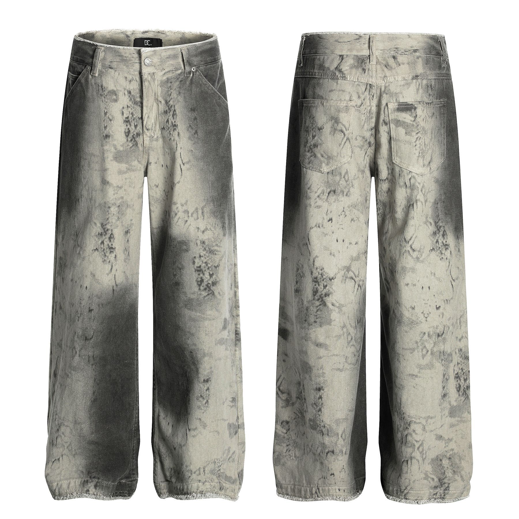 Washed Graphic Design Wide-Leg Straight Denim Jeans WN16807