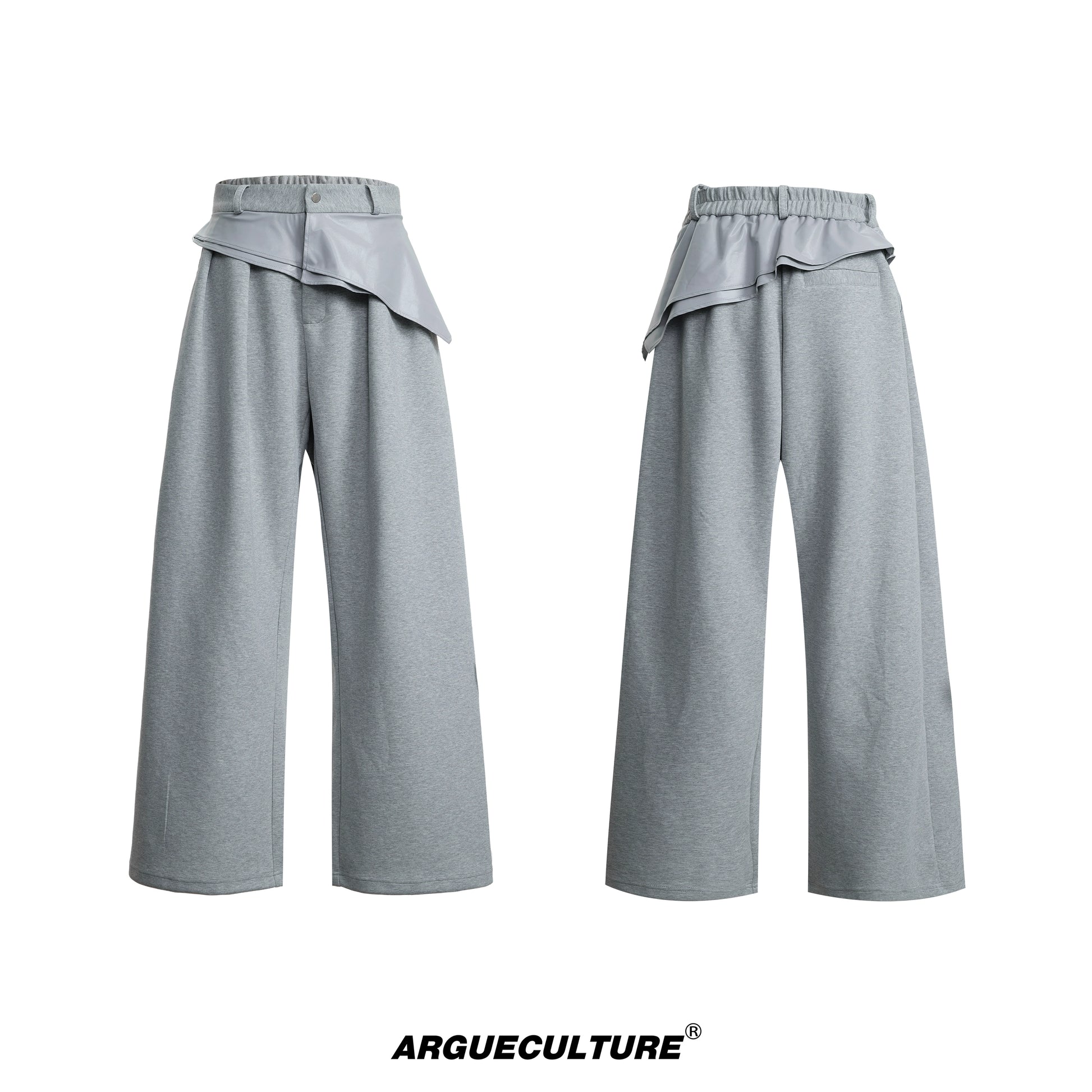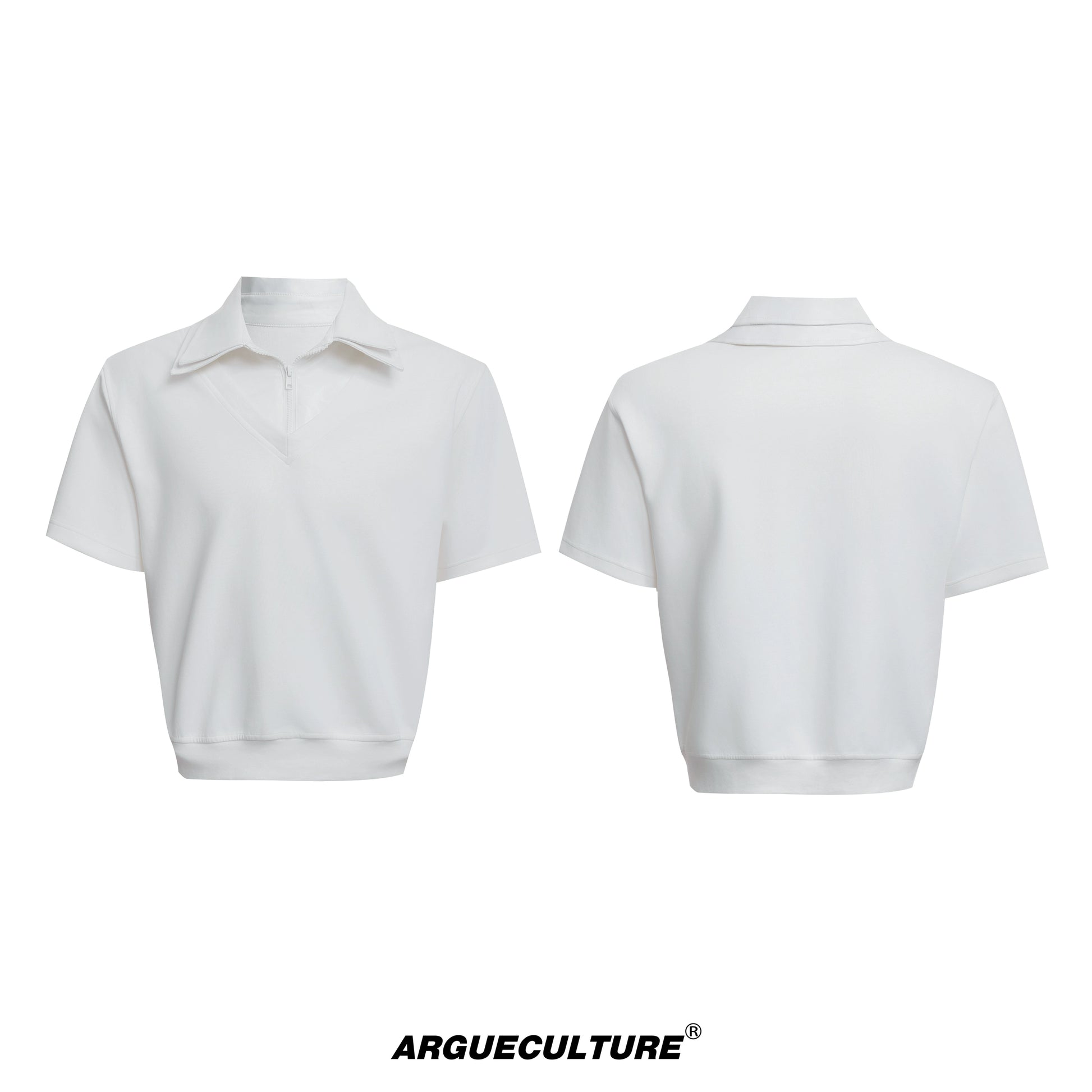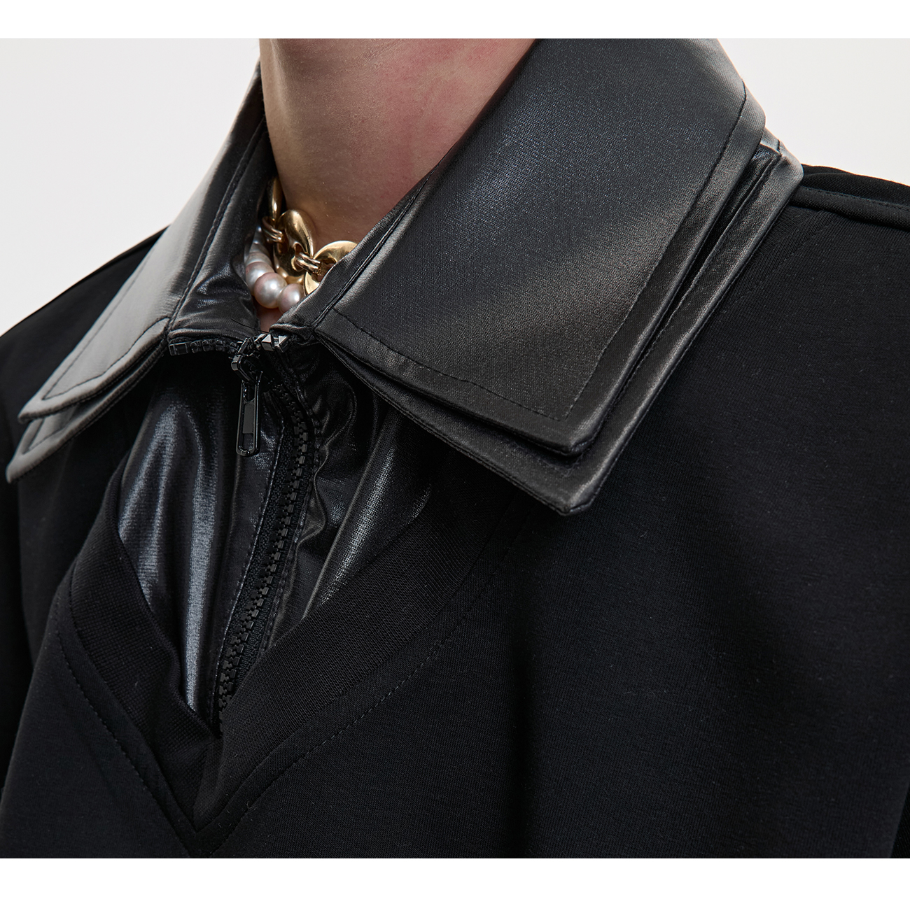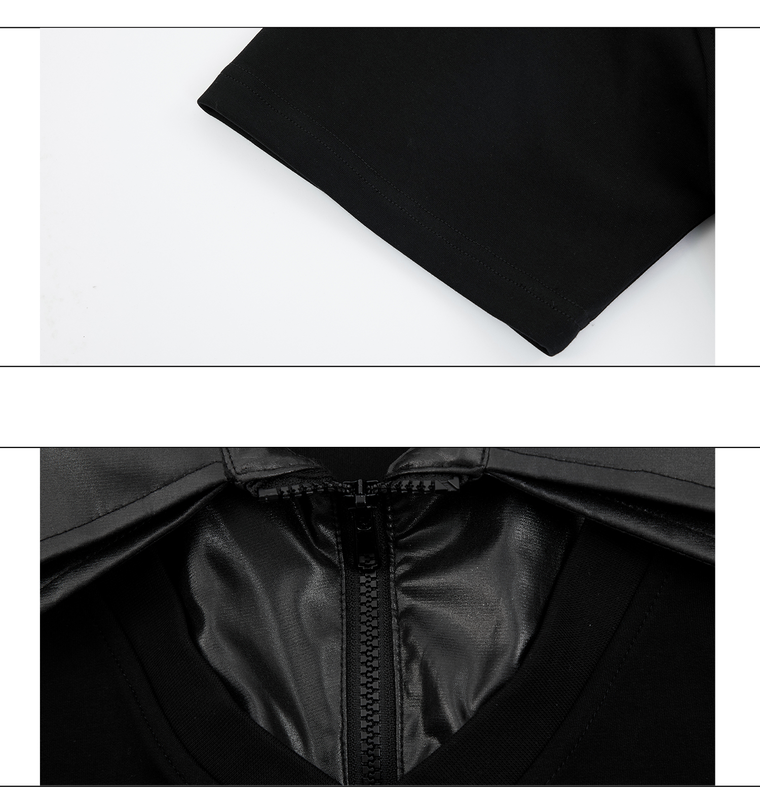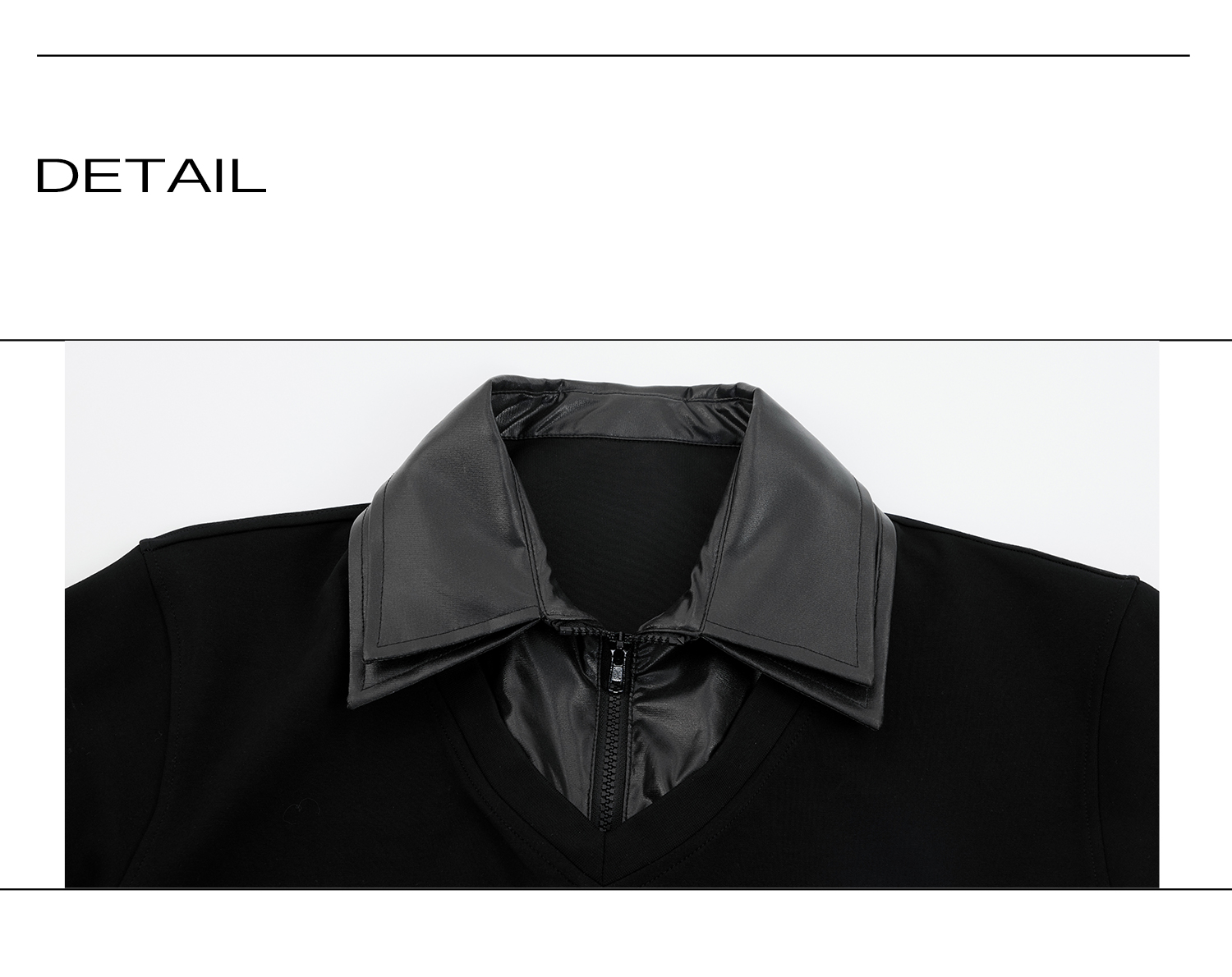 Glossy Double Collar Fake Layered Short Sleeve T-Shirt & Wide Leg Pants Setup WN18371