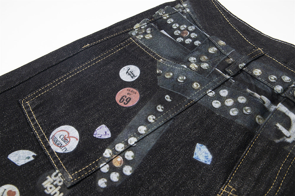 Badge Belt Print Wide Leg Half Denim Jeans WN18522