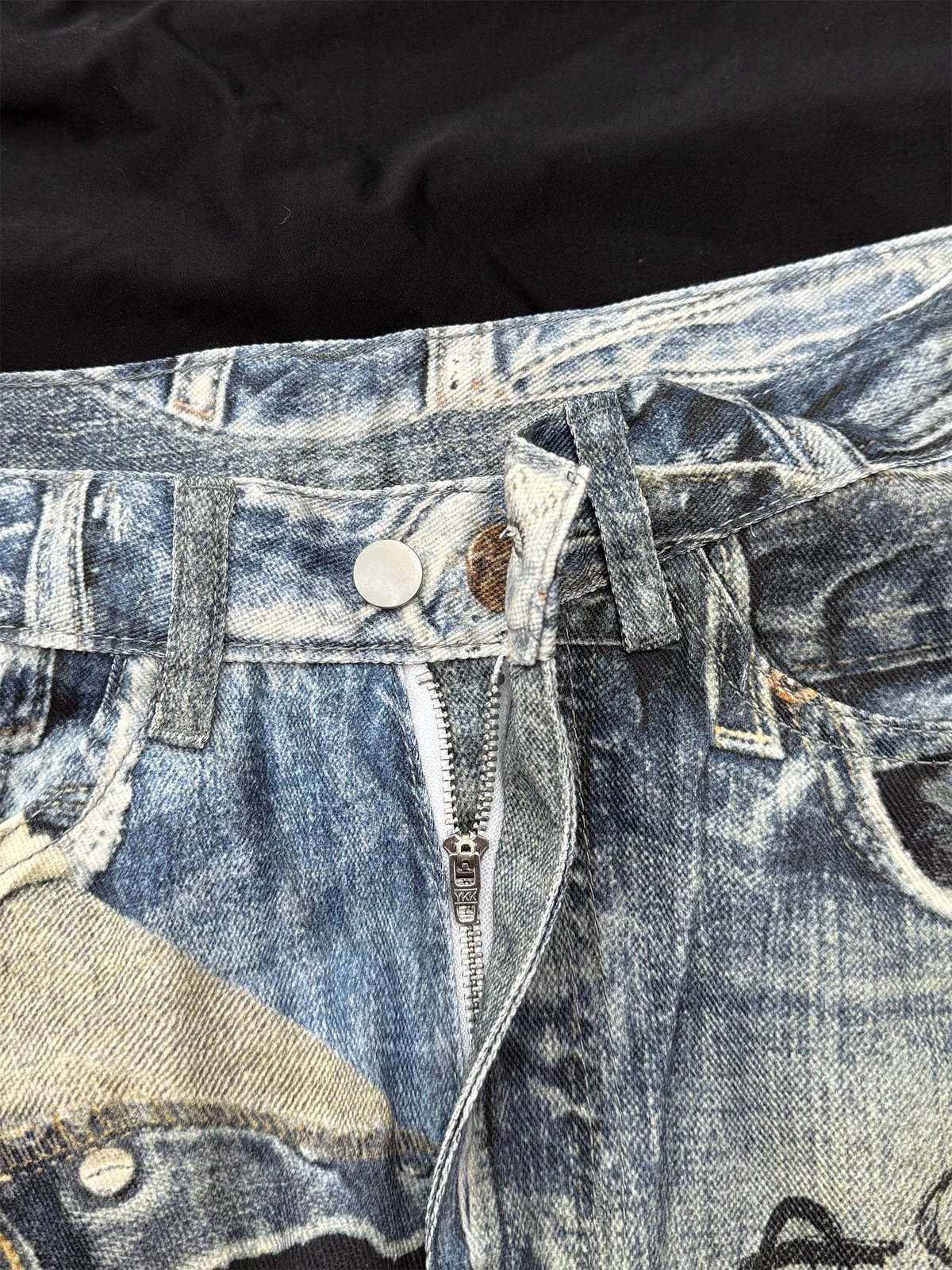 3D Graffiti Print Washed Wide Leg Denim Jeans WN18595