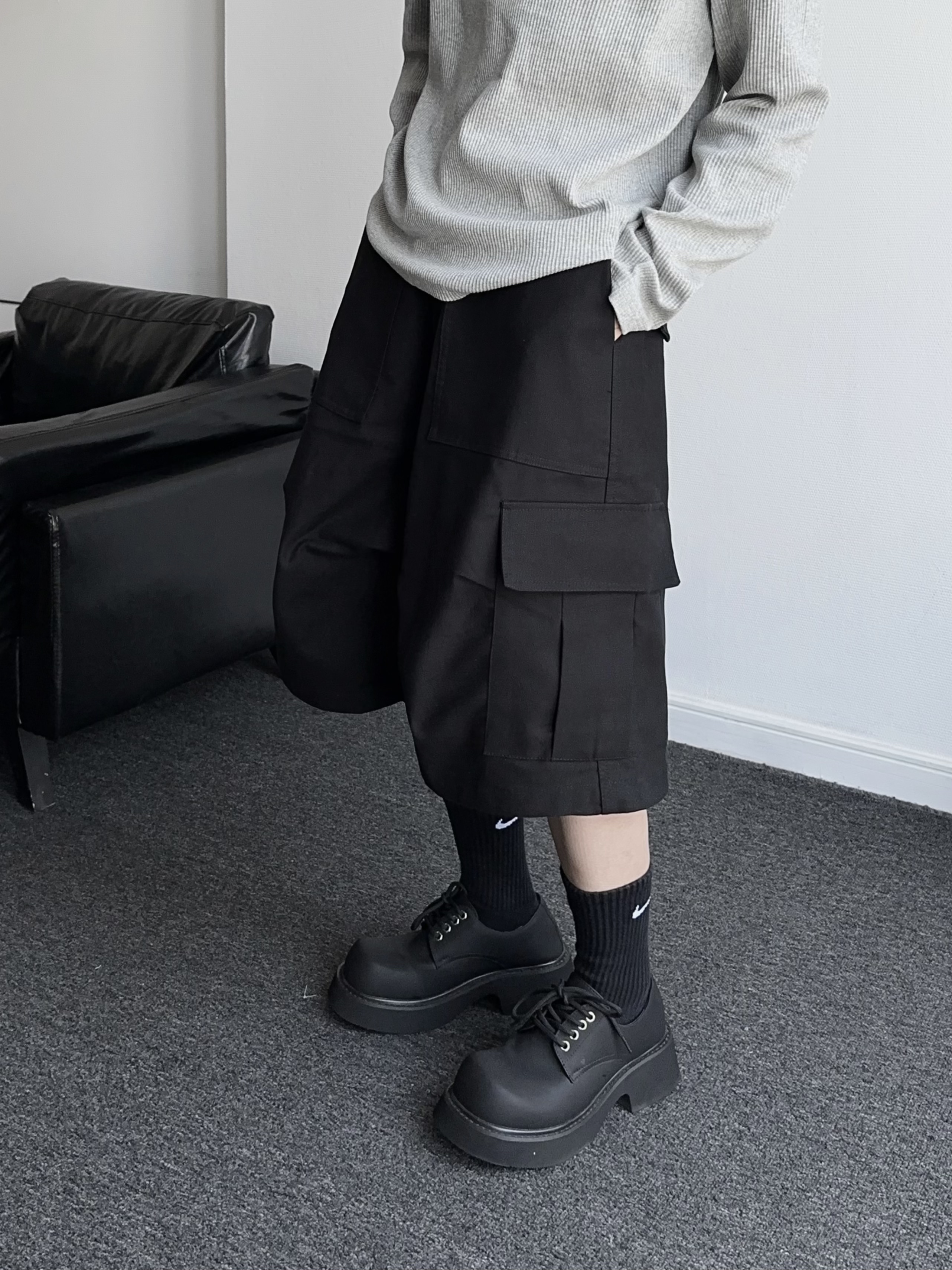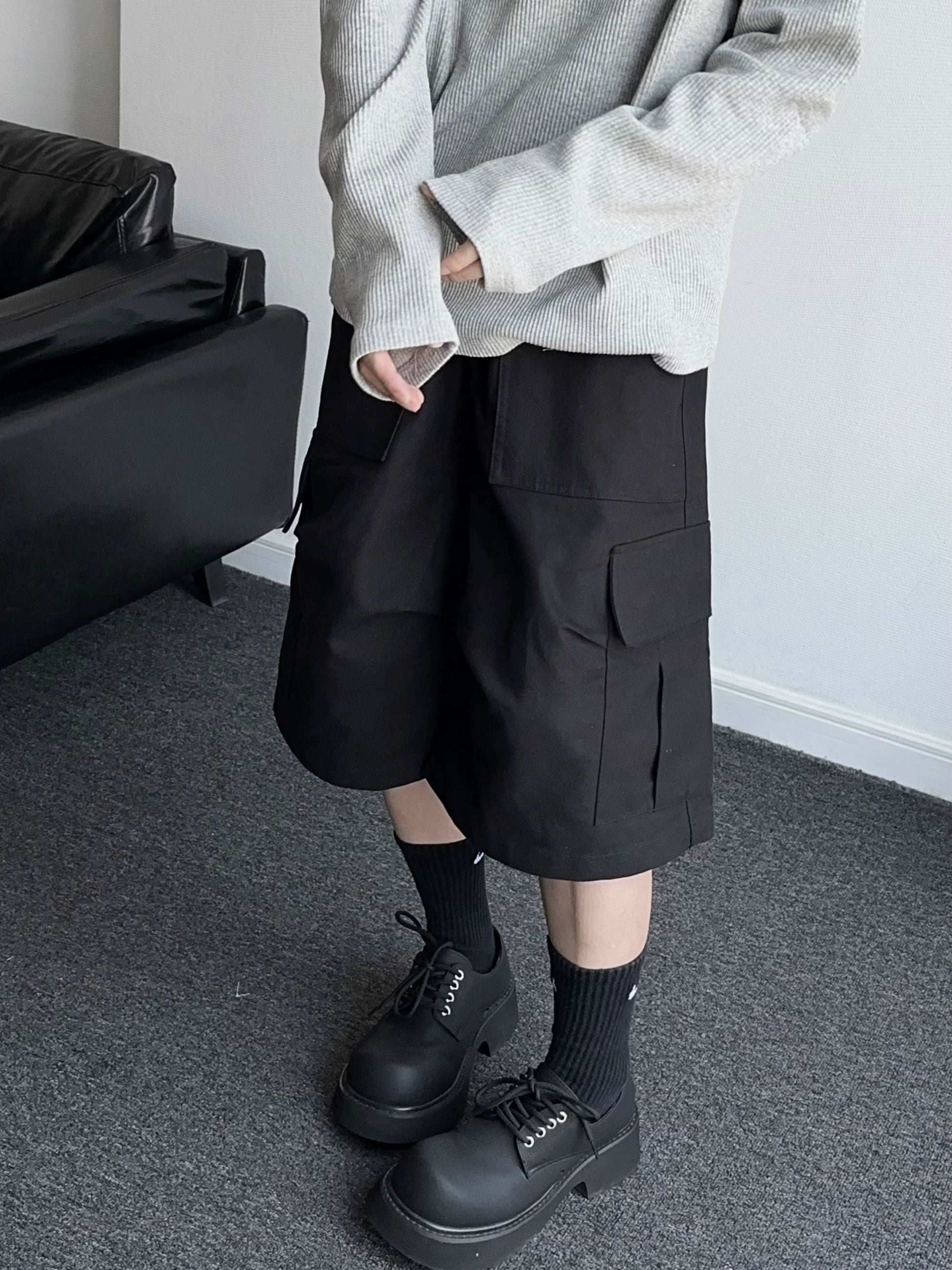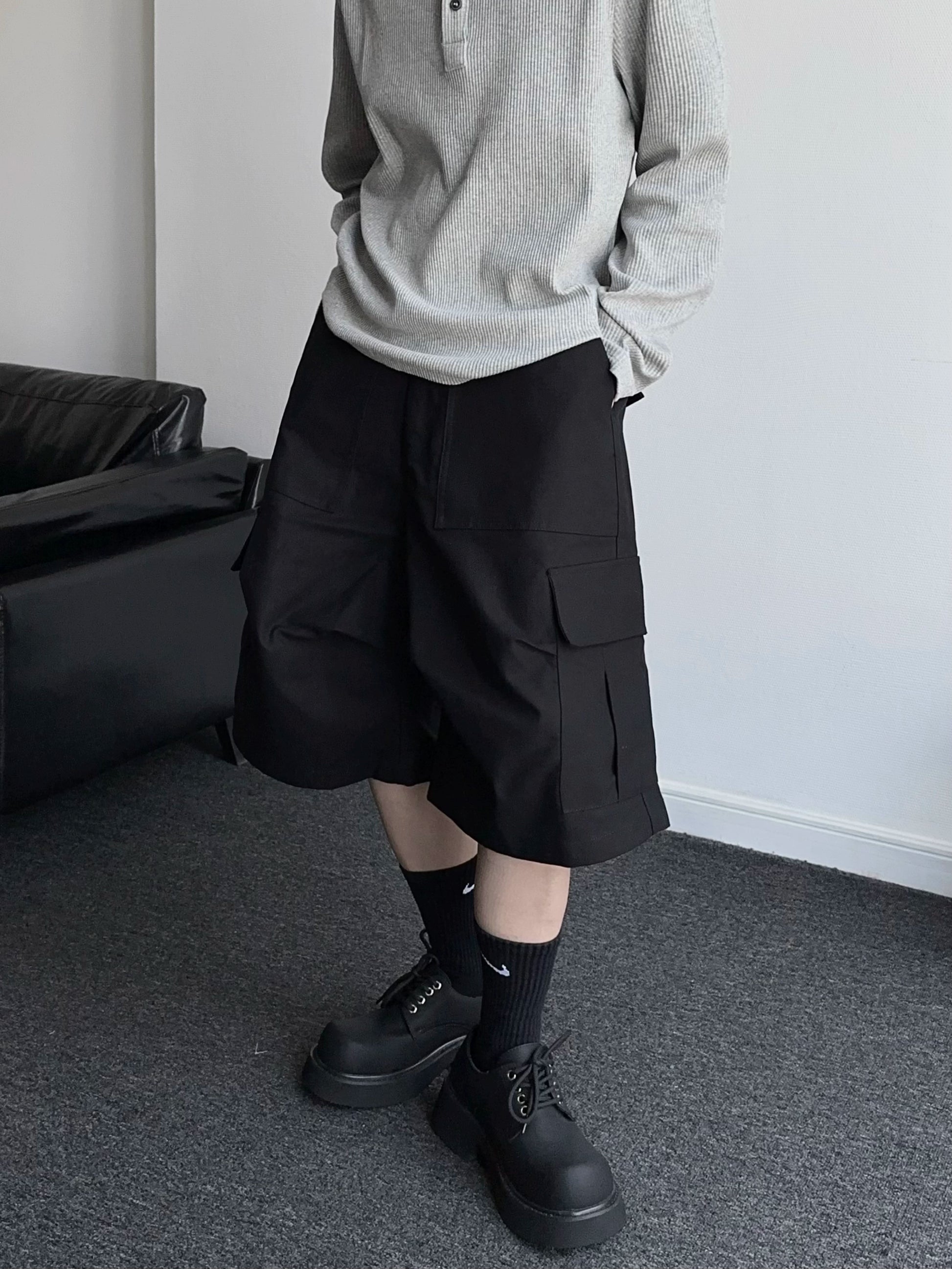 Washed Multi-Pocket Wide Leg Cargo Half Pants WN19356