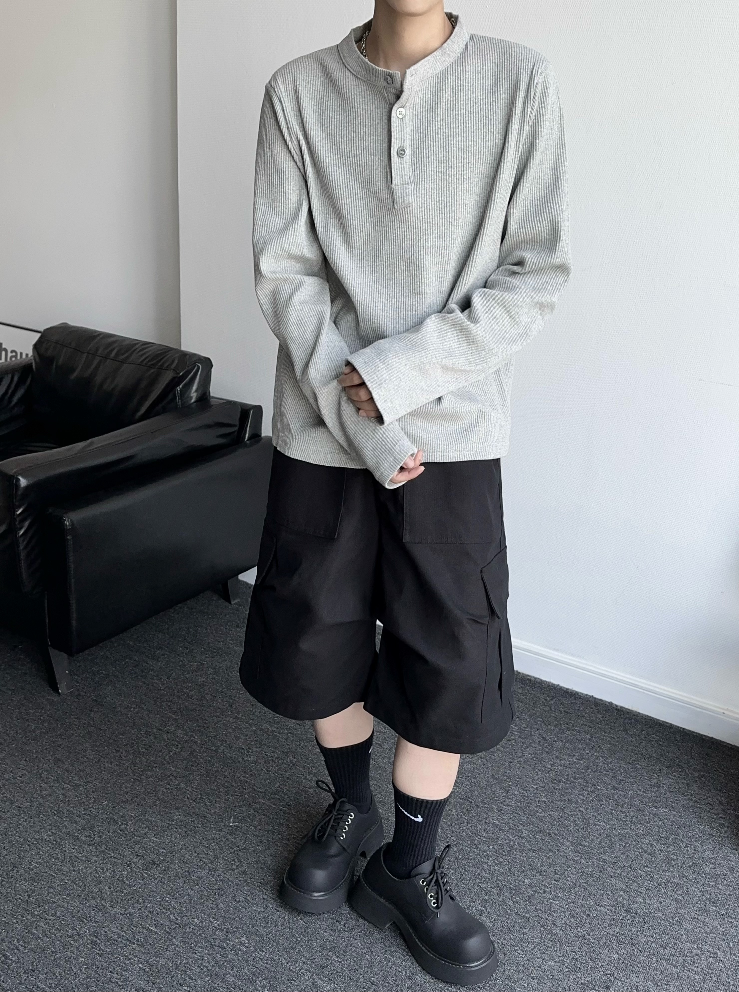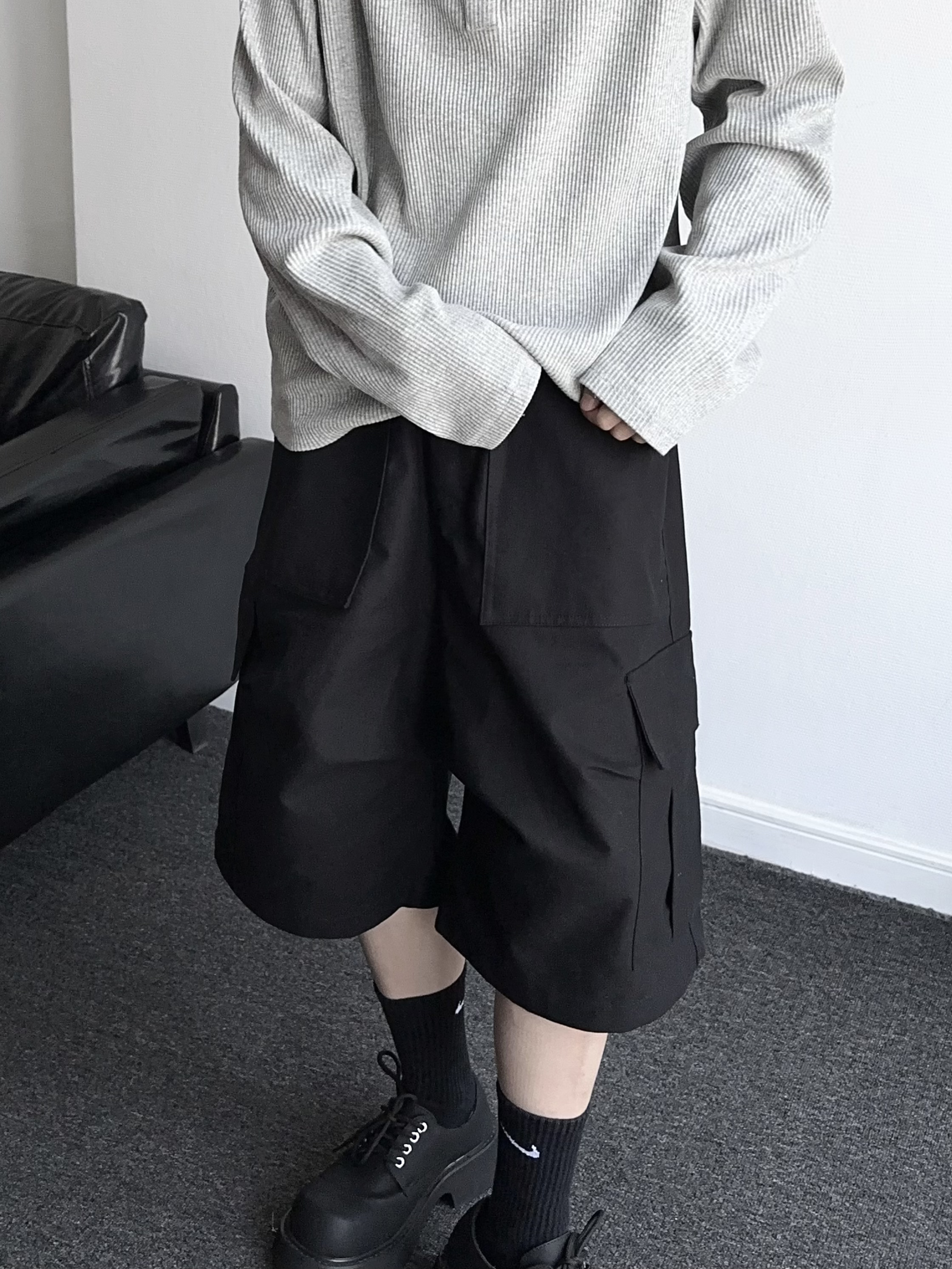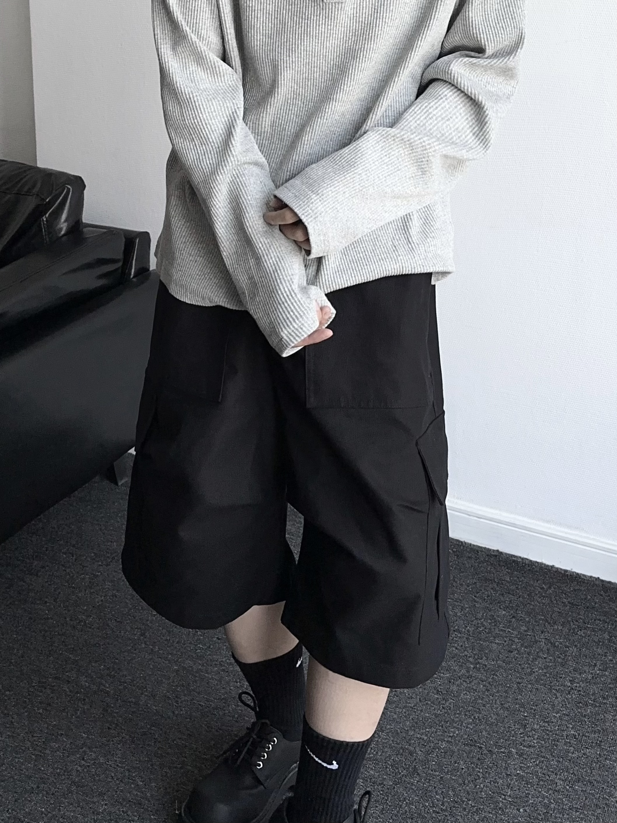 Washed Multi-Pocket Wide Leg Cargo Half Pants WN19356