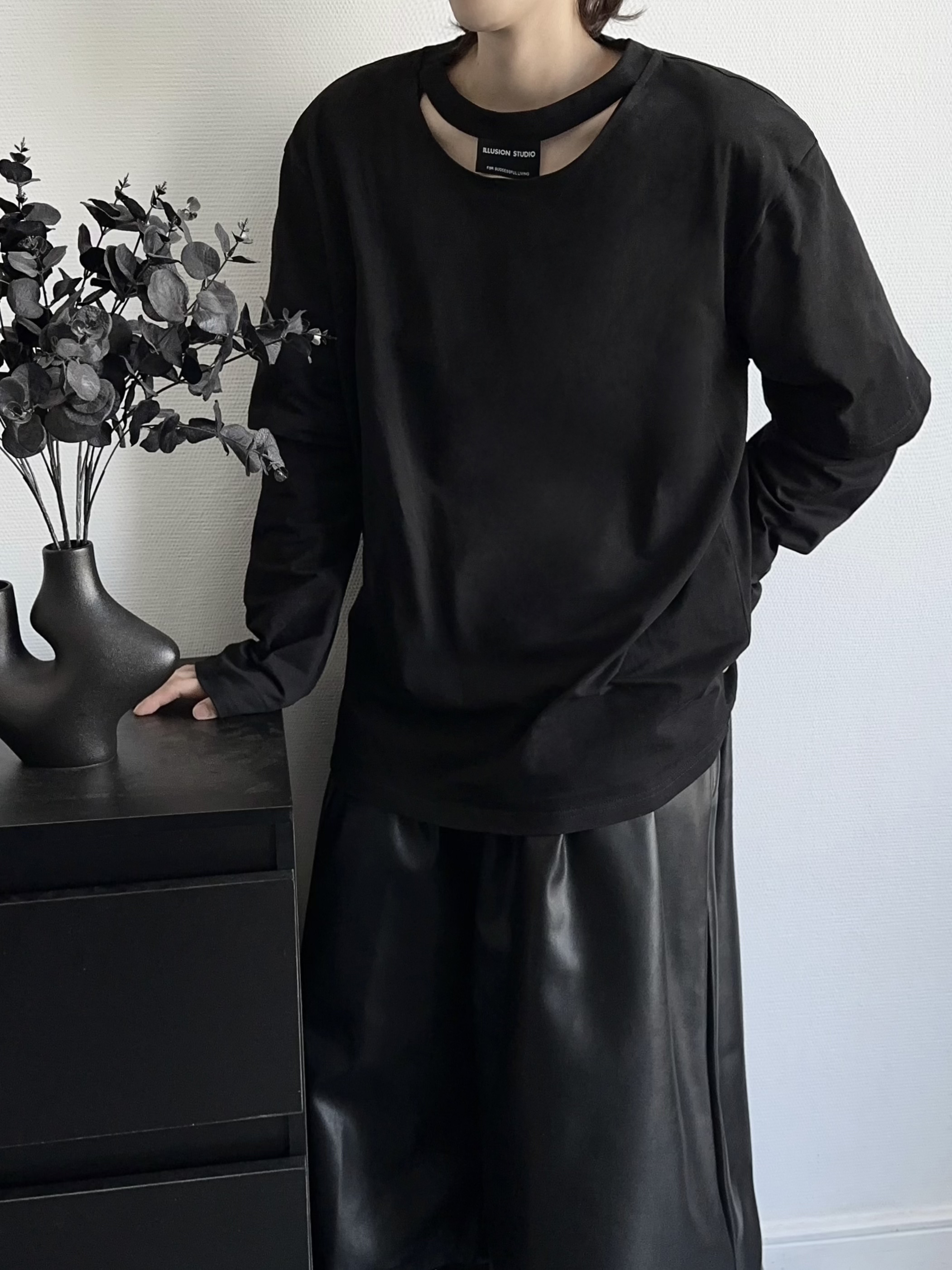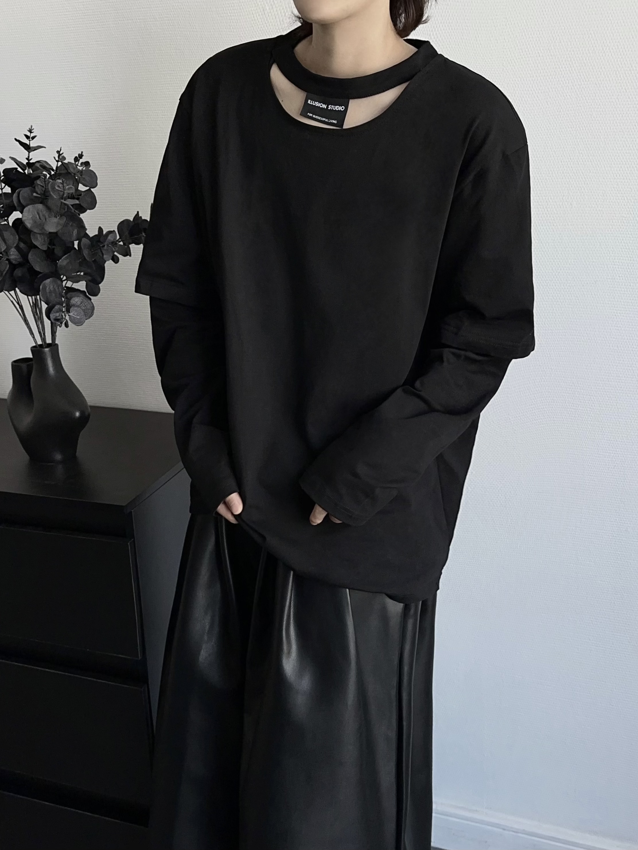 Deconstructed Hollow-Out Long Sleeve T-Shirt WN19366