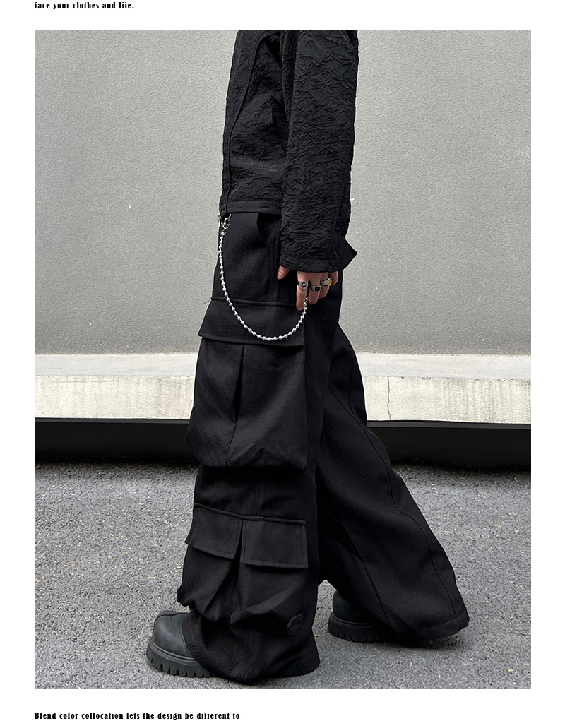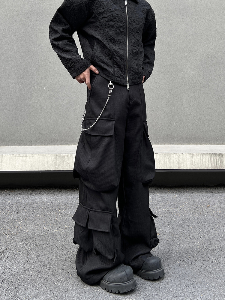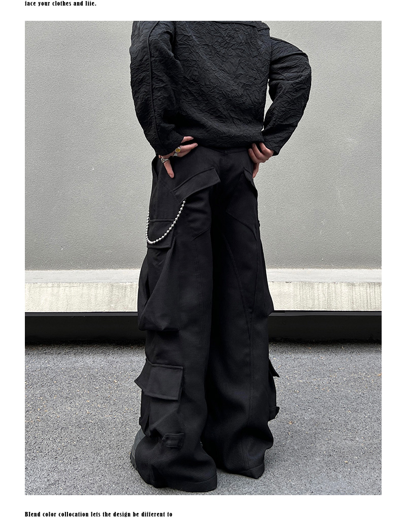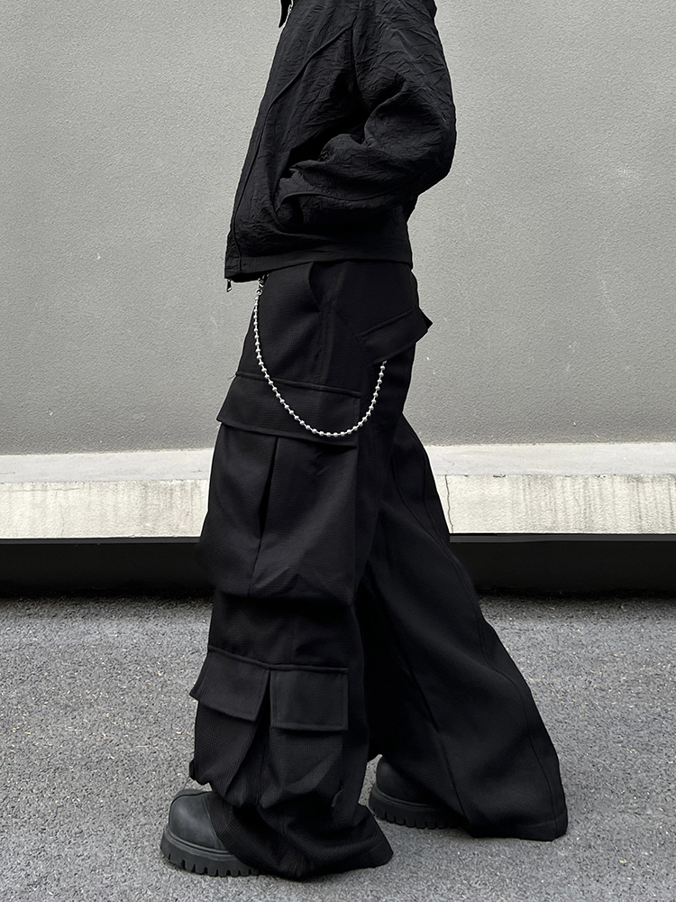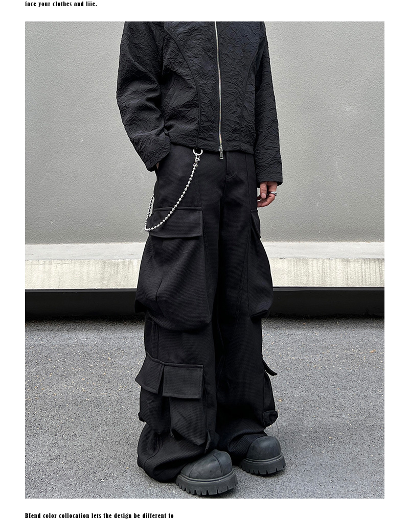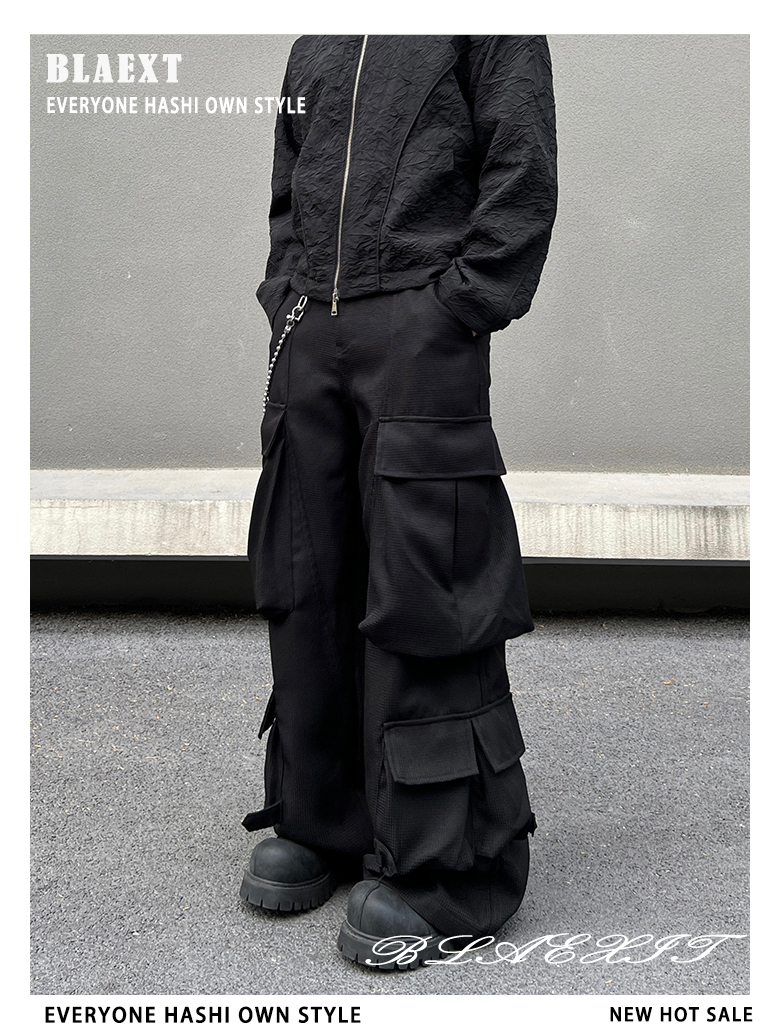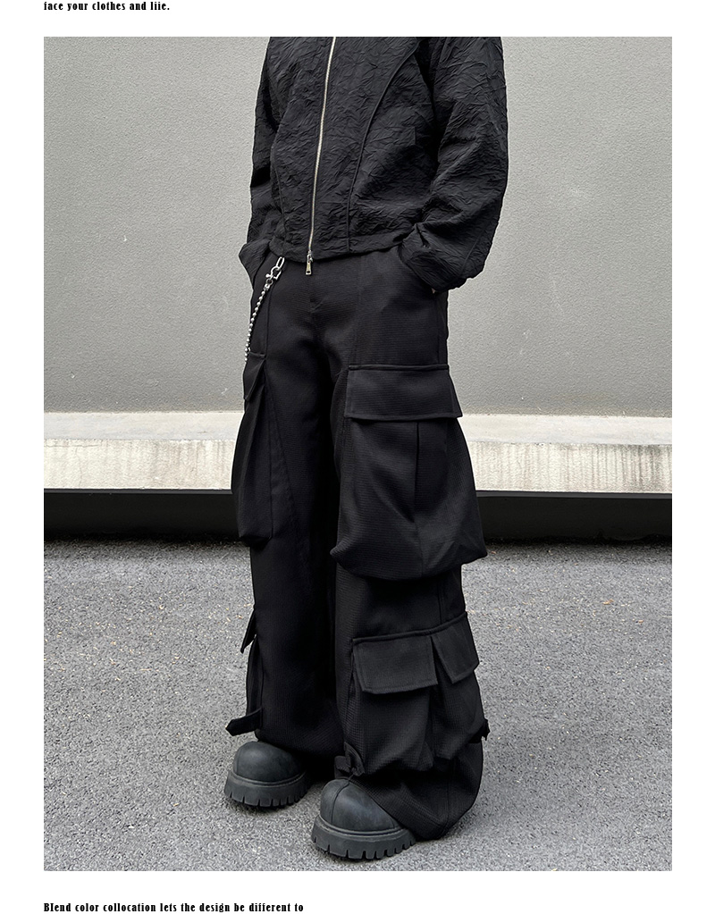 Multi-Pocket Wide Leg Straight Cargo Pants WN19567