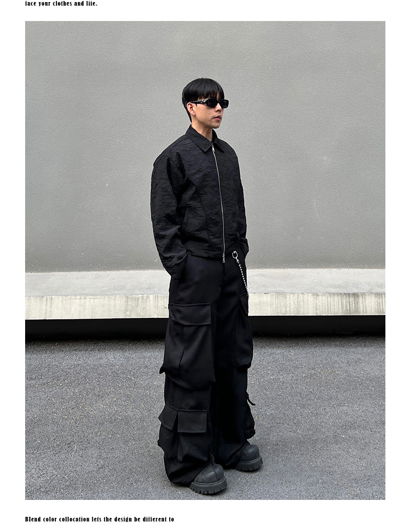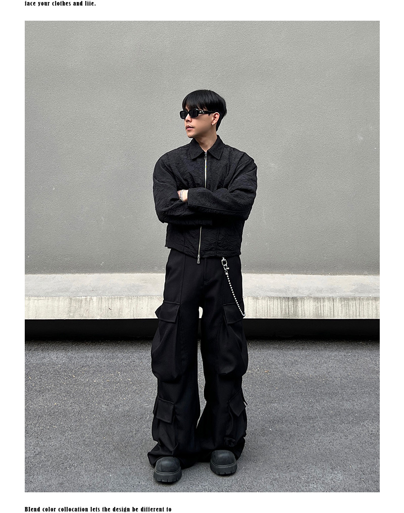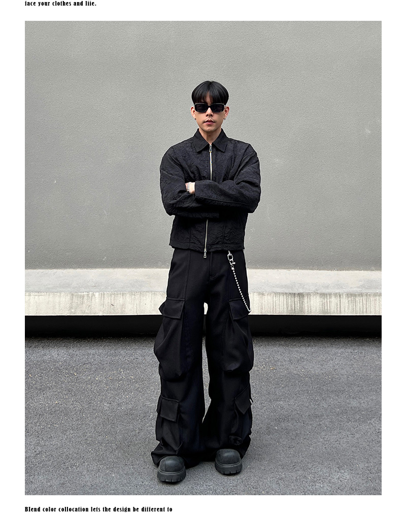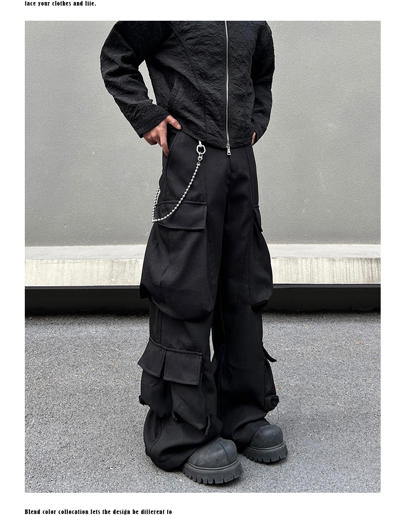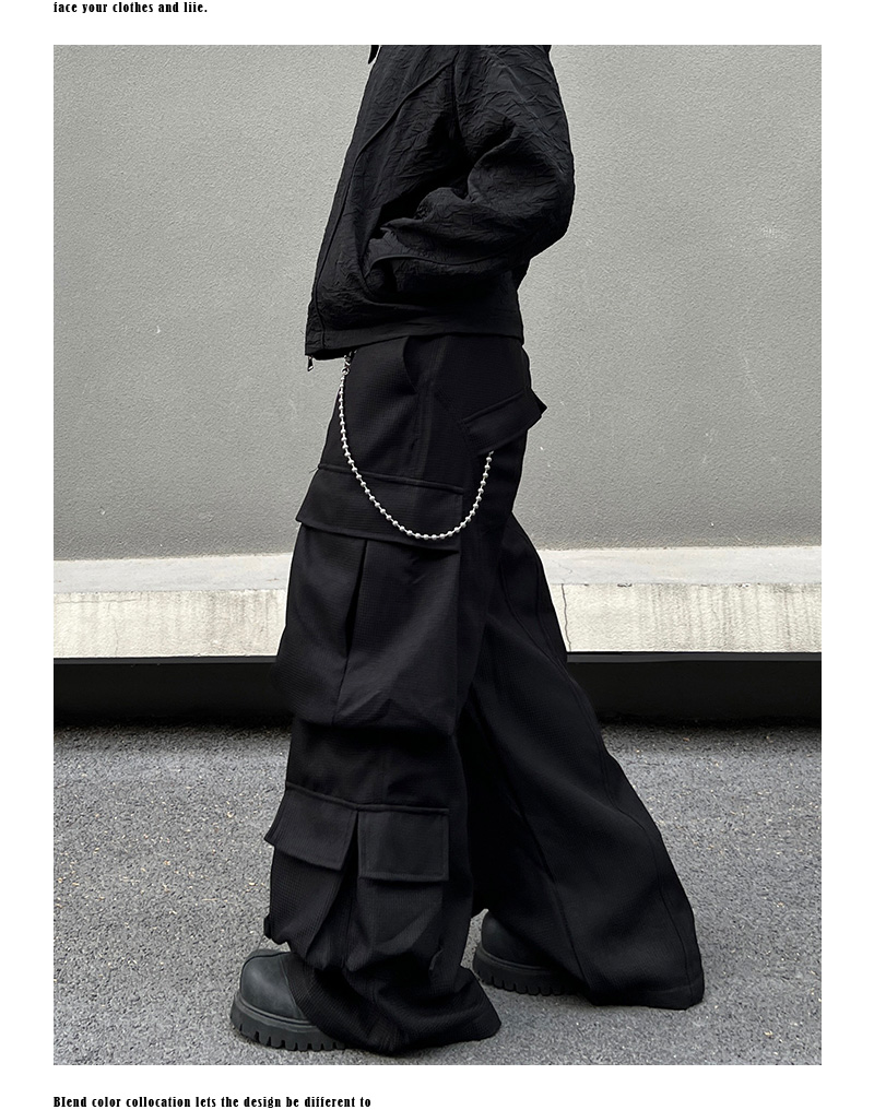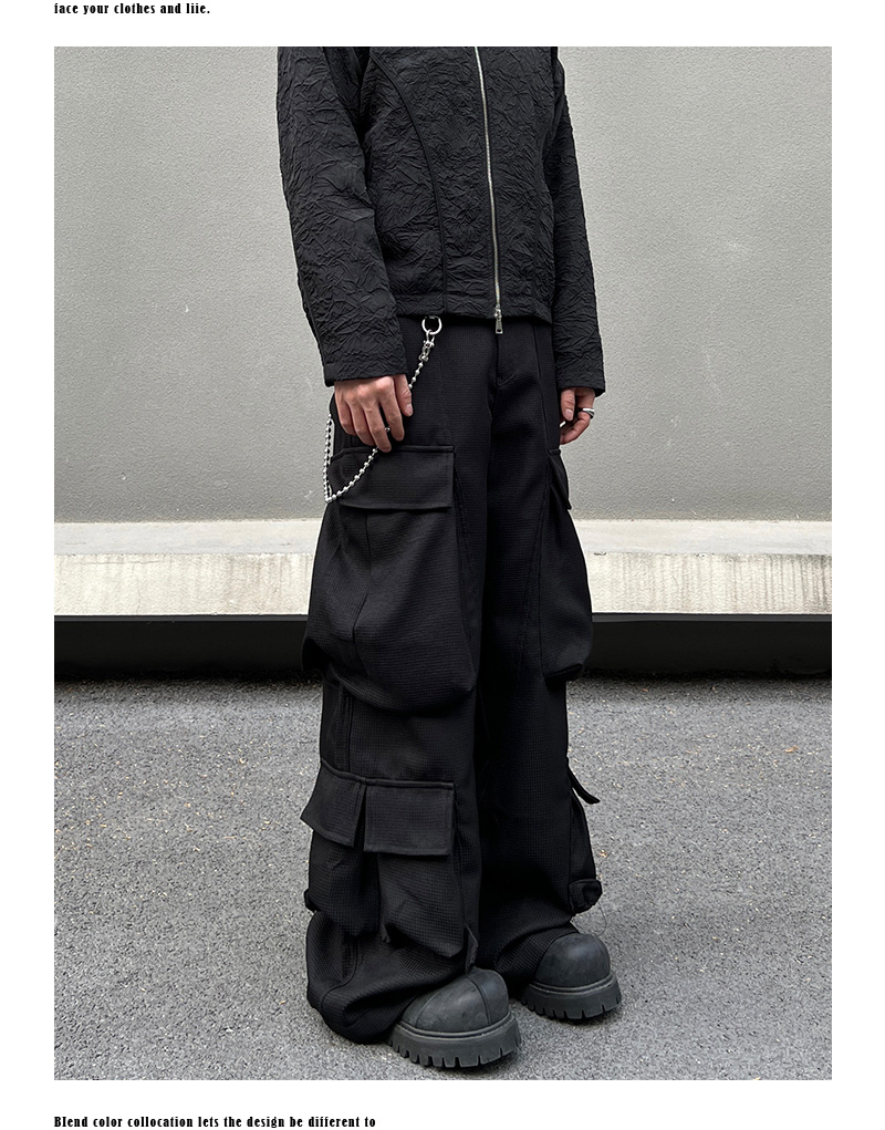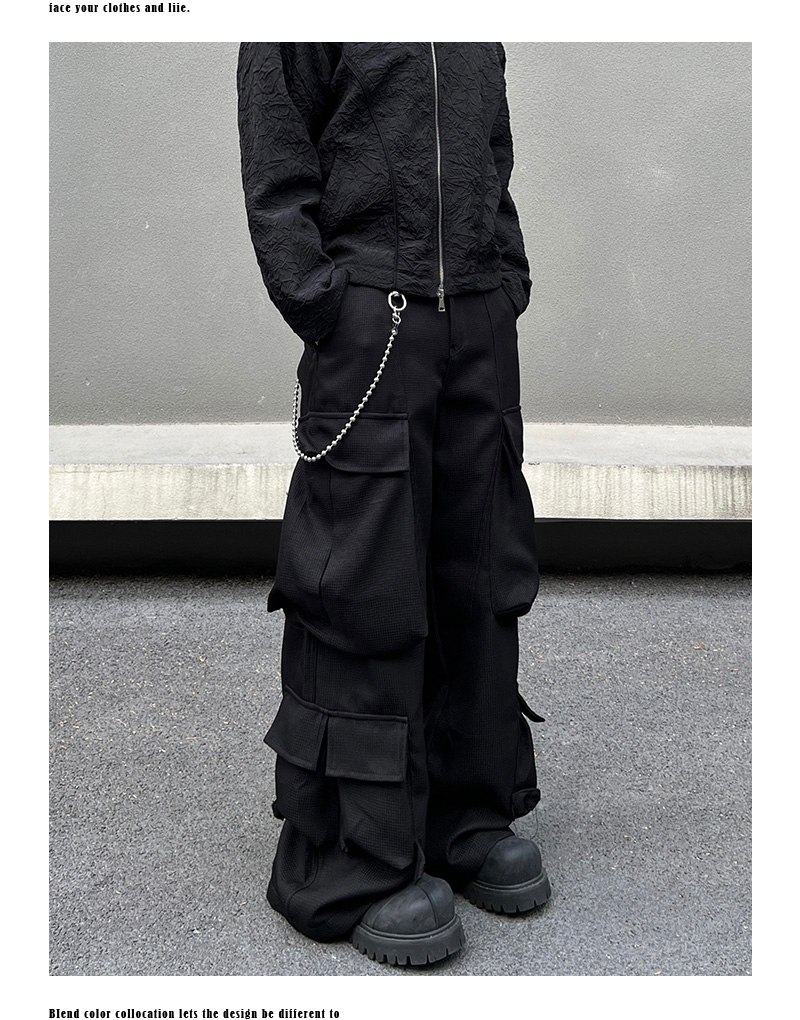 Multi-Pocket Wide Leg Straight Cargo Pants WN19567