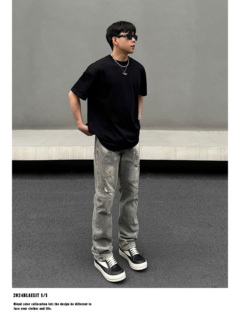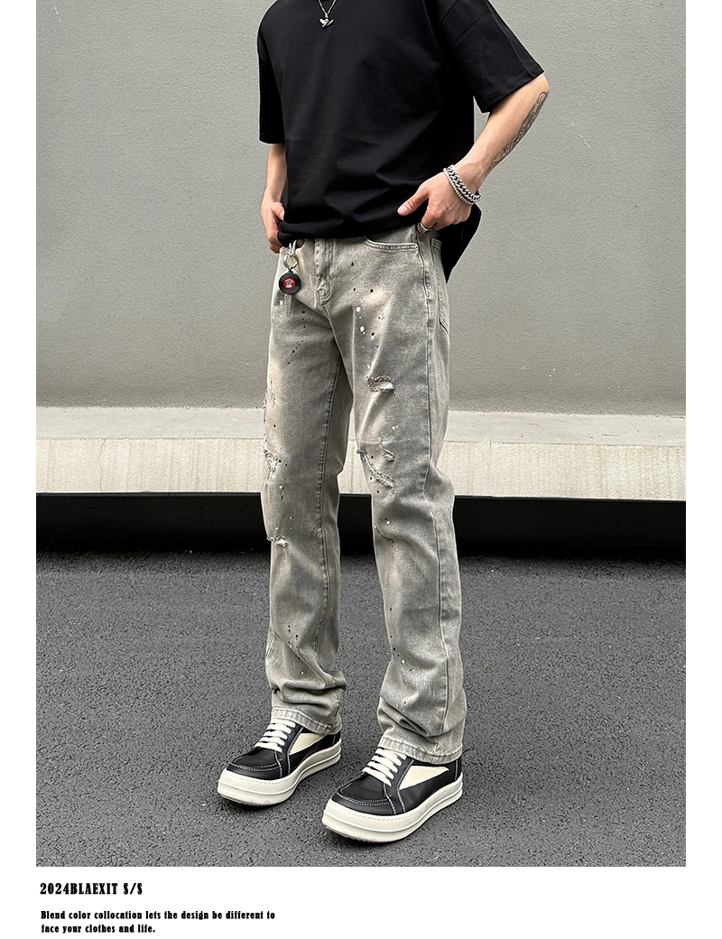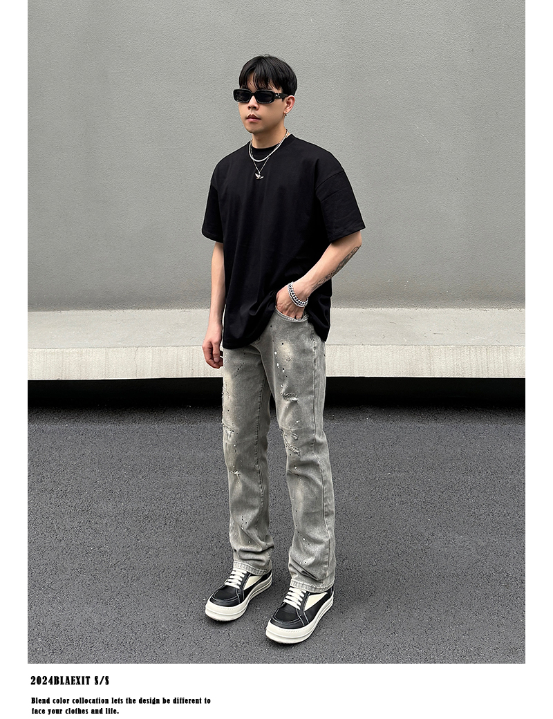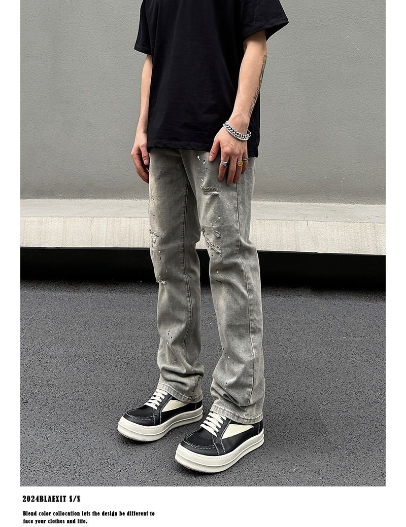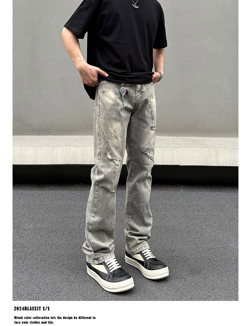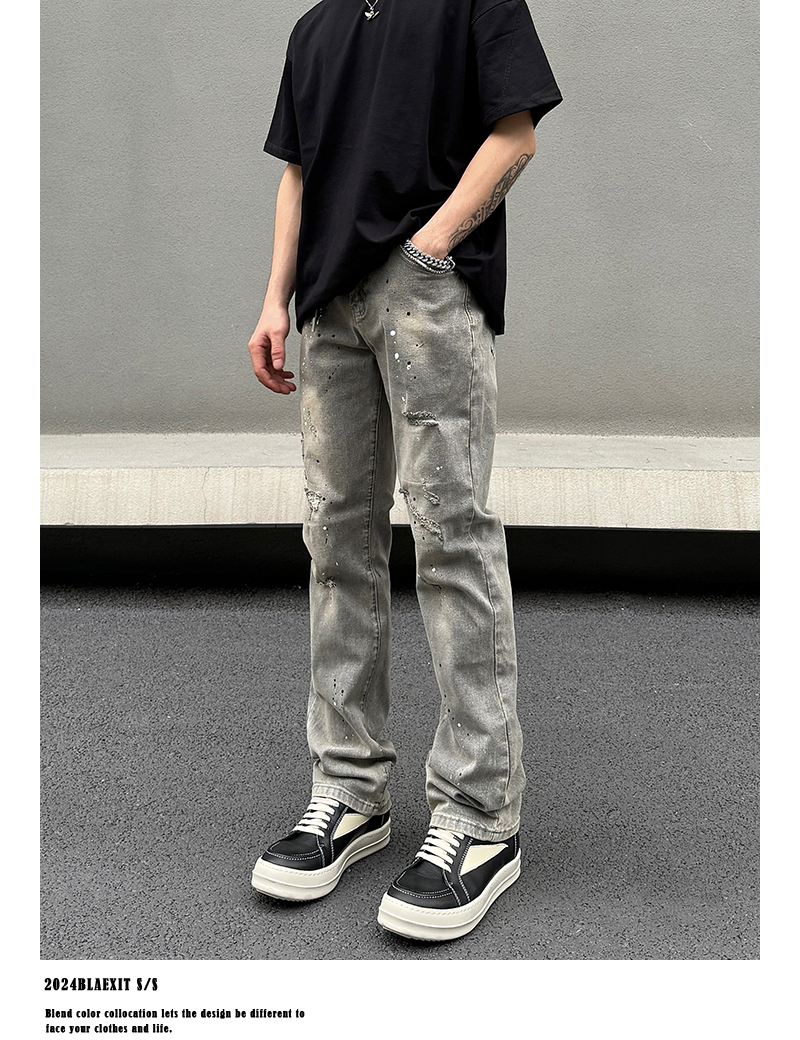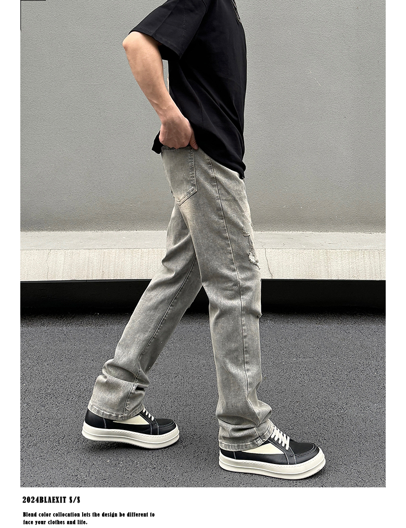 Washed Damage Stretch Denim Jeans WN19600