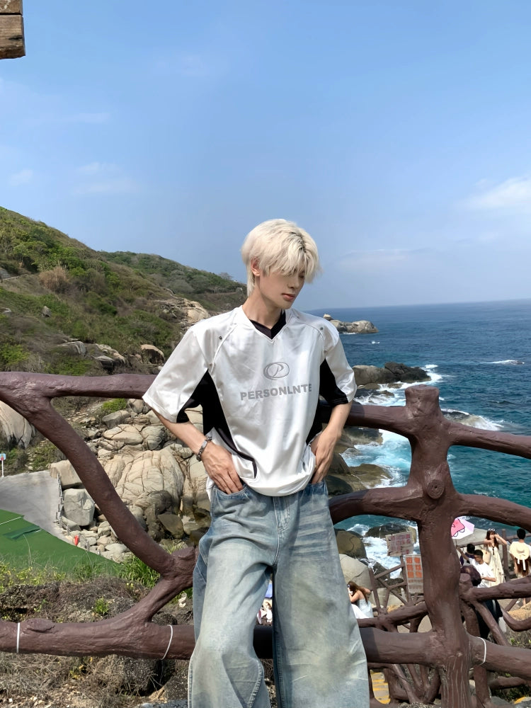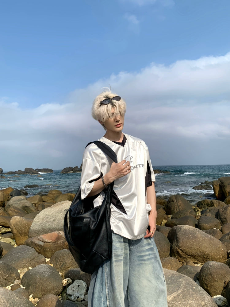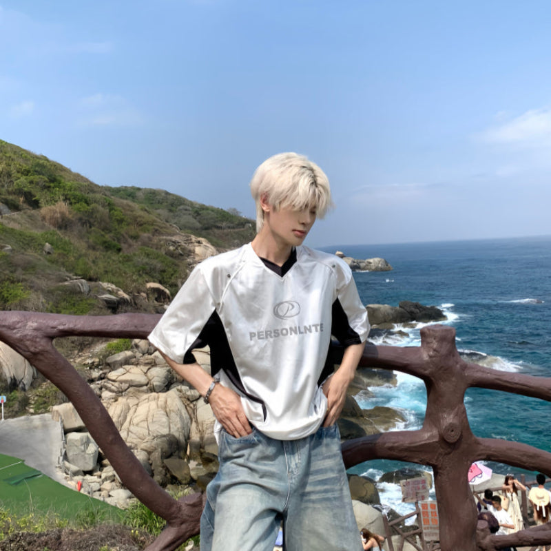 Shiny Satin Mesh Breathable Short Sleeve T-Shirt WN19782