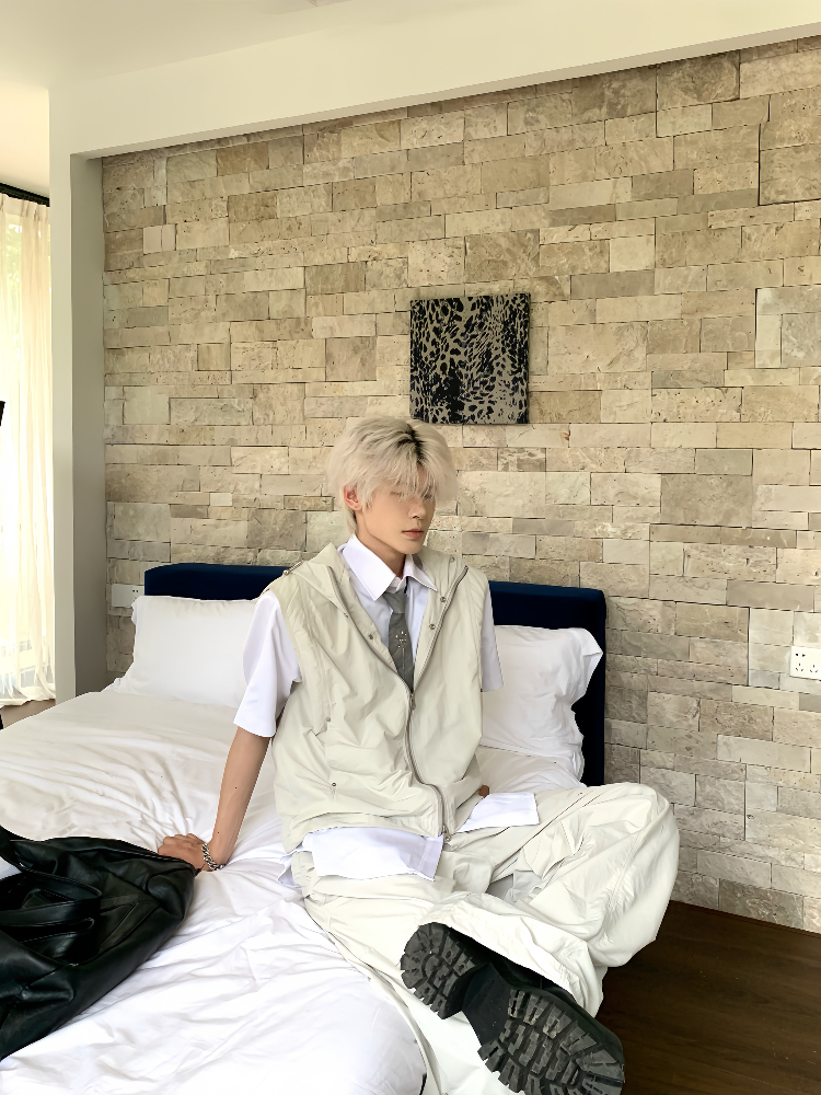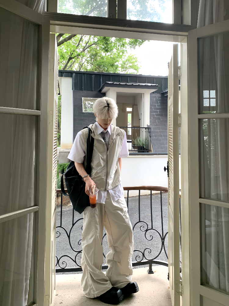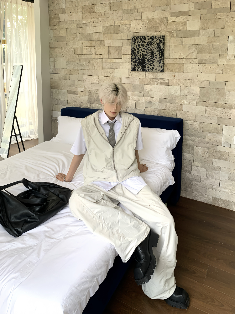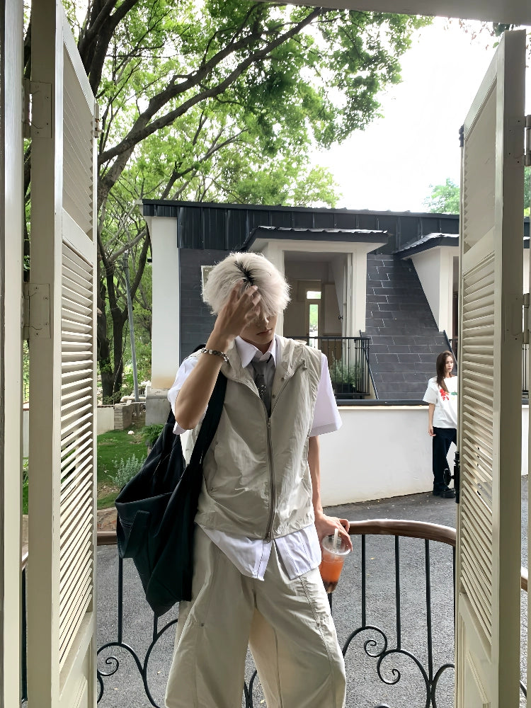 Hooded Sleeveless Vest Jacket & Cargo Pants Setup WN19785