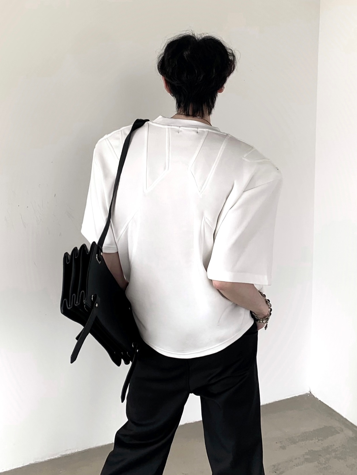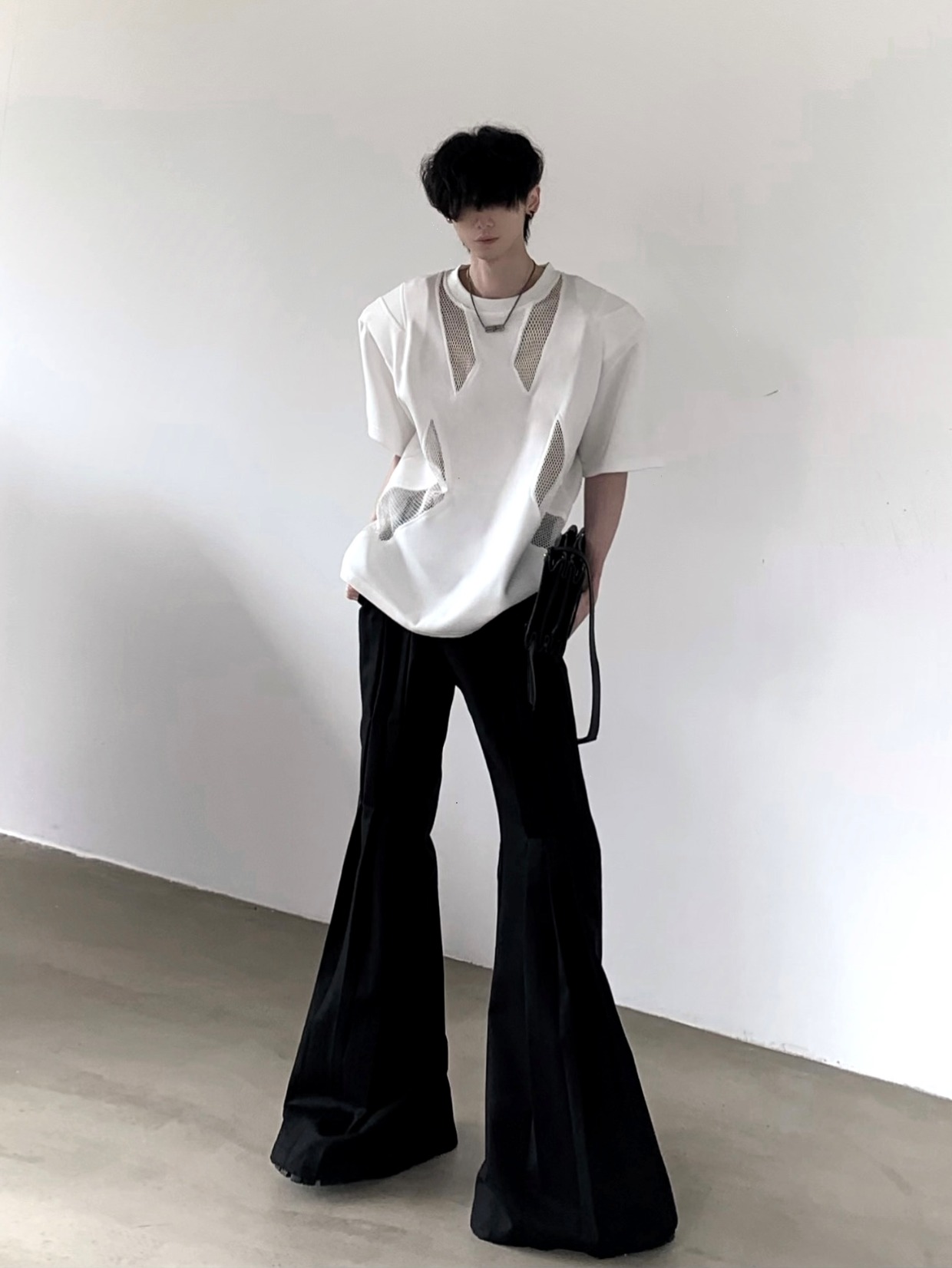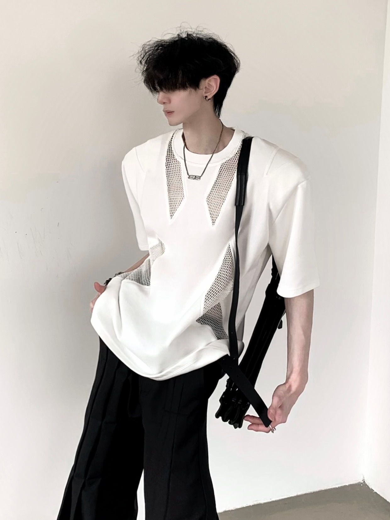 Mesh Patchwork Shoulder-pad Oversize Short Sleeve T-Shirt WN20340