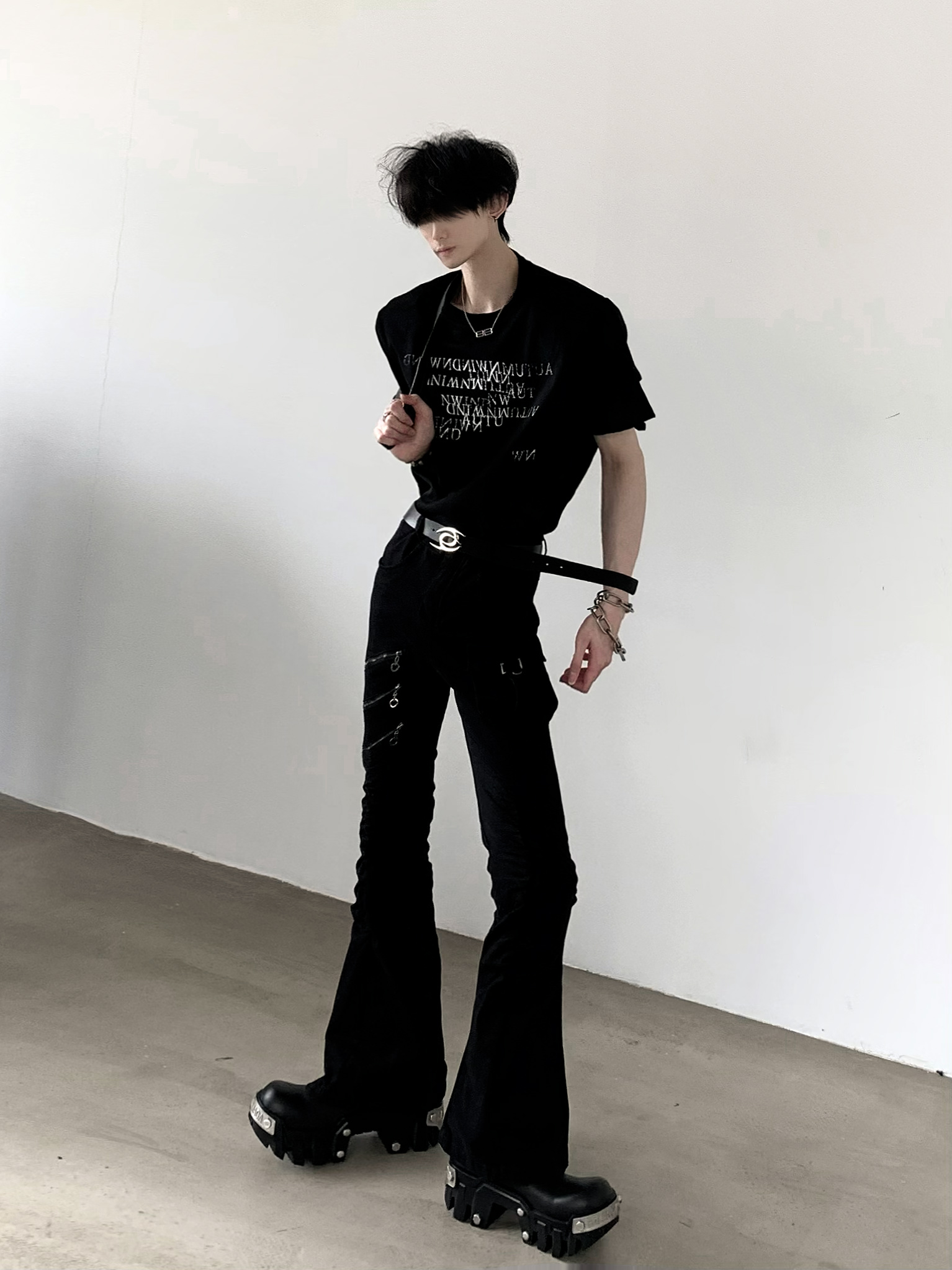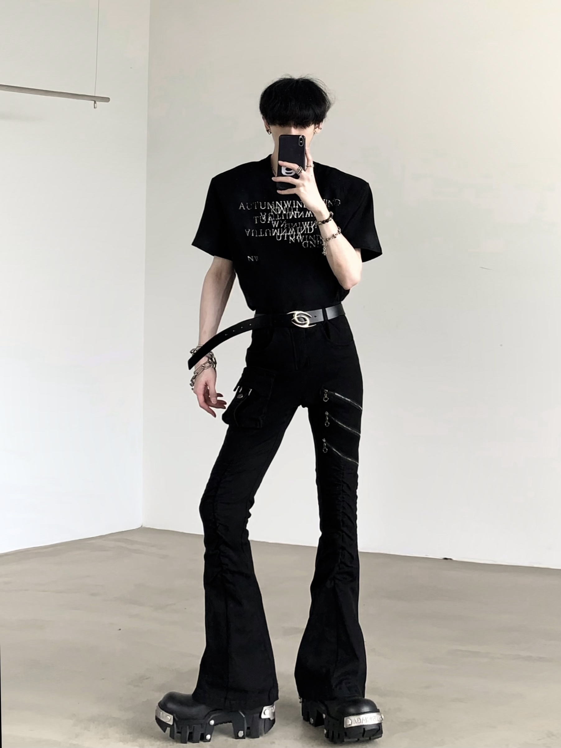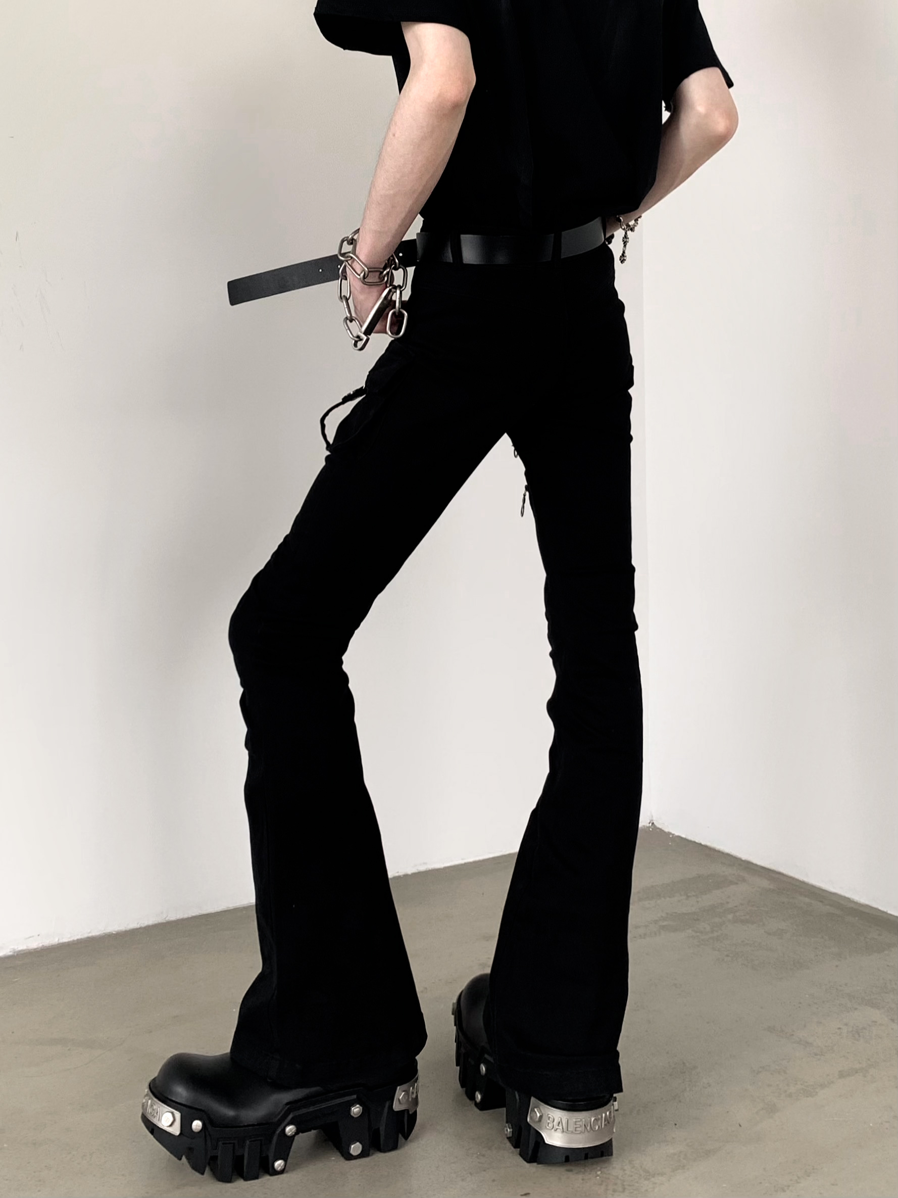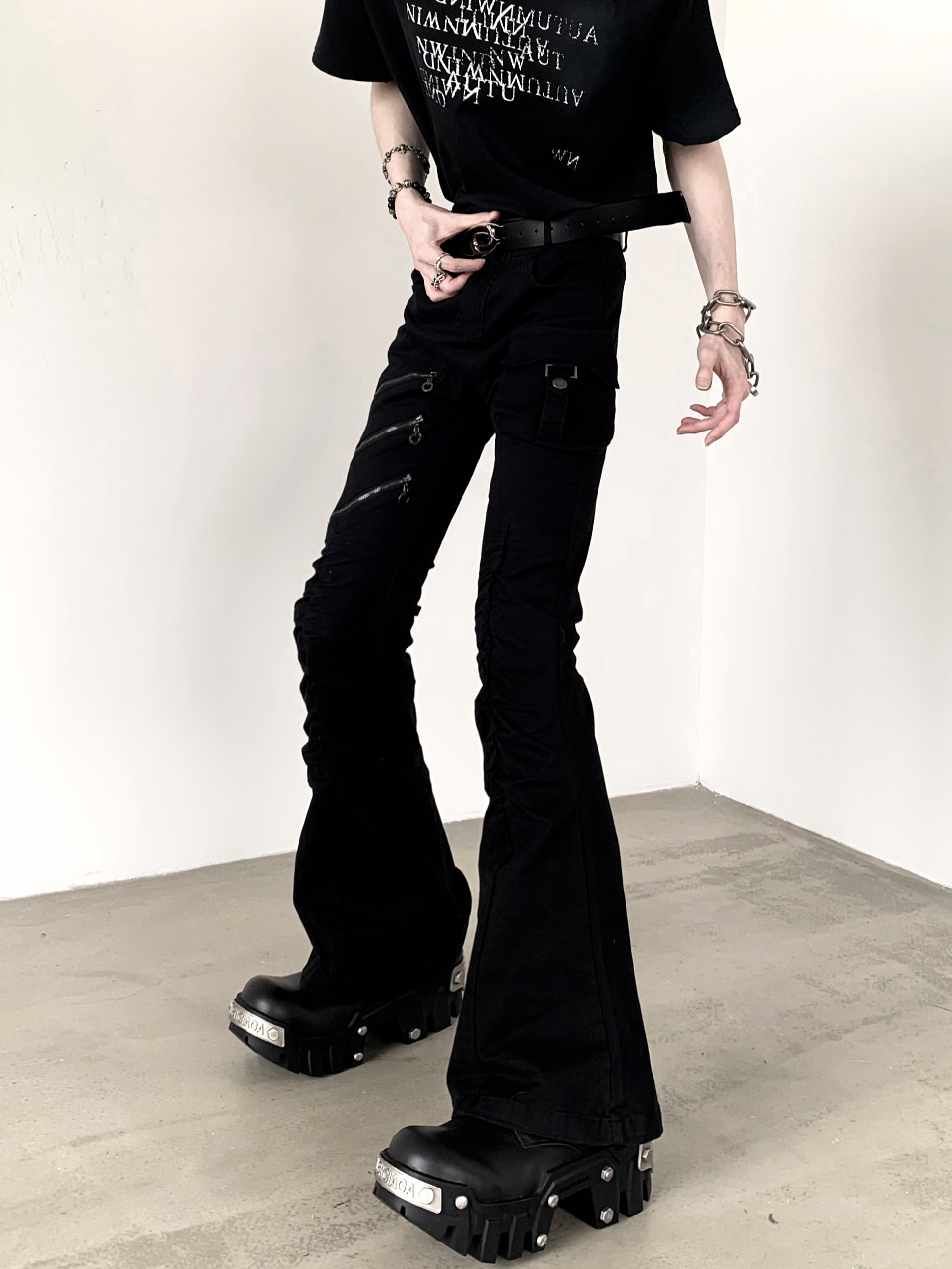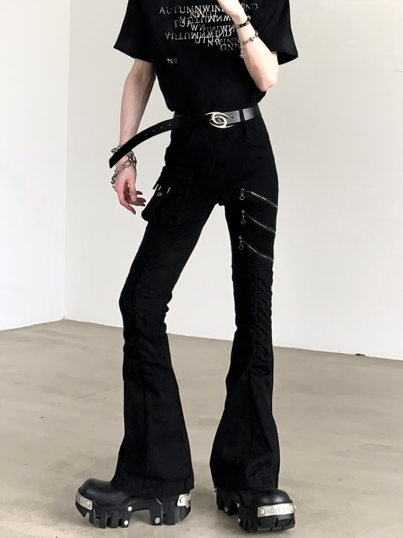 Zipper Design Flare Cargo Denim Jeans WN20348