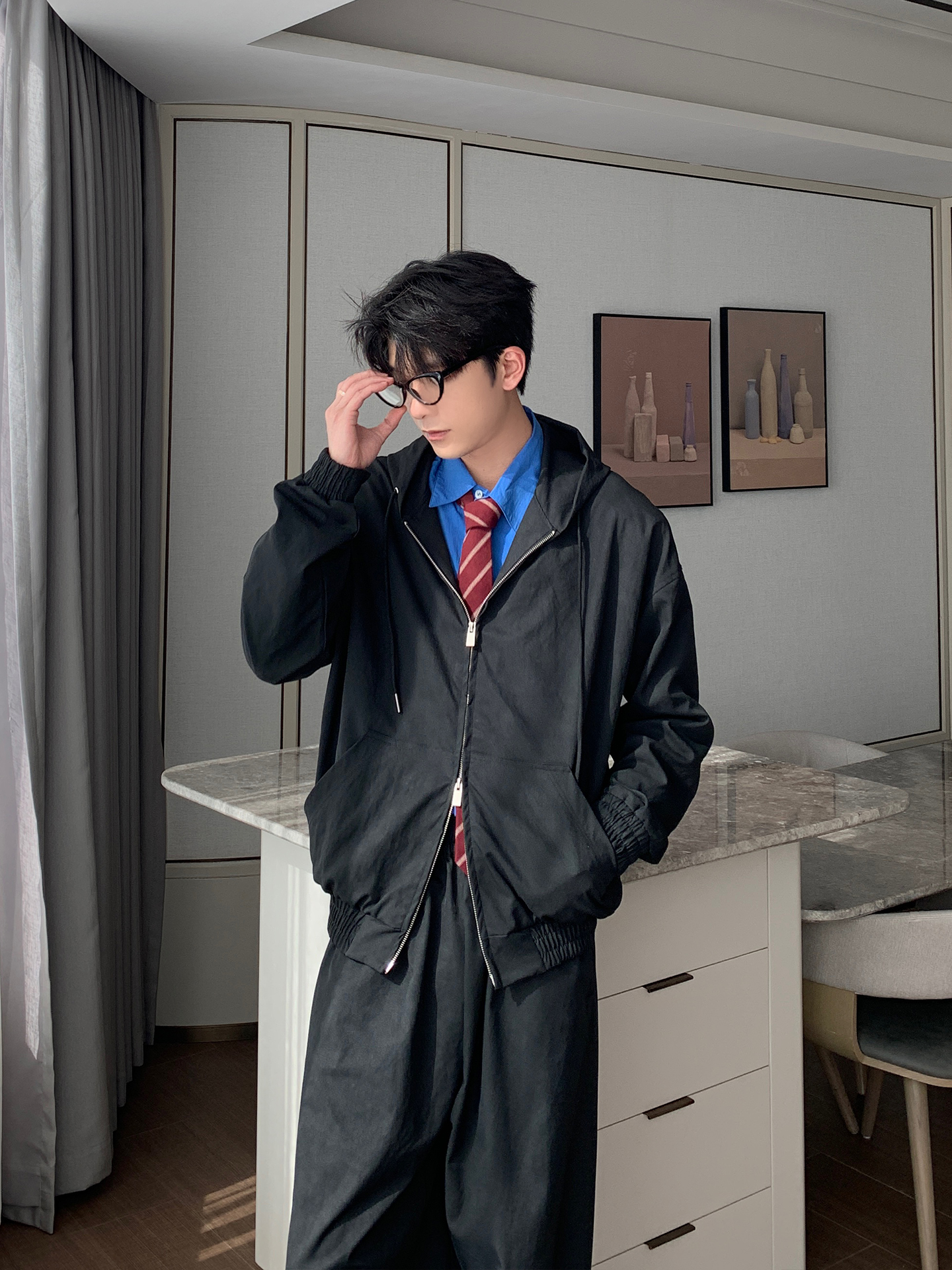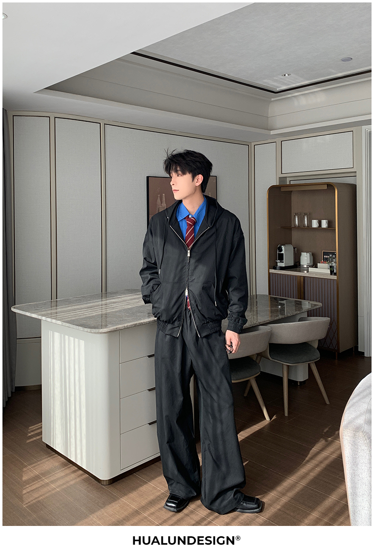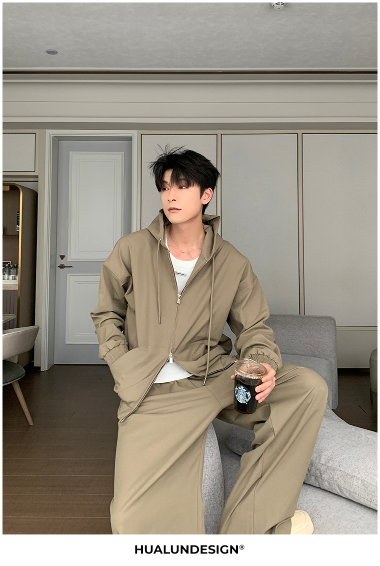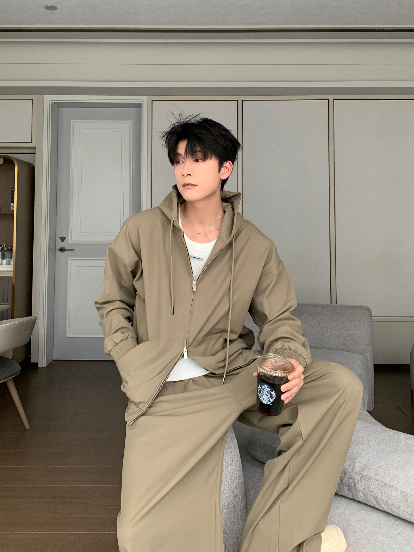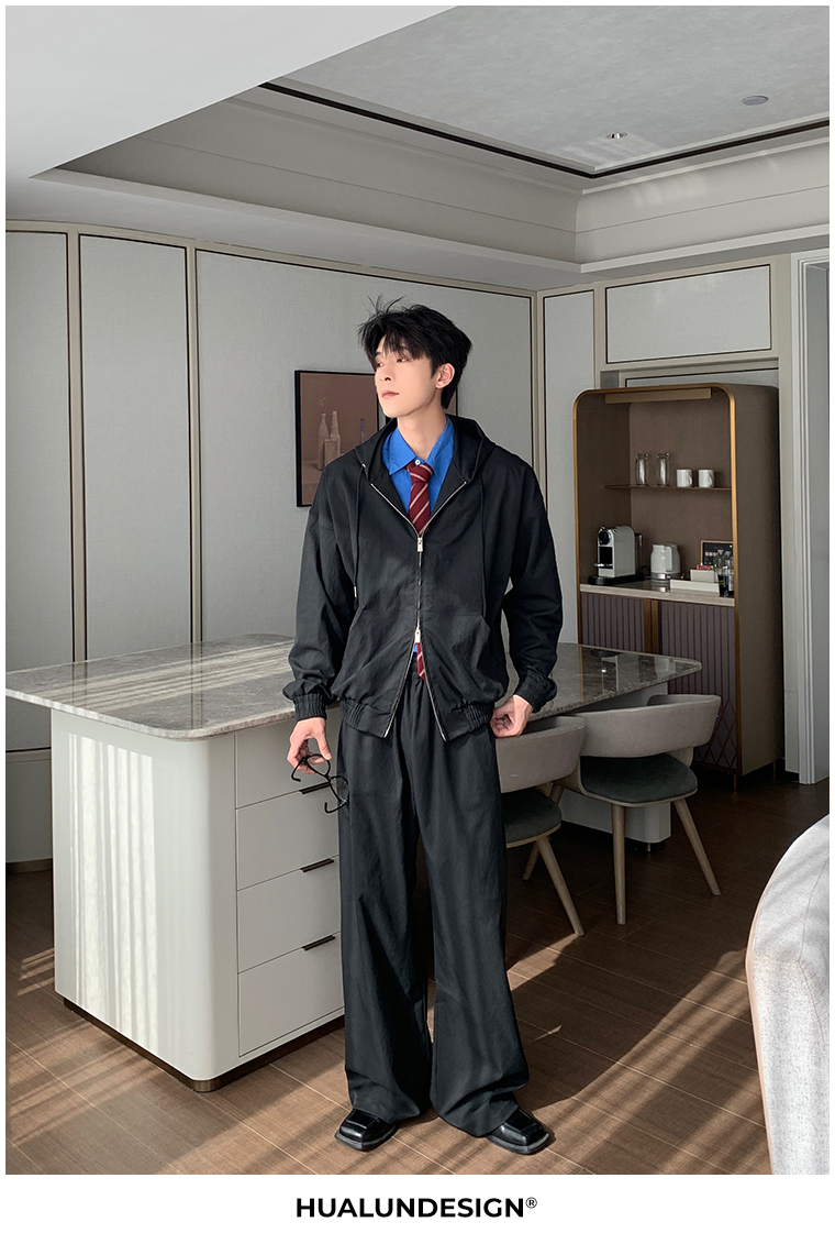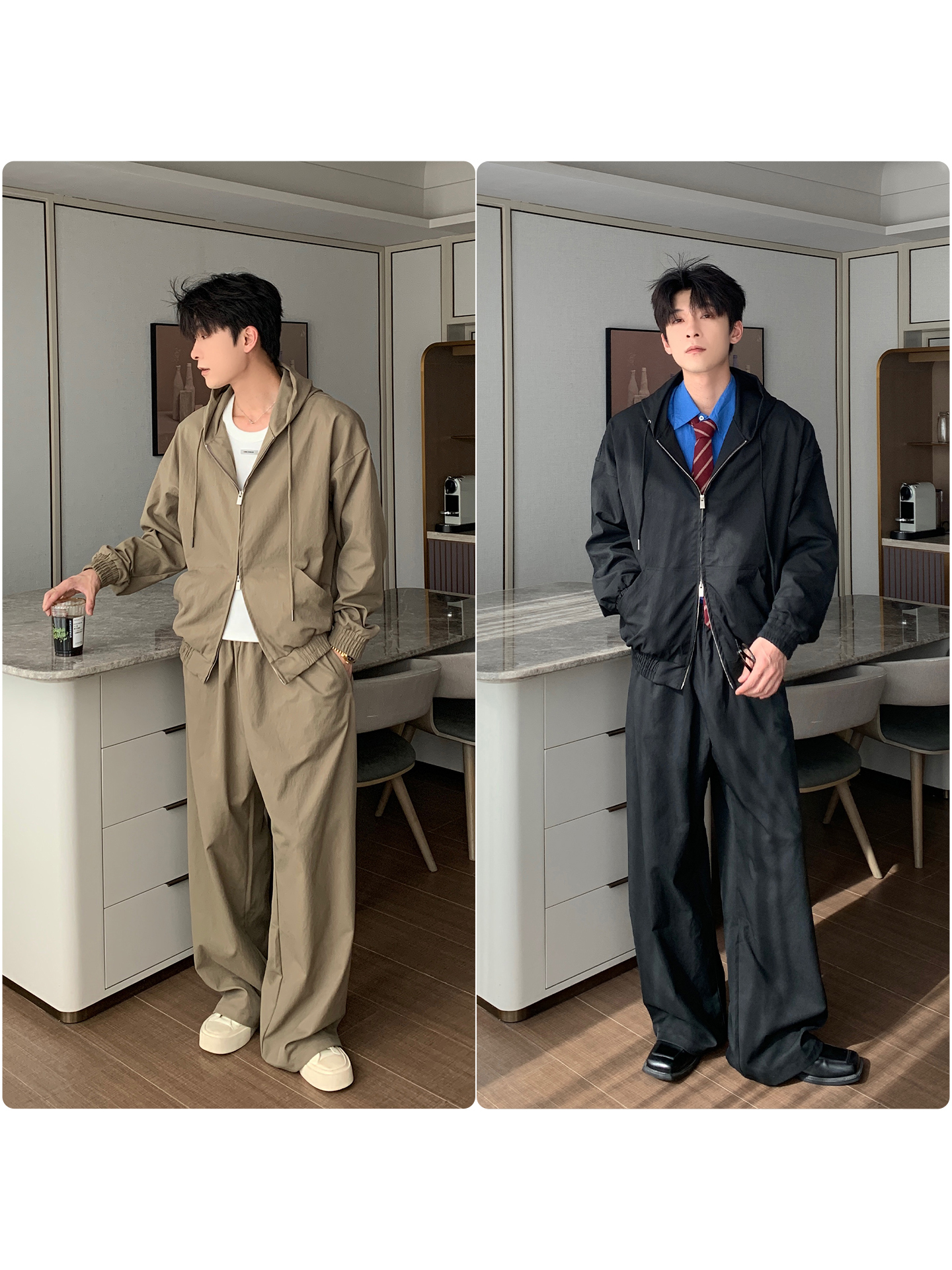 Hooded Zipper Jacket & Wide Leg Pants Setup WN20490