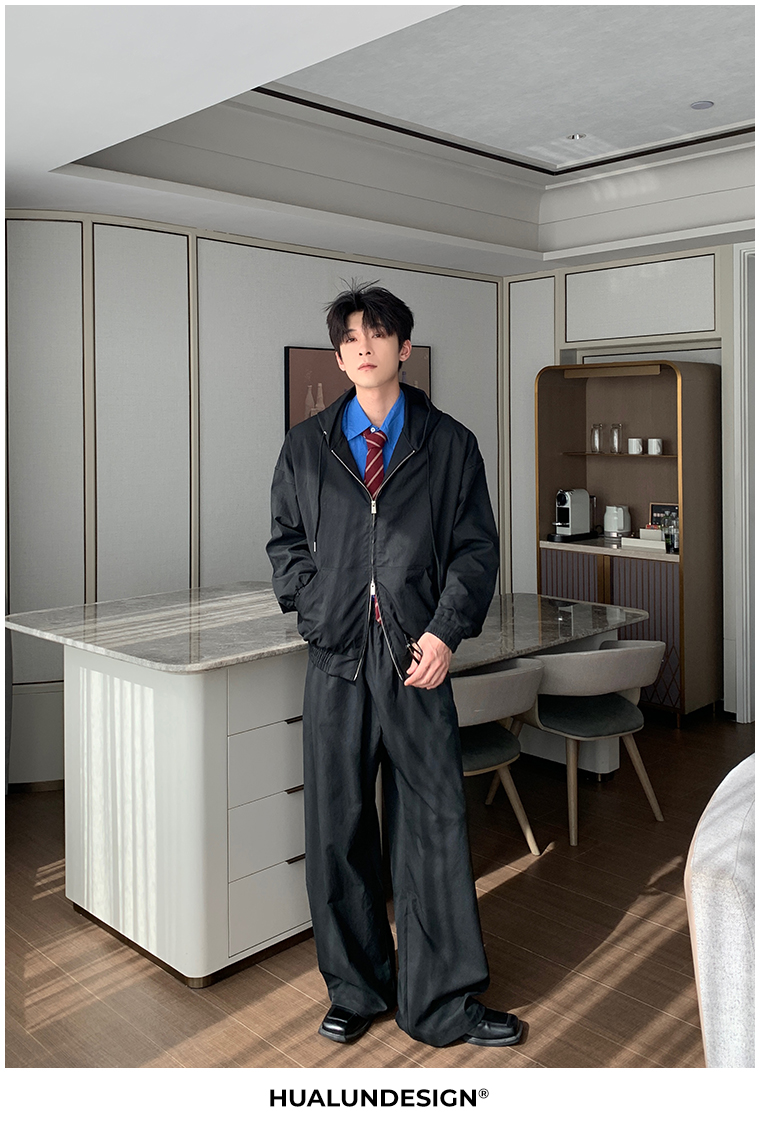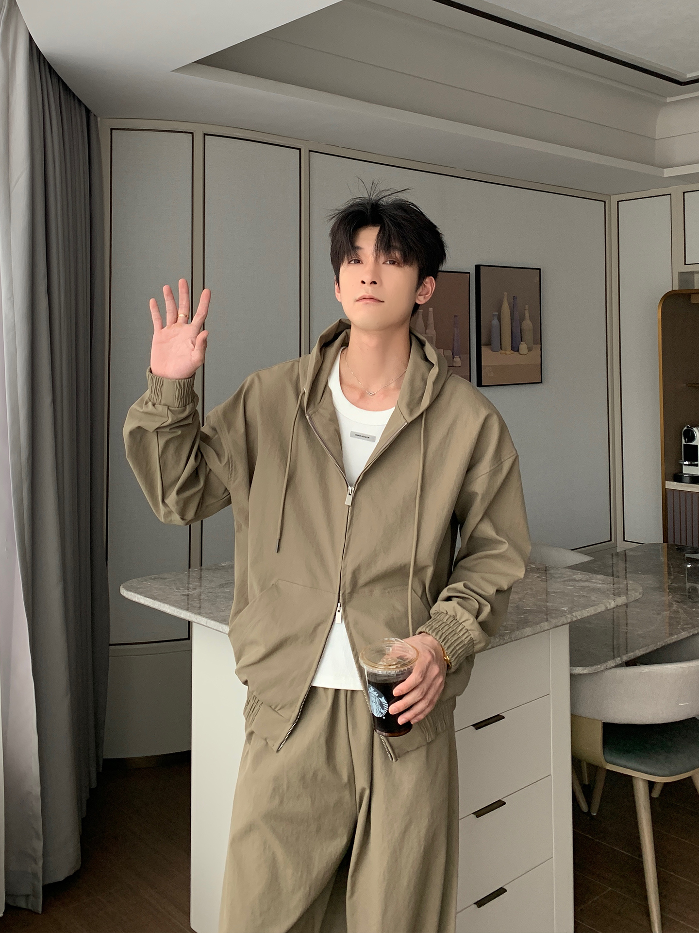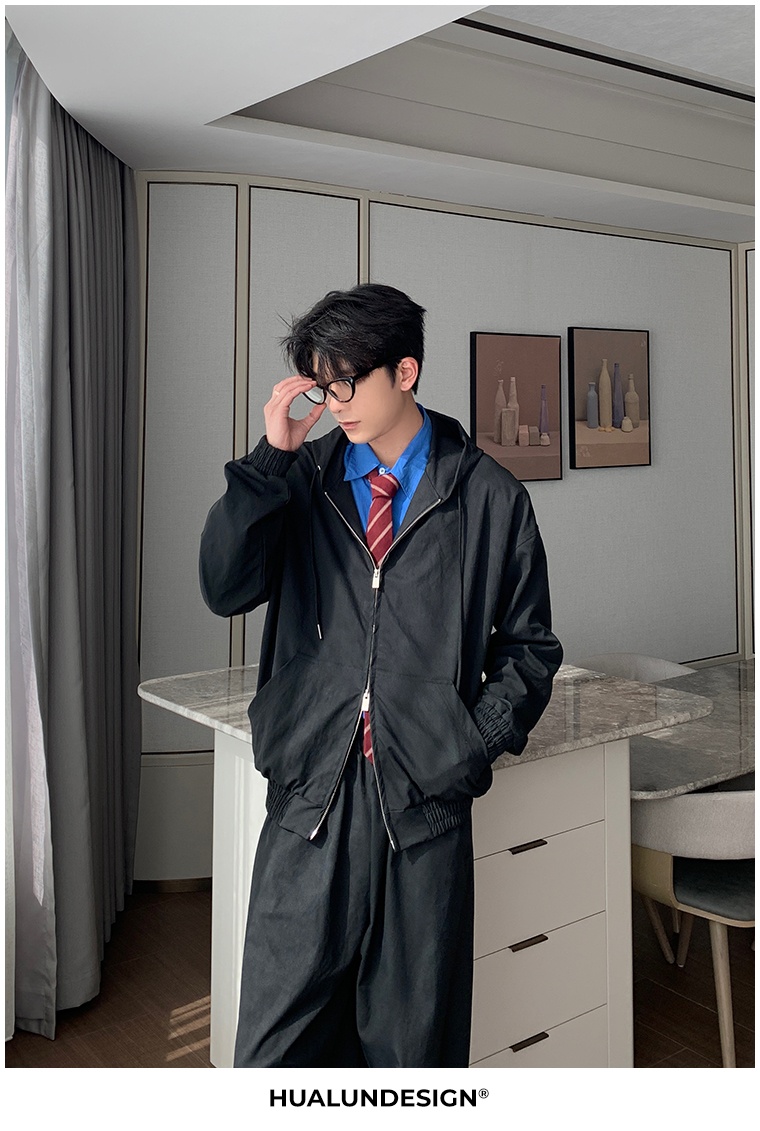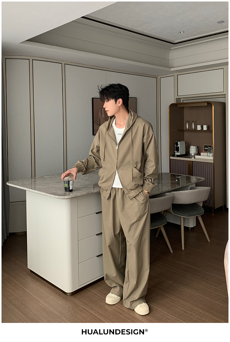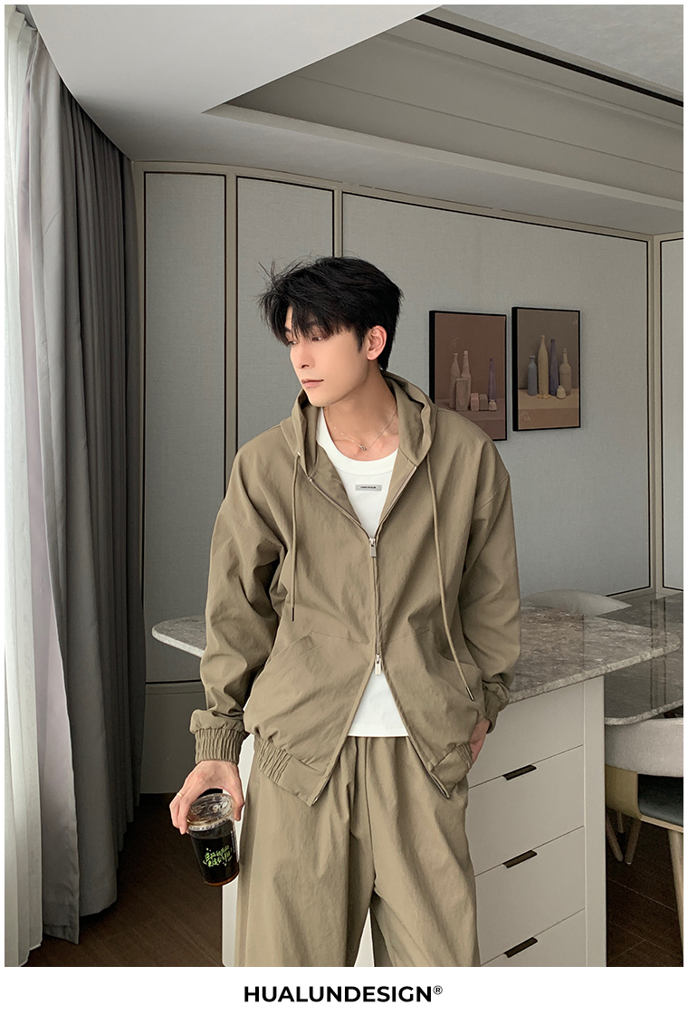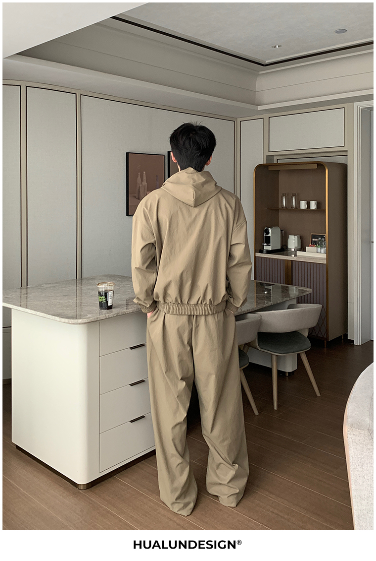 Hooded Zipper Jacket & Wide Leg Pants Setup WN20490