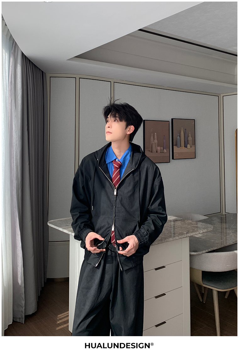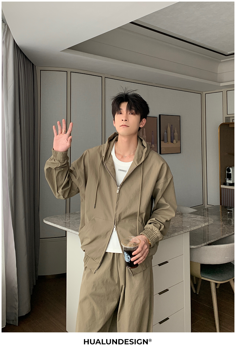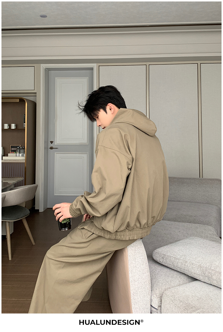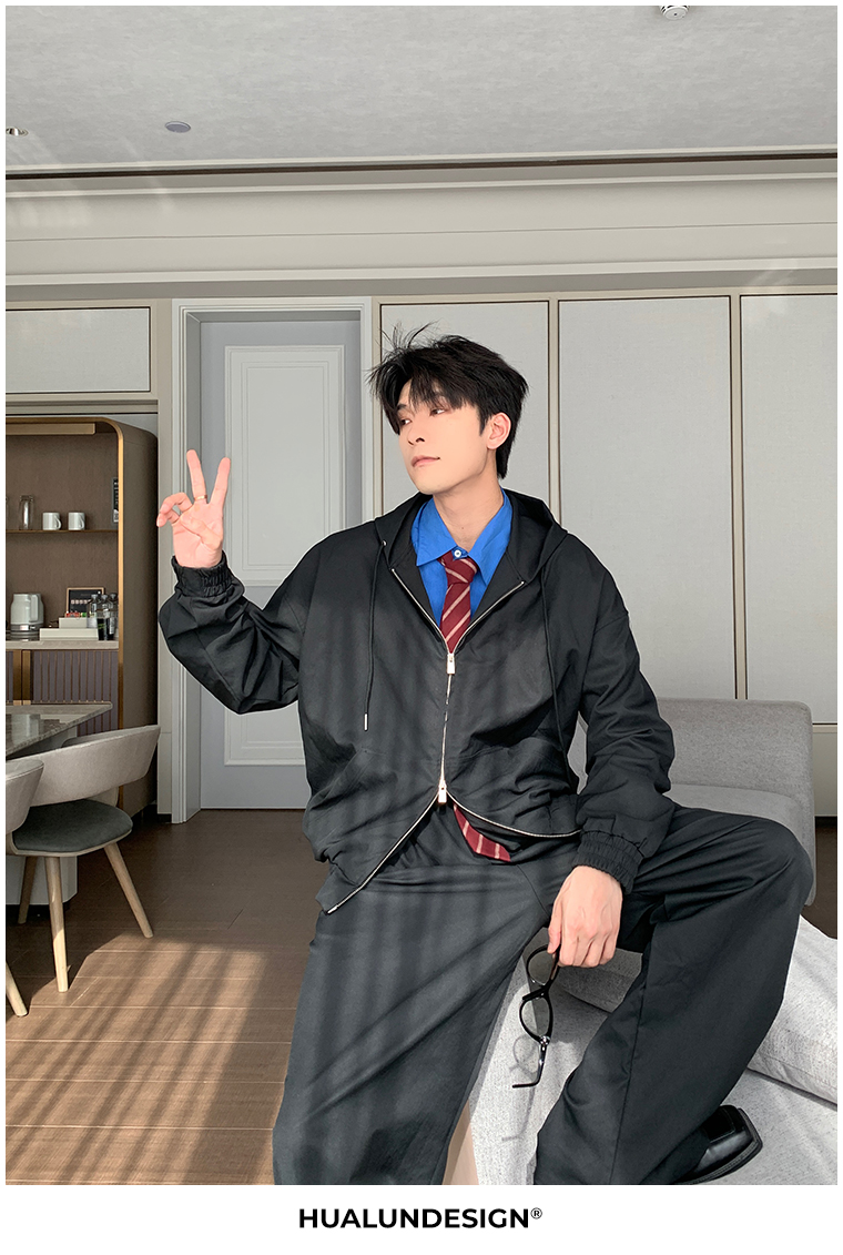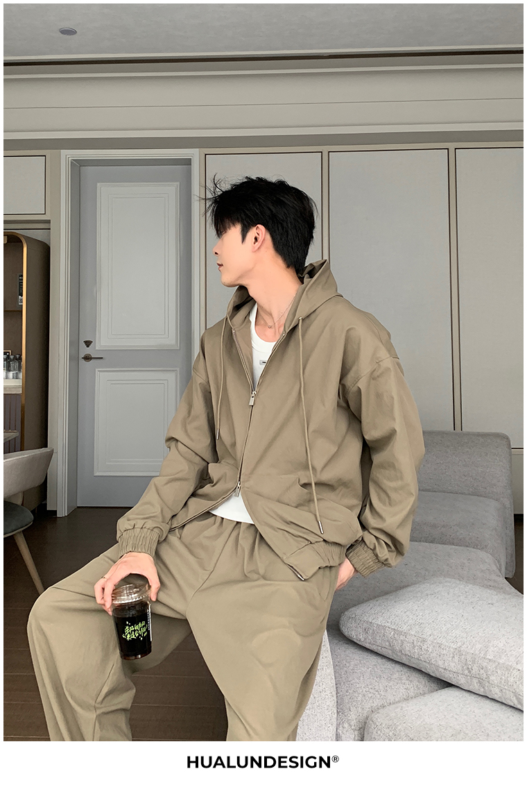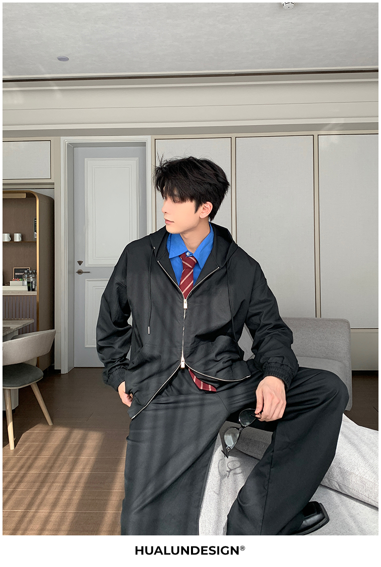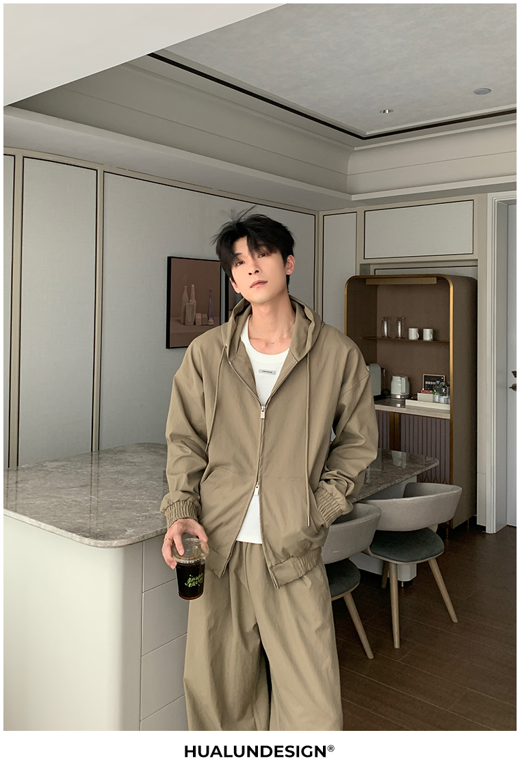 Hooded Zipper Jacket & Wide Leg Pants Setup WN20490