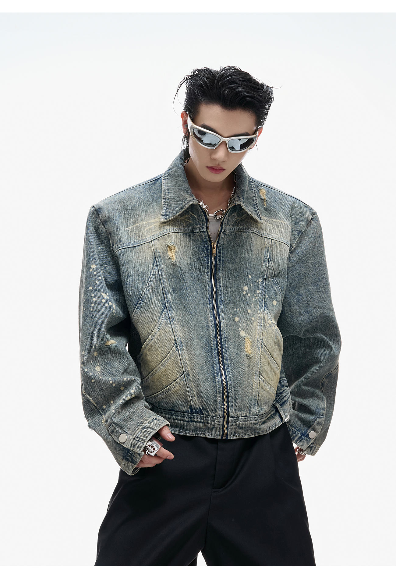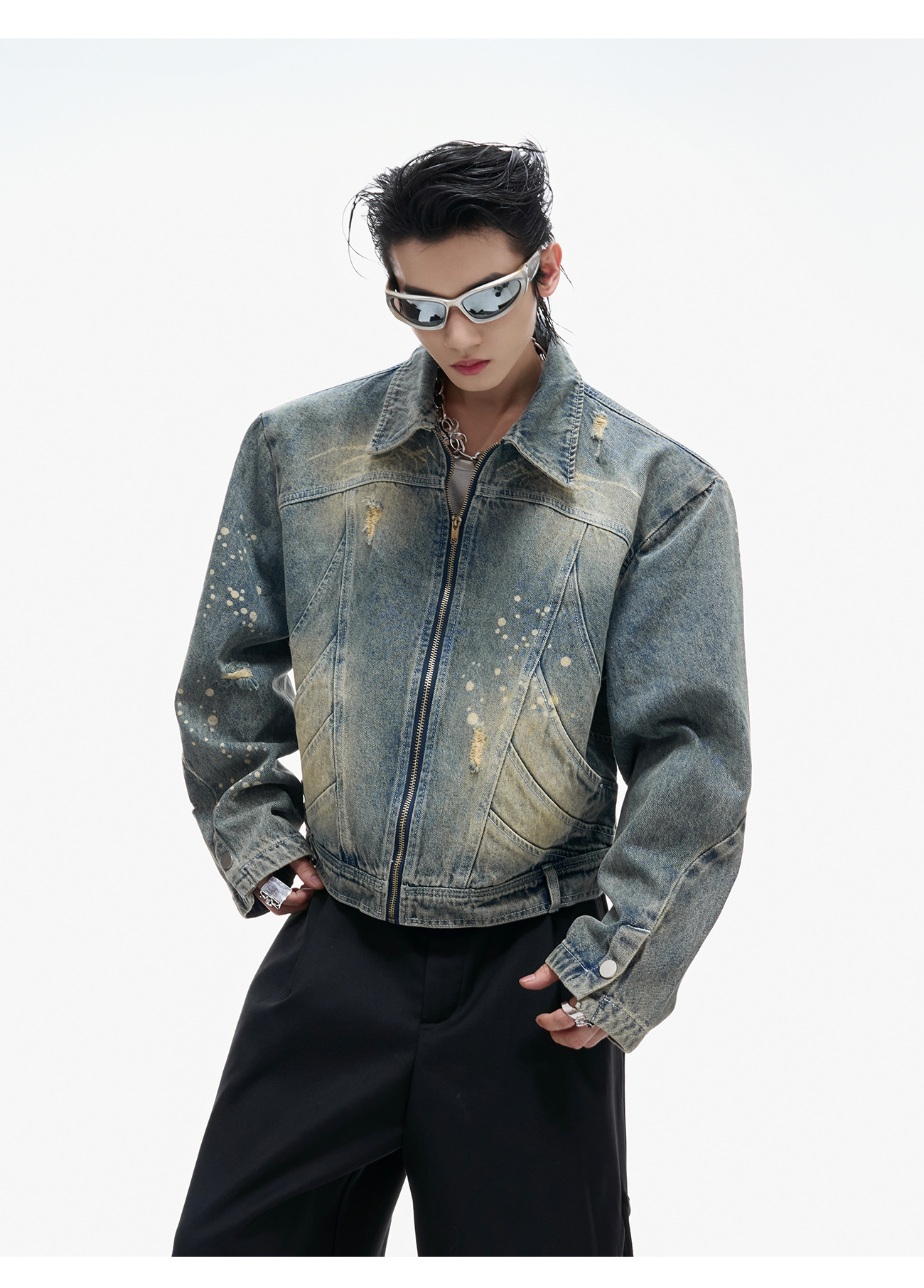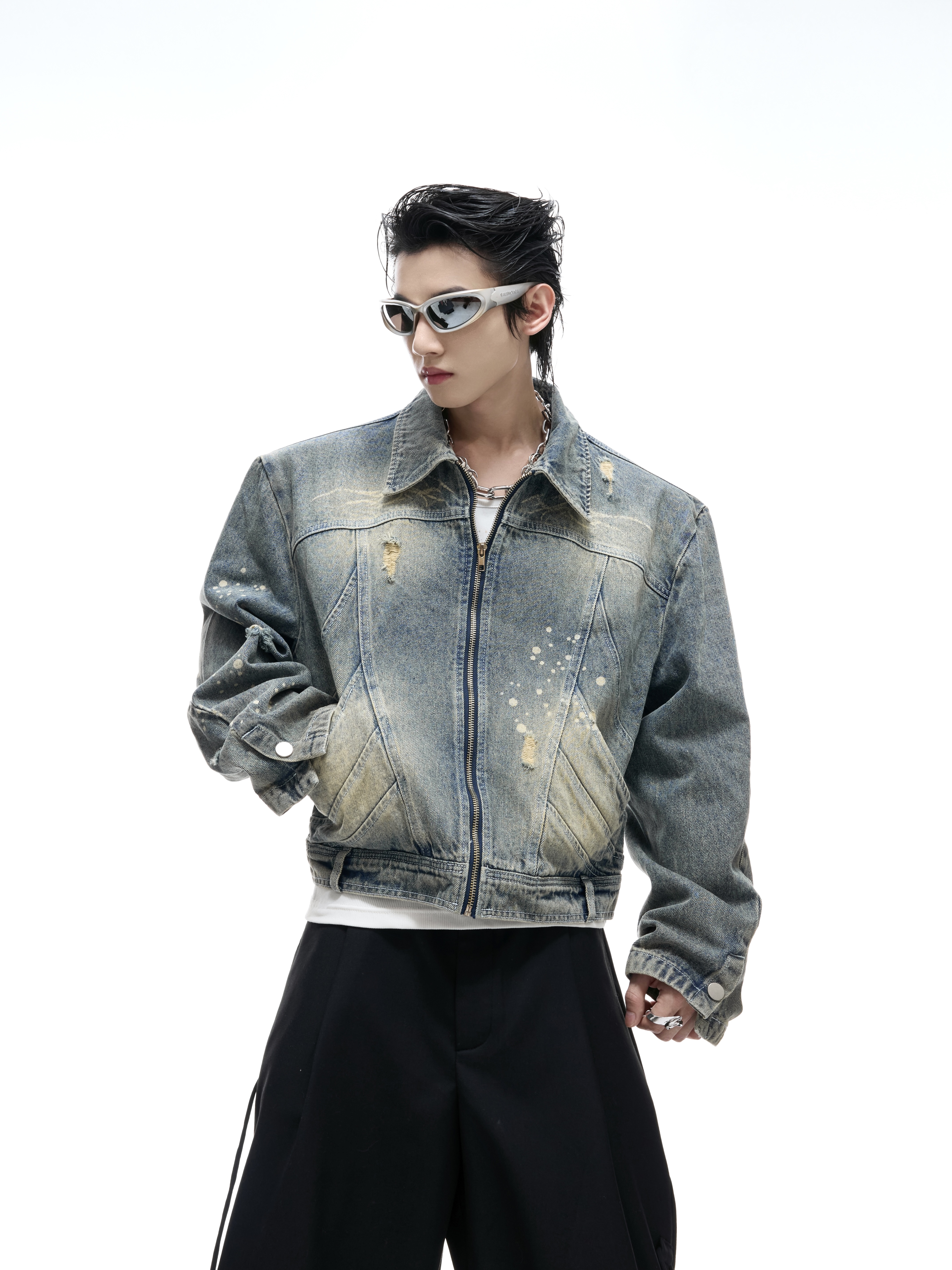 Damage Washed Zipper Jacket WN20547