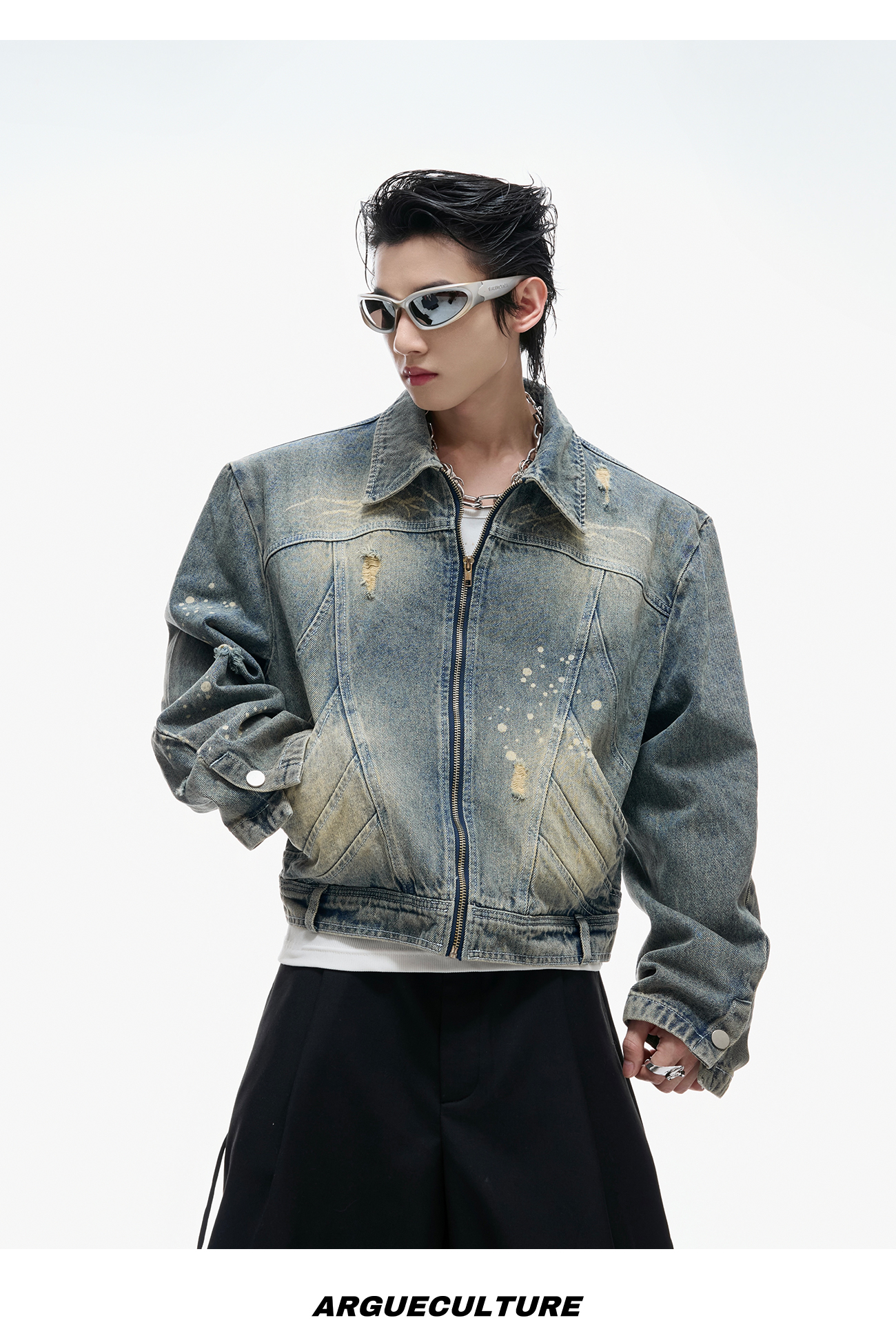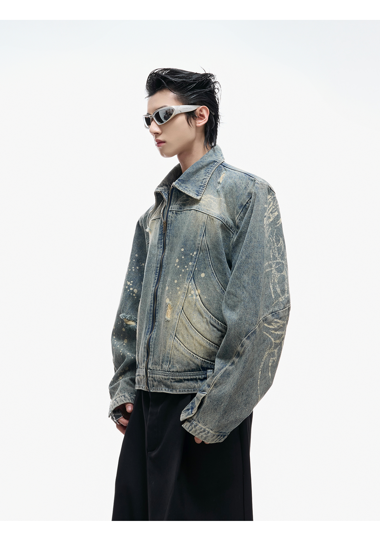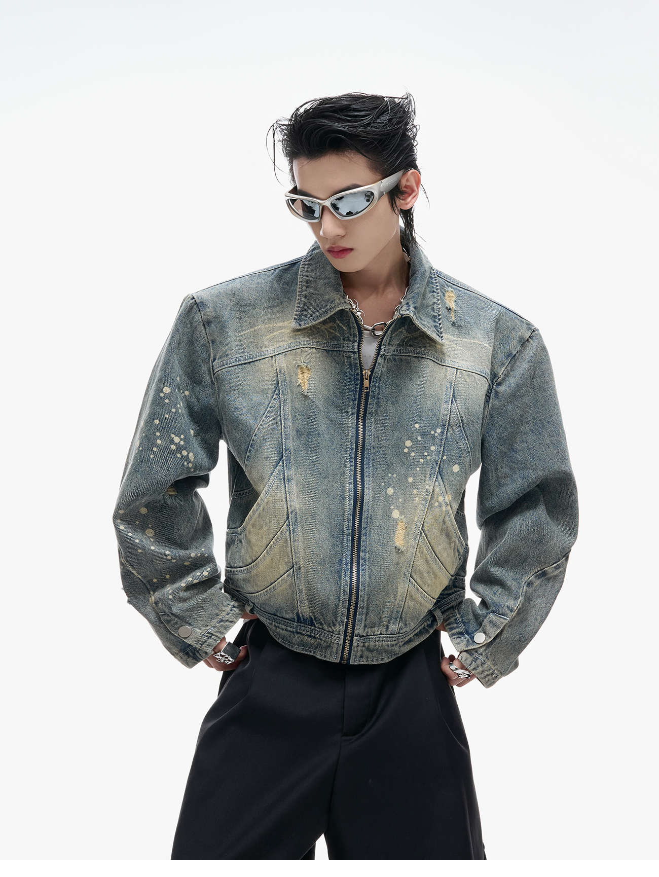 Damage Washed Zipper Jacket WN20547