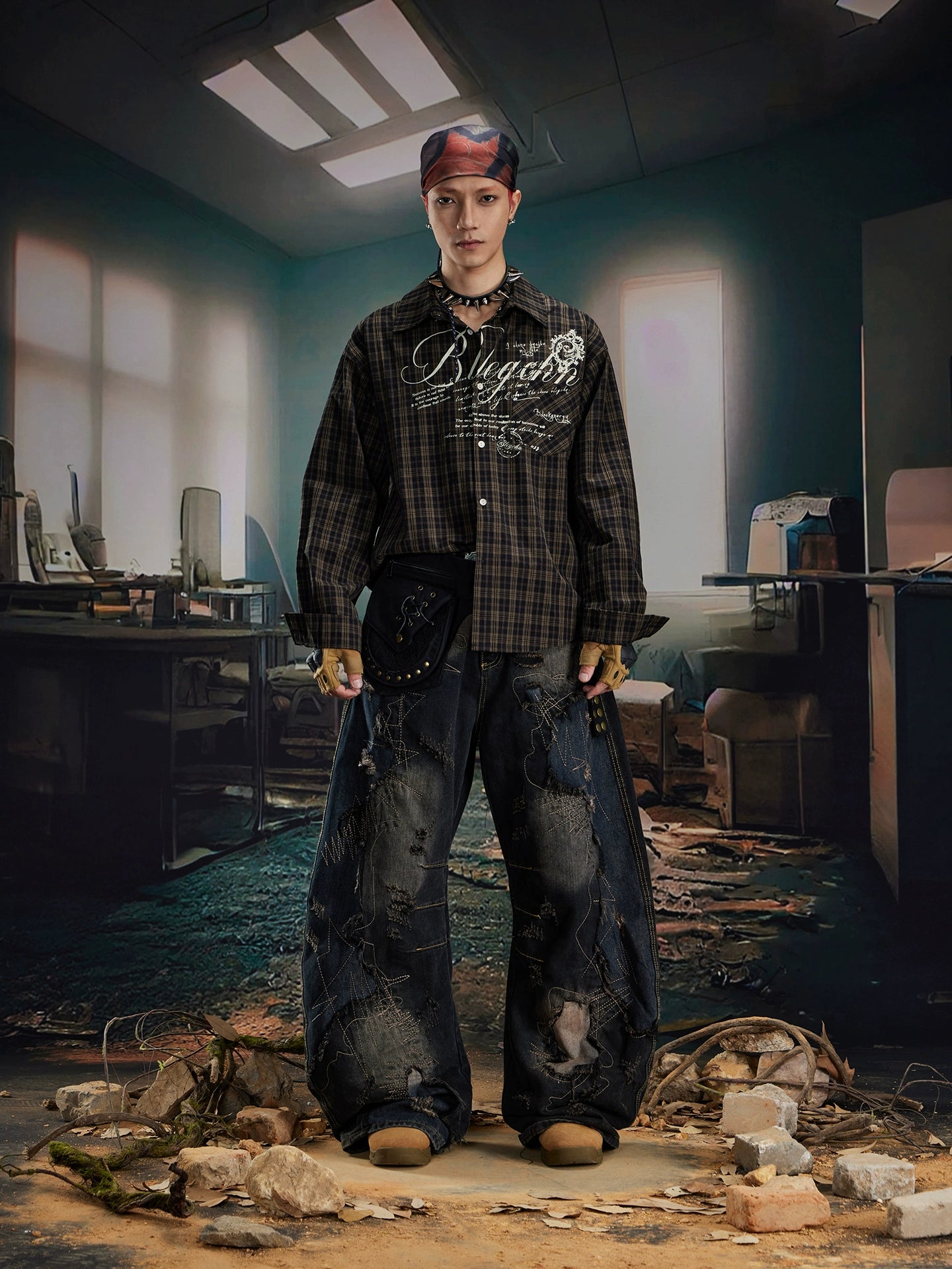 Print Oversize Plaid Long Sleeve Shirt WN20558
