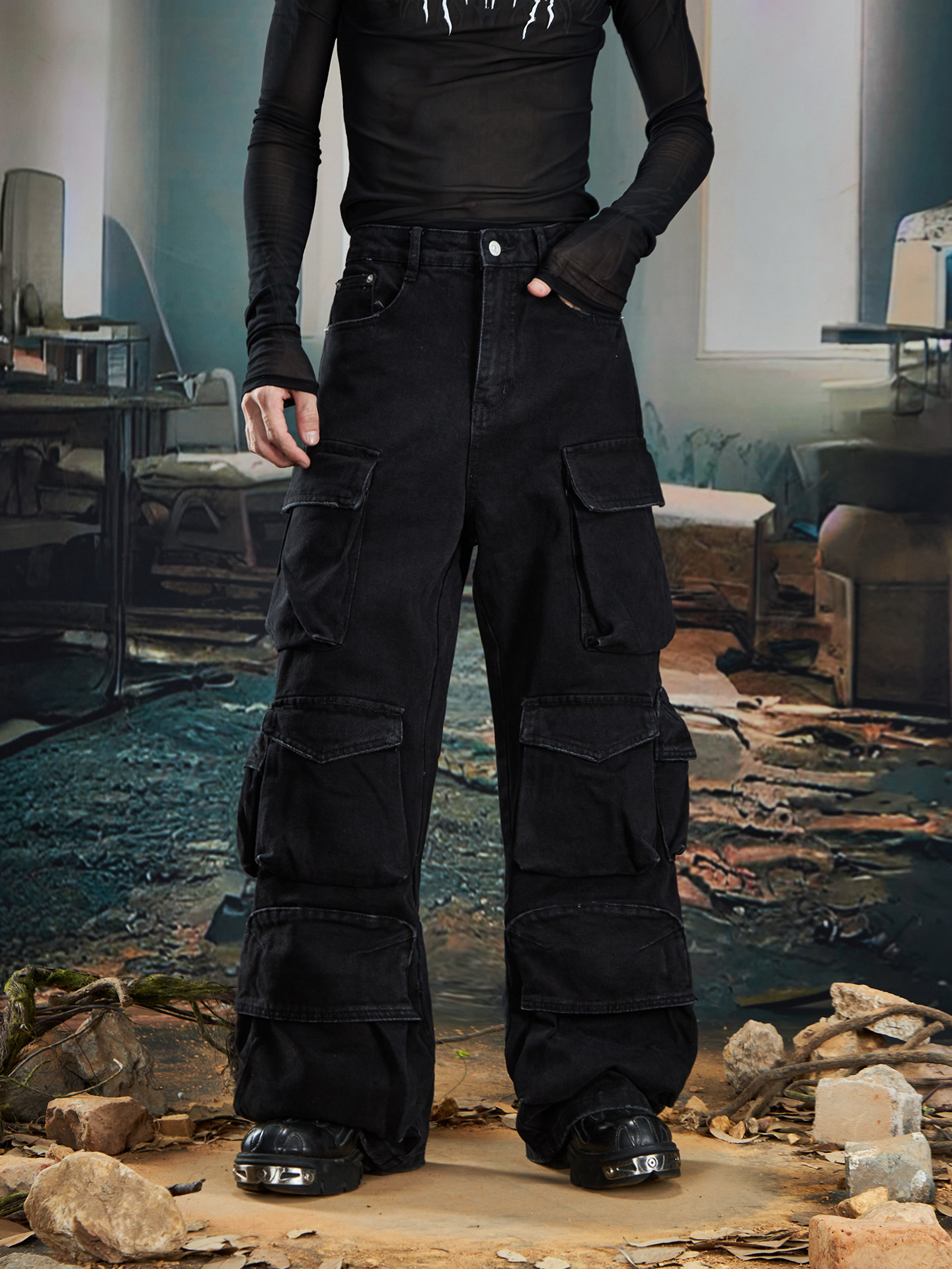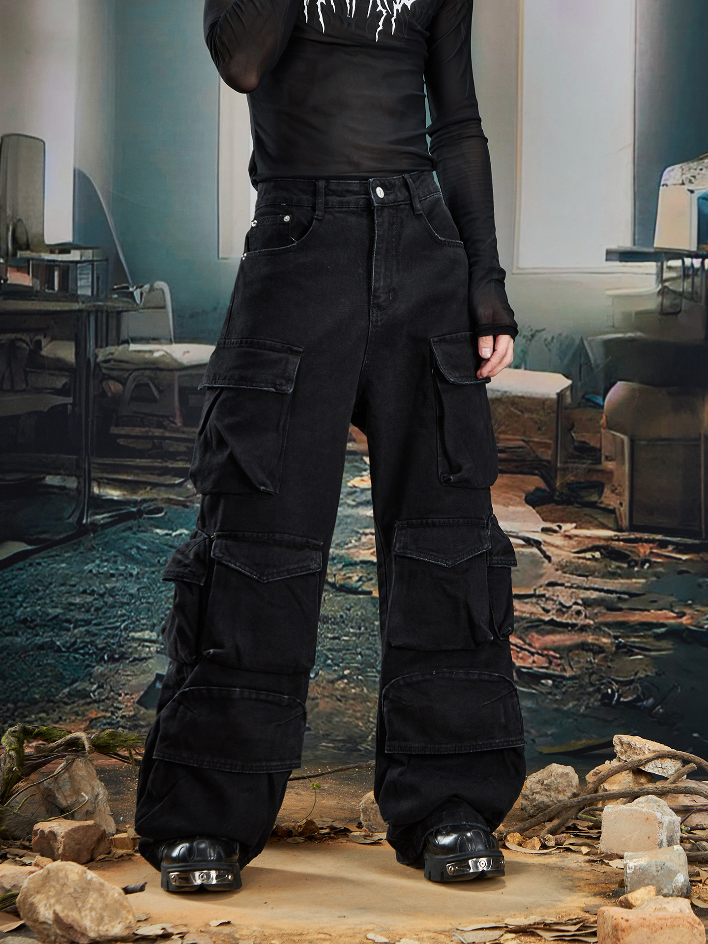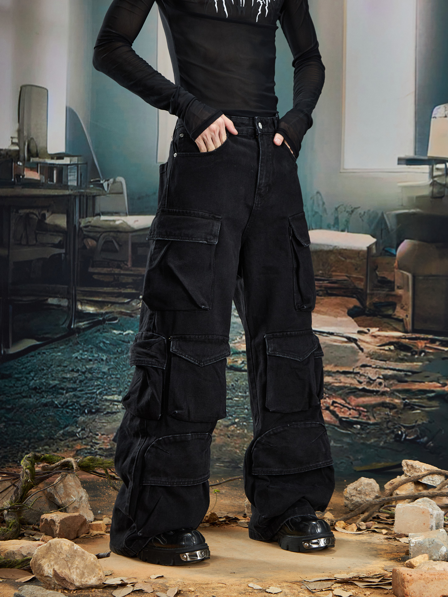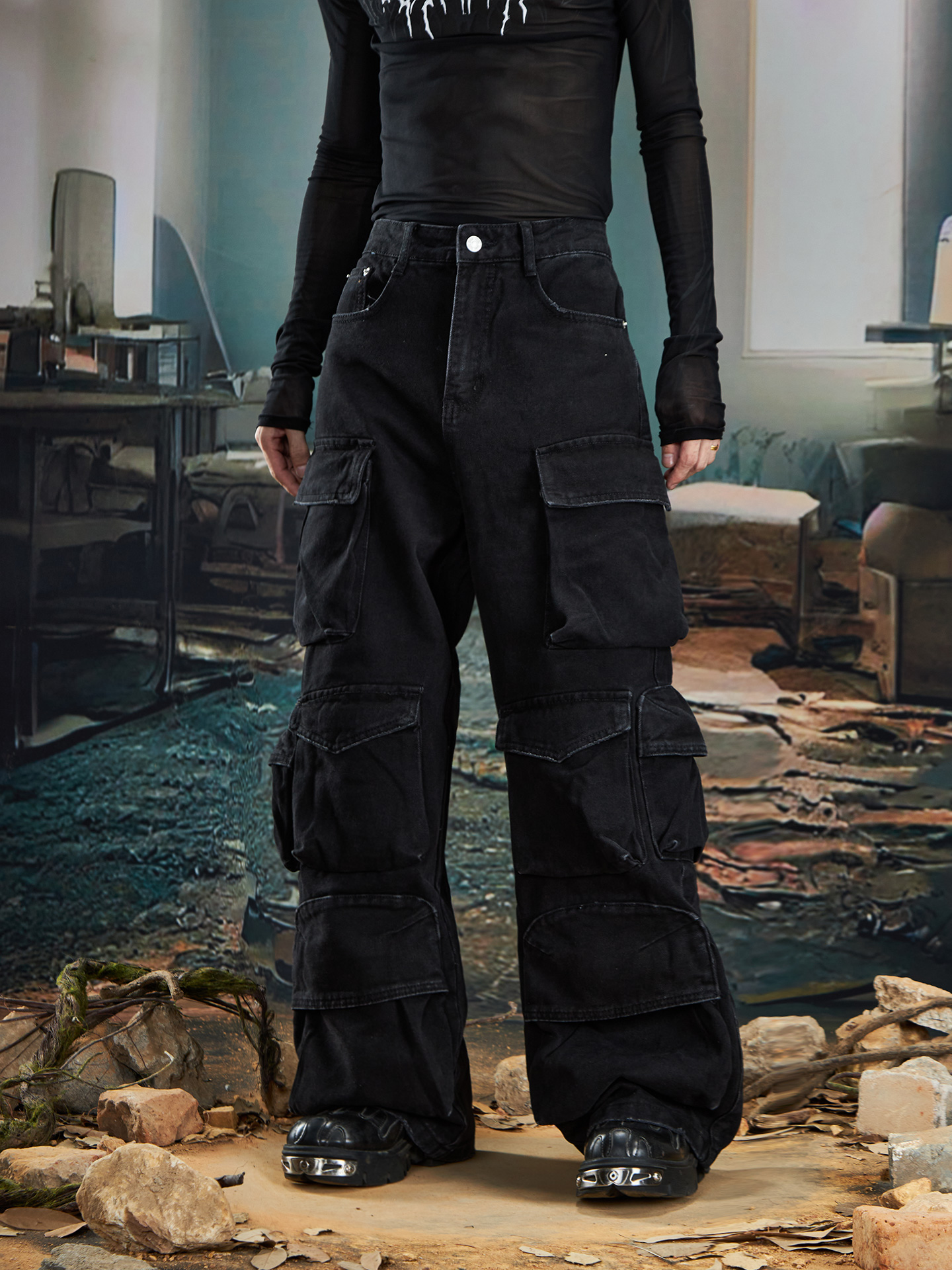 Washed Damage Multi-Pocket Cargo Denim Jeans WN20572
