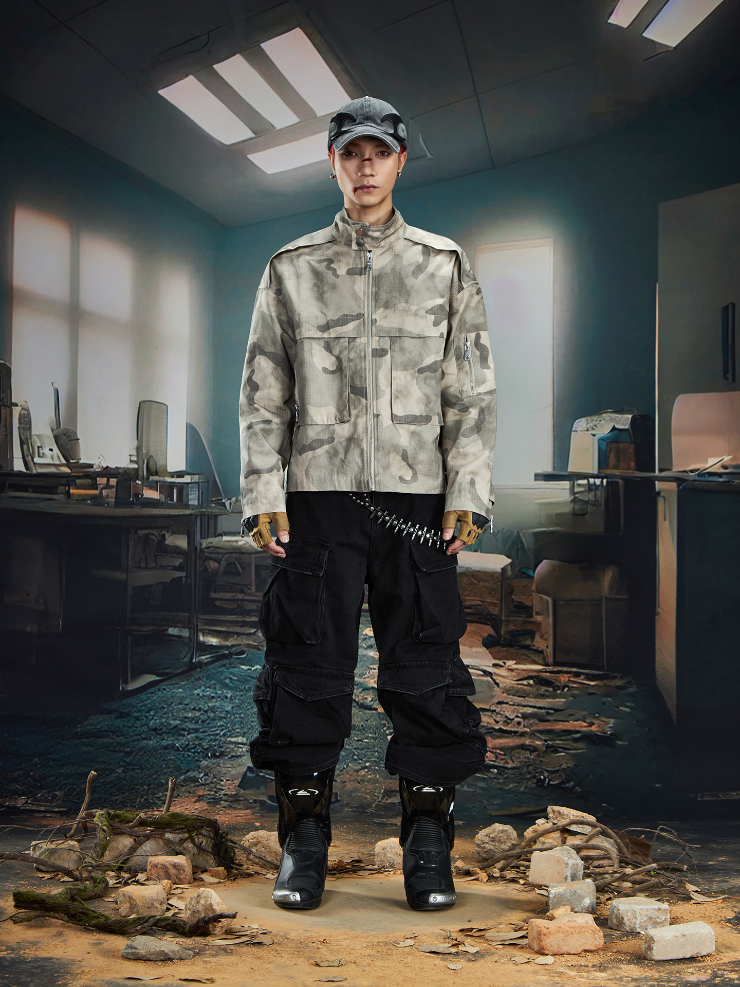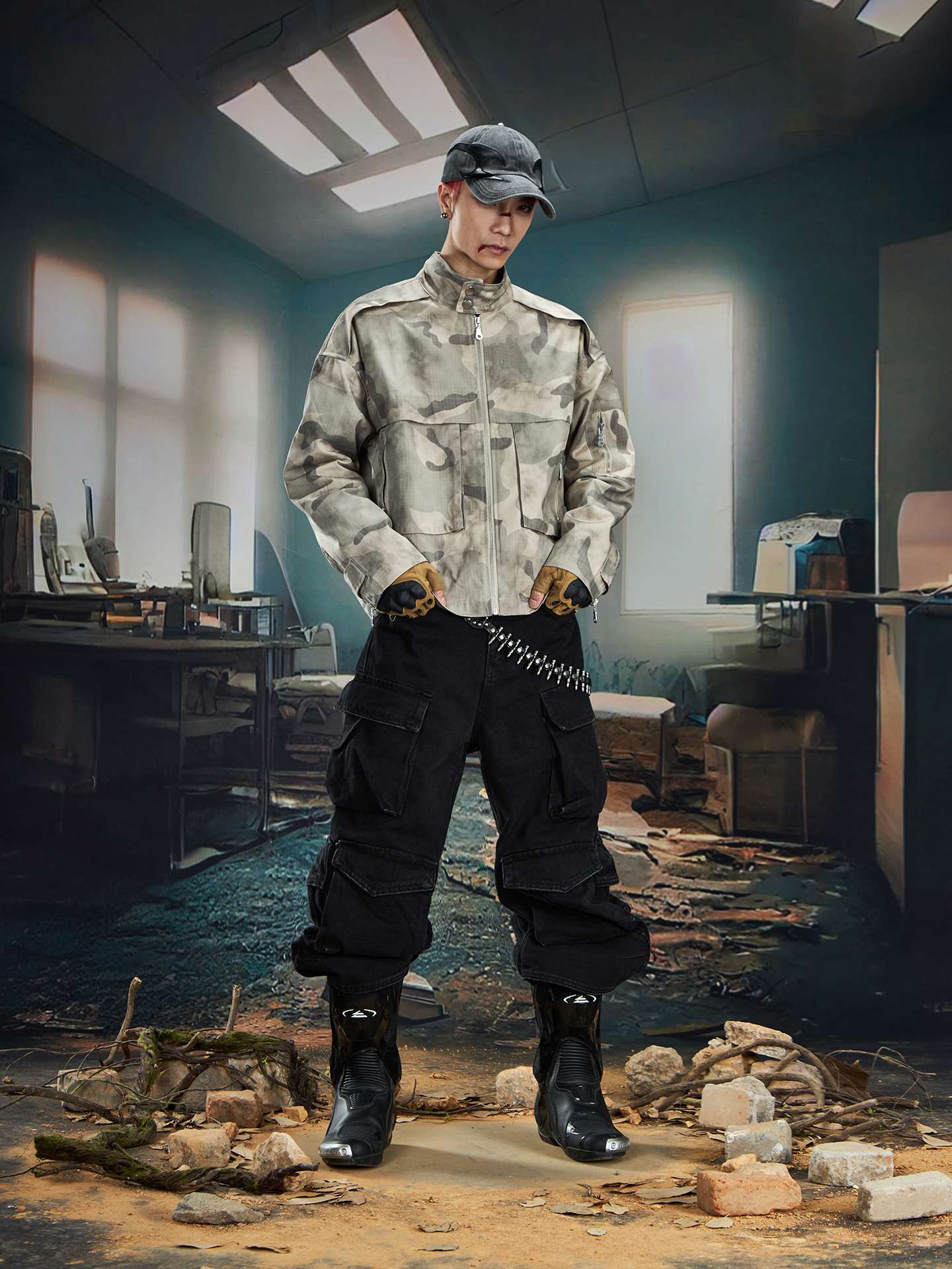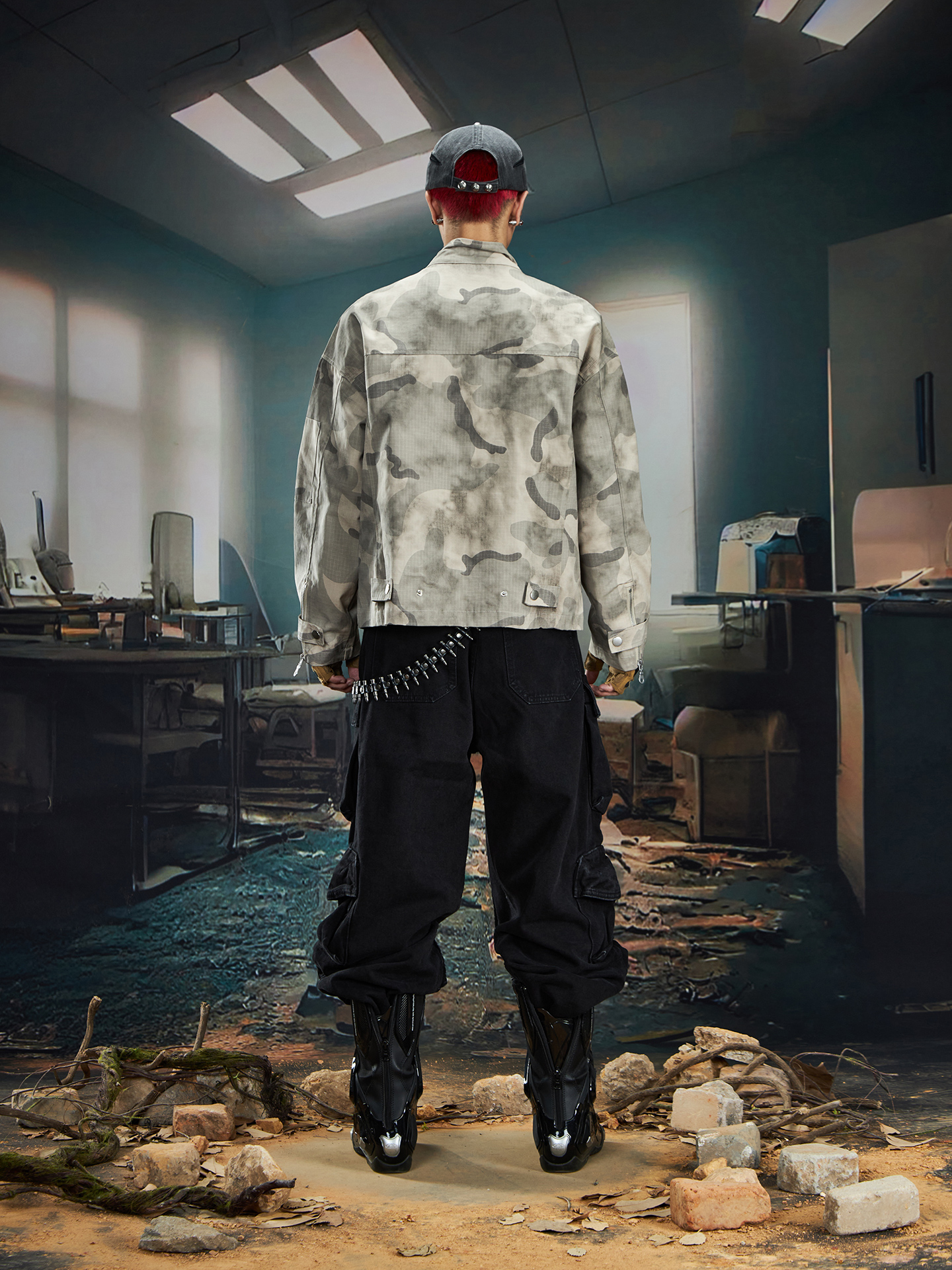 Washed Damage Multi-Pocket Cargo Denim Jeans WN20572