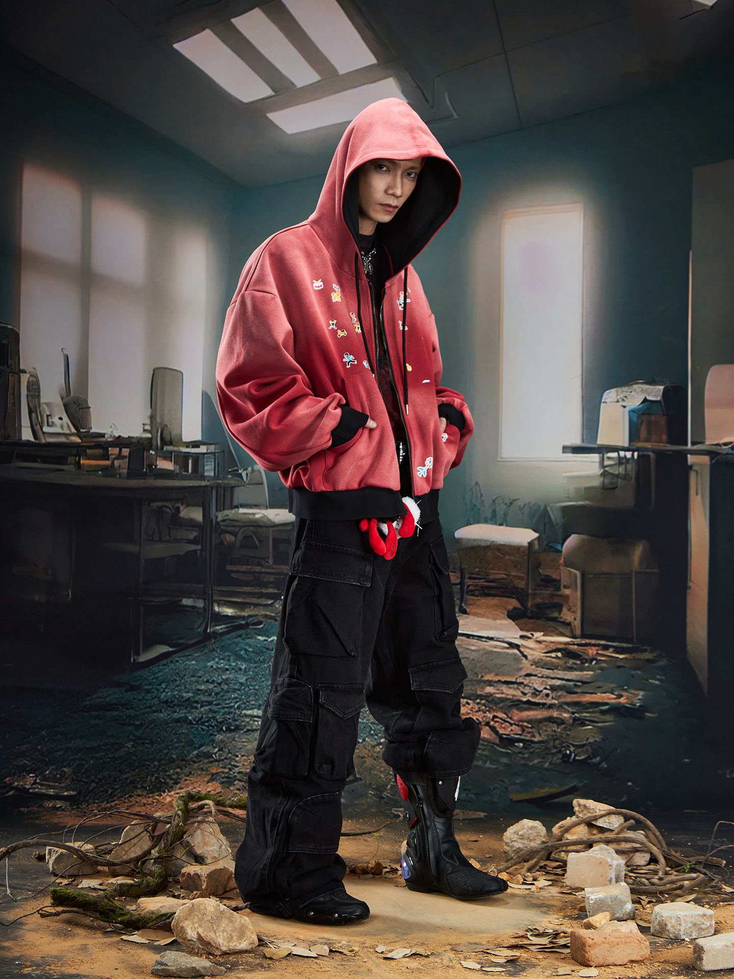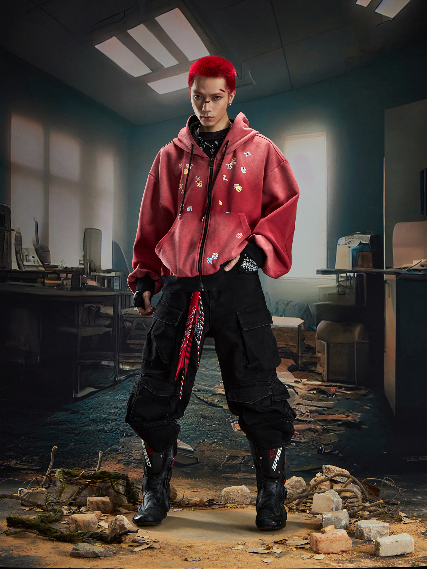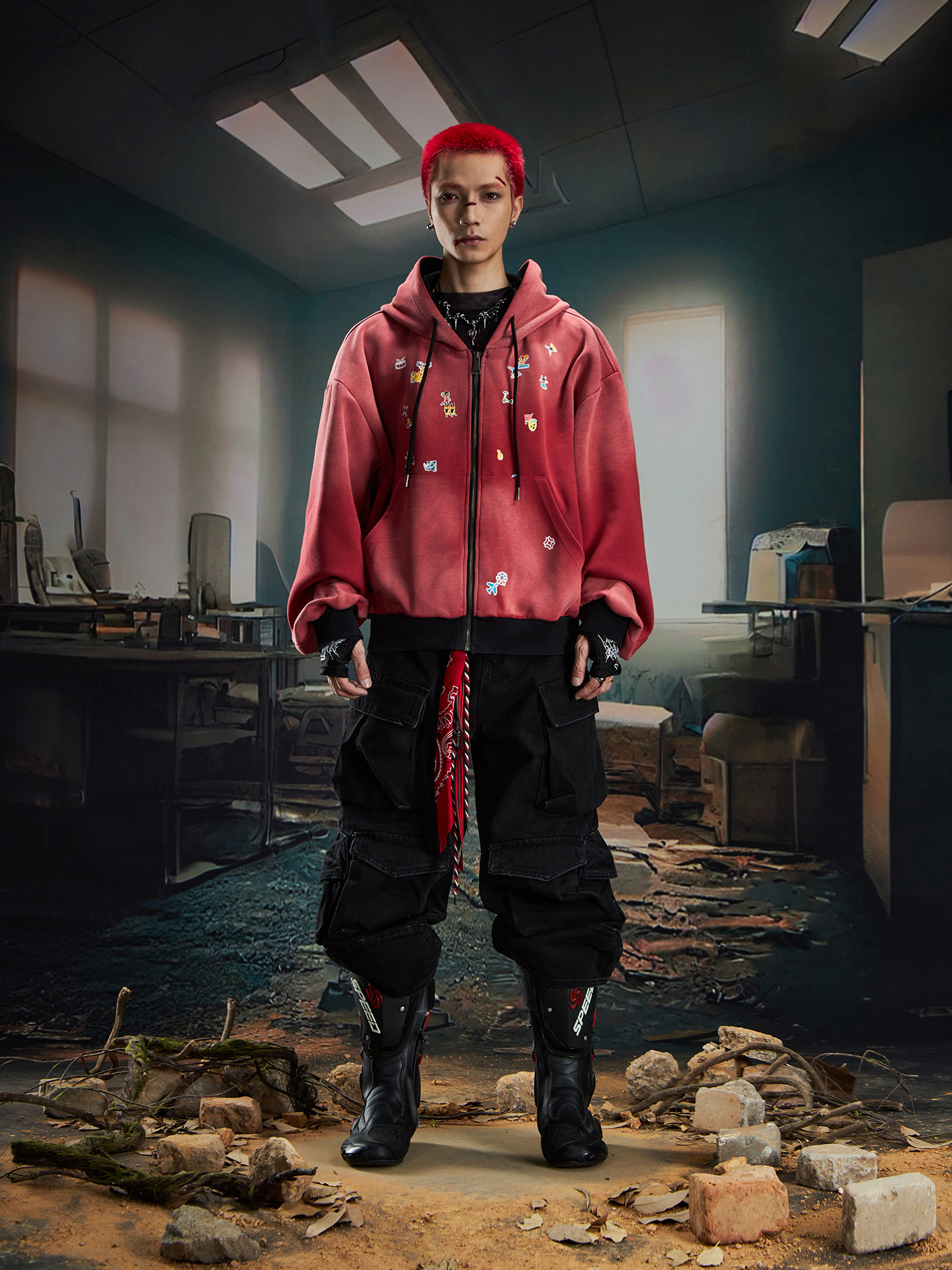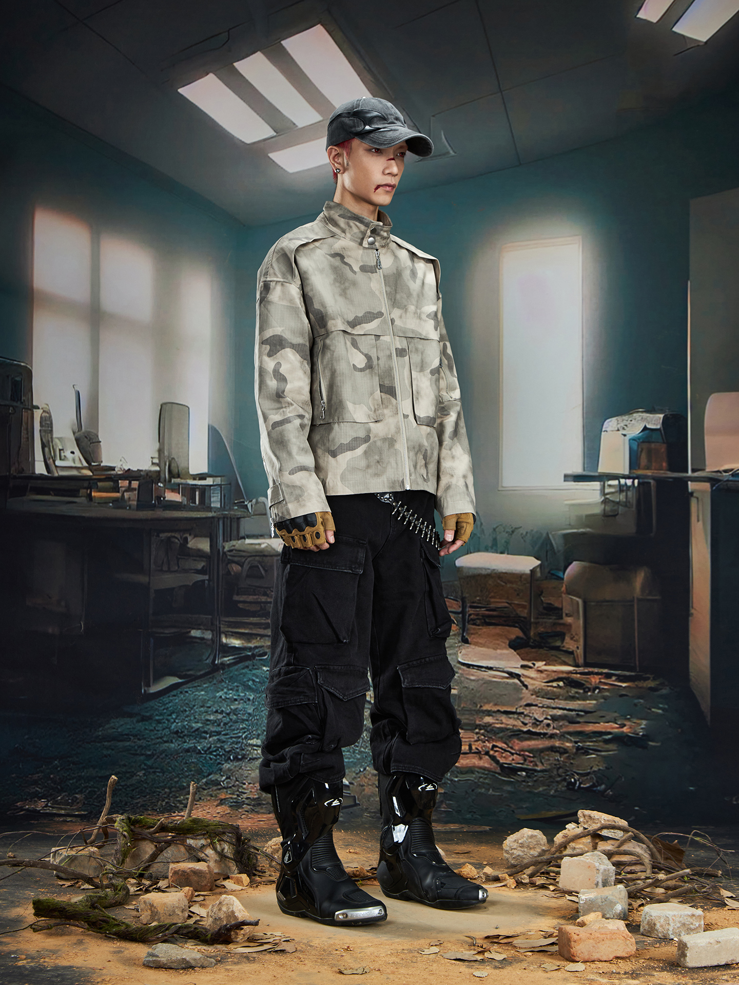 Washed Damage Multi-Pocket Cargo Denim Jeans WN20572