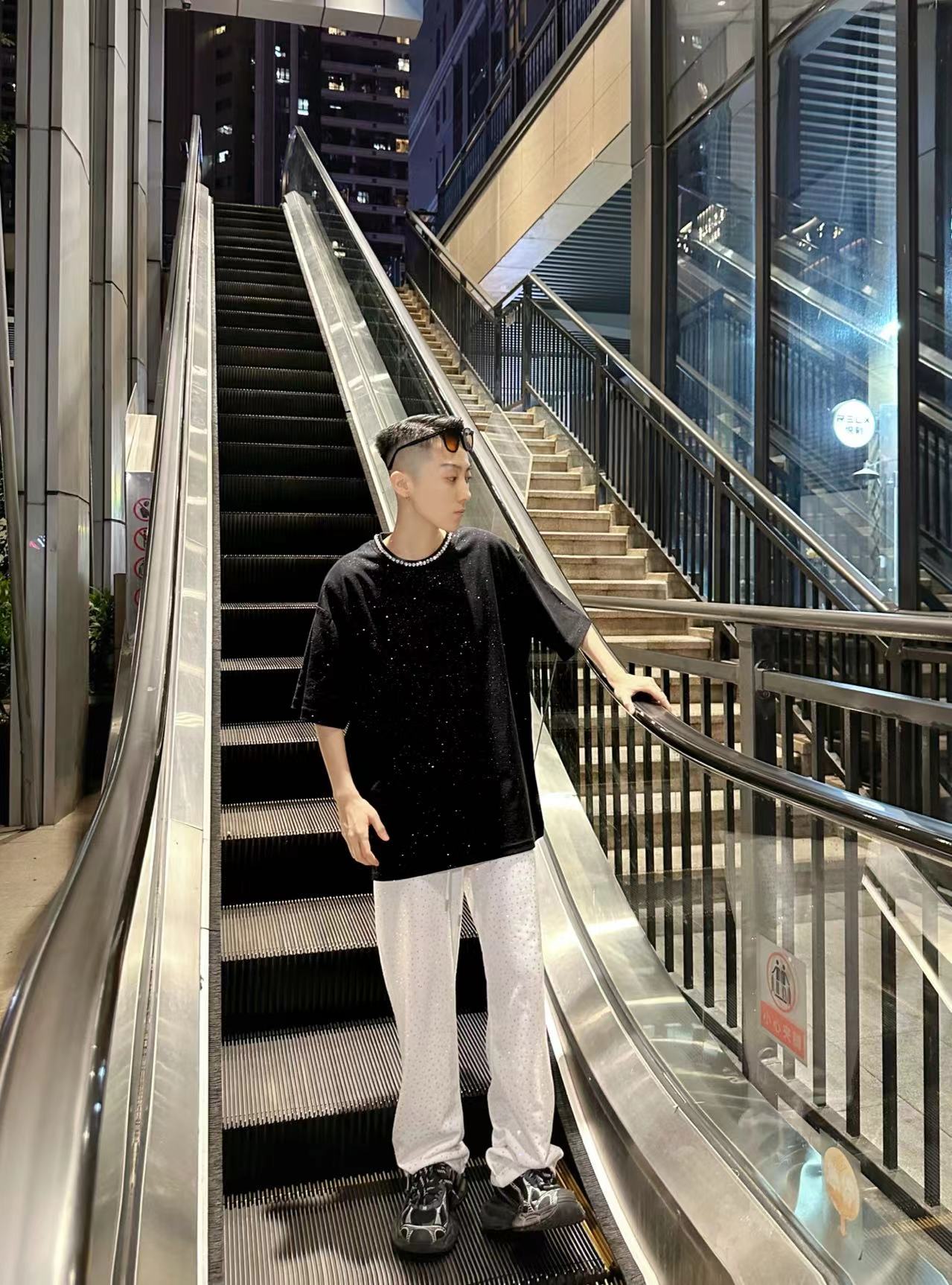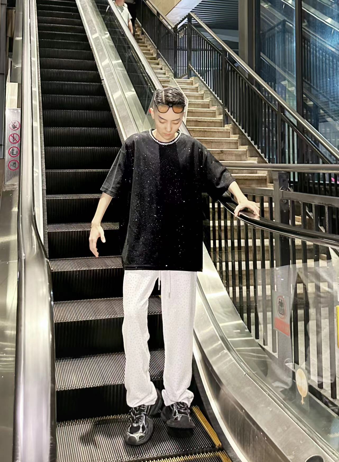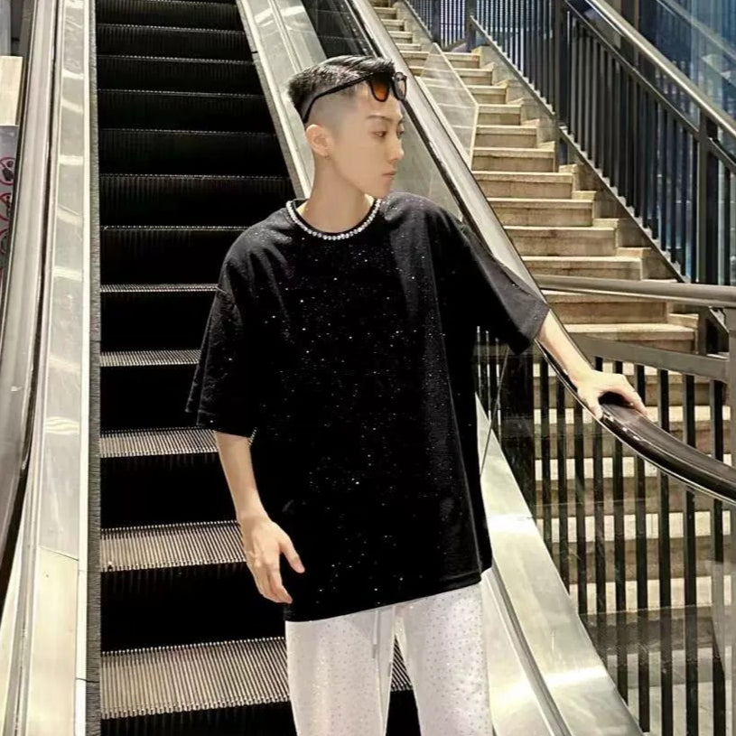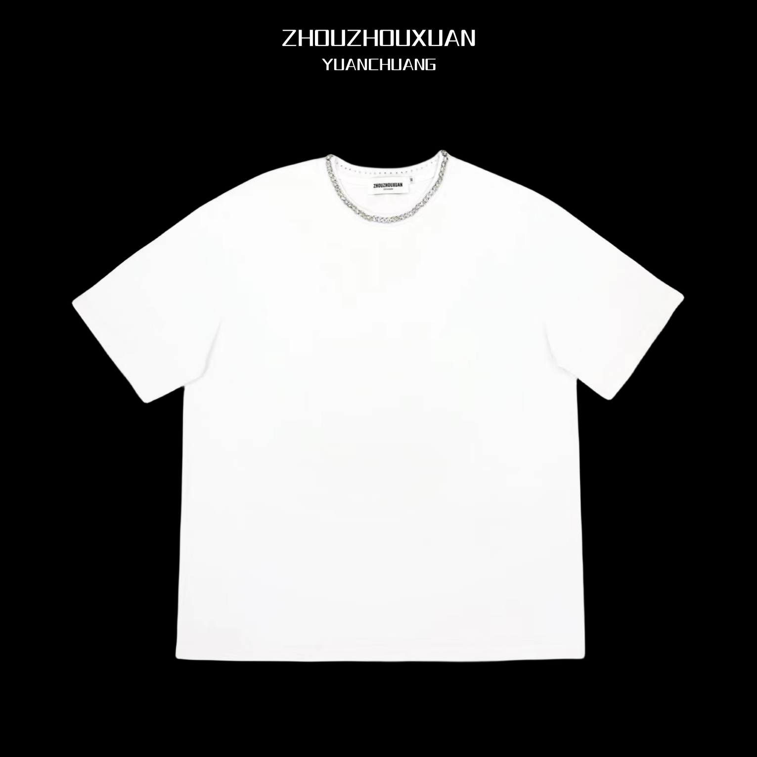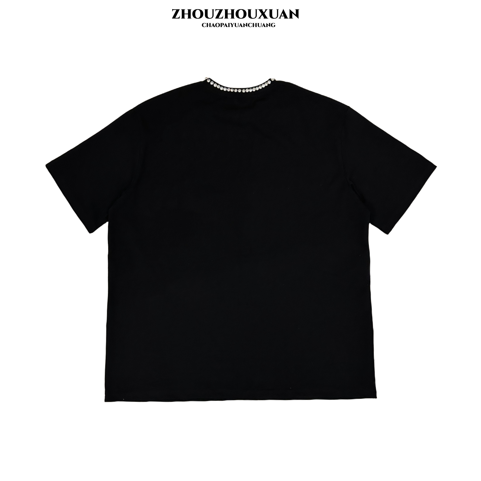 Rhinestone Neckline Heavyweight Oversize Short Sleeve T-Shirt WN20706