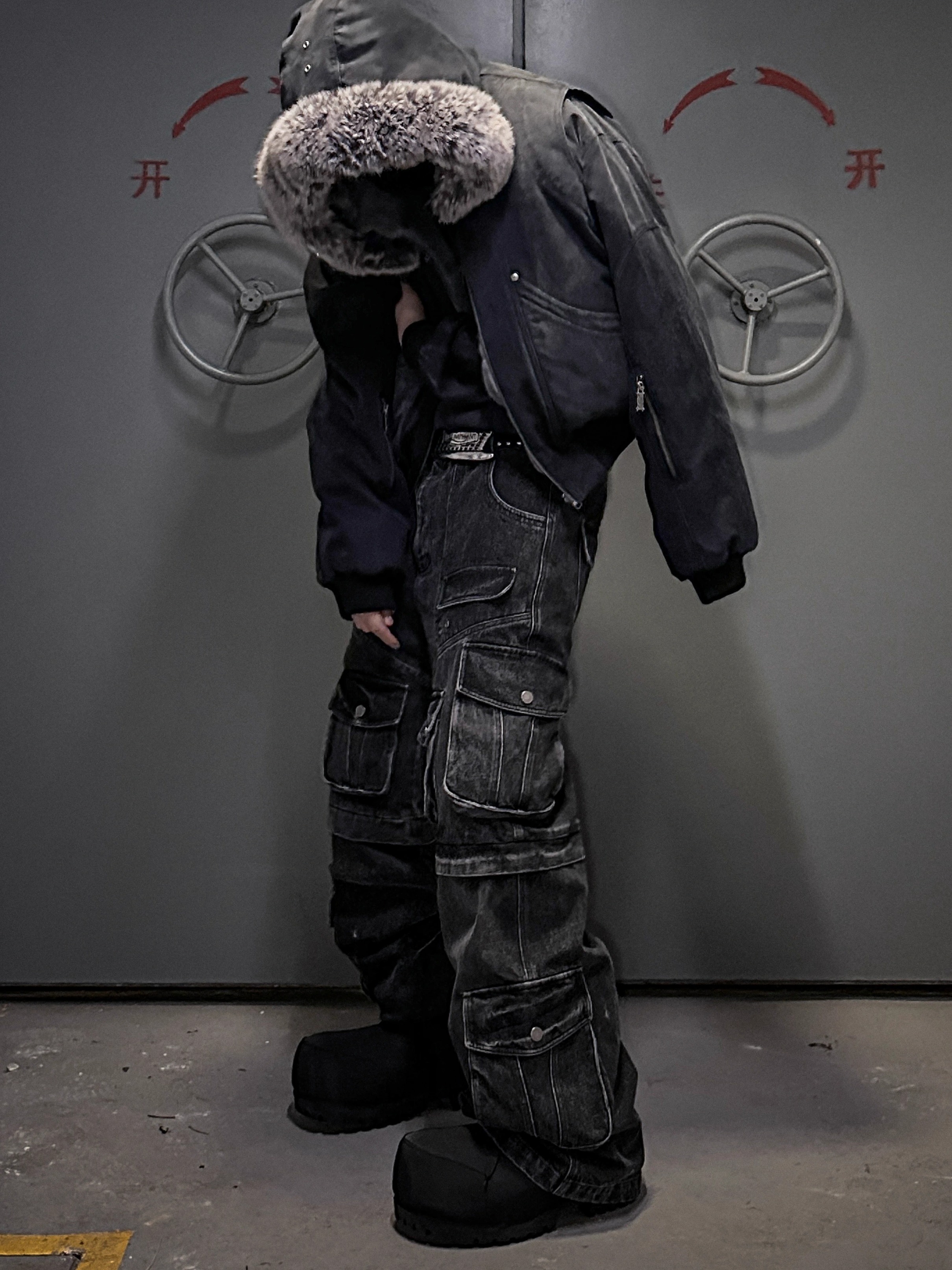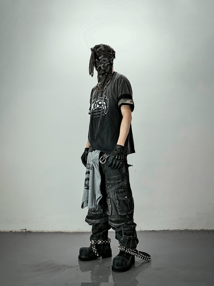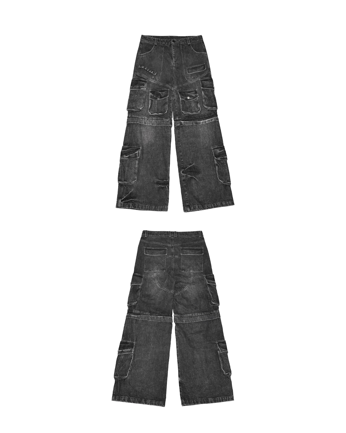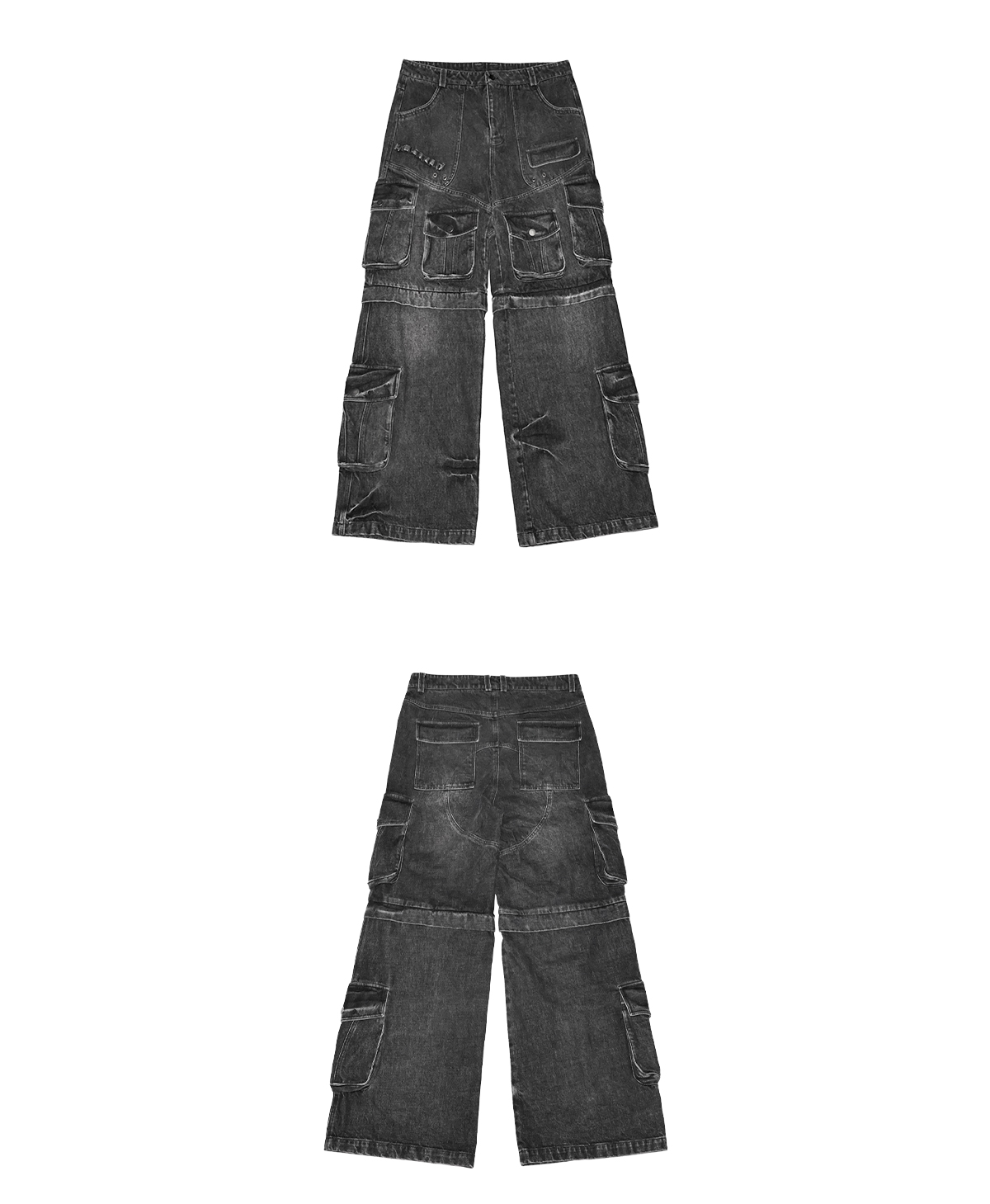 Multi Pocket Washed Heavyweight Cargo Denim Jeans WN20840