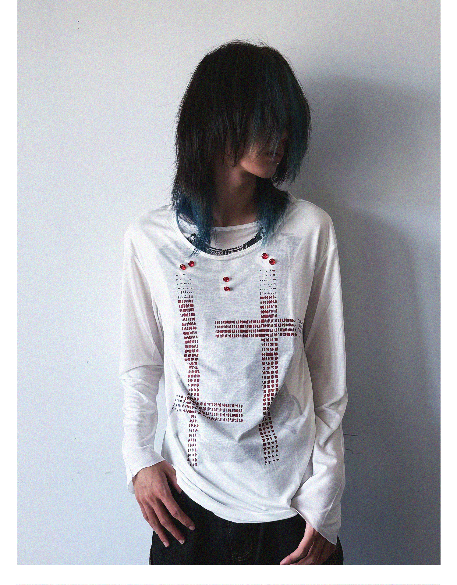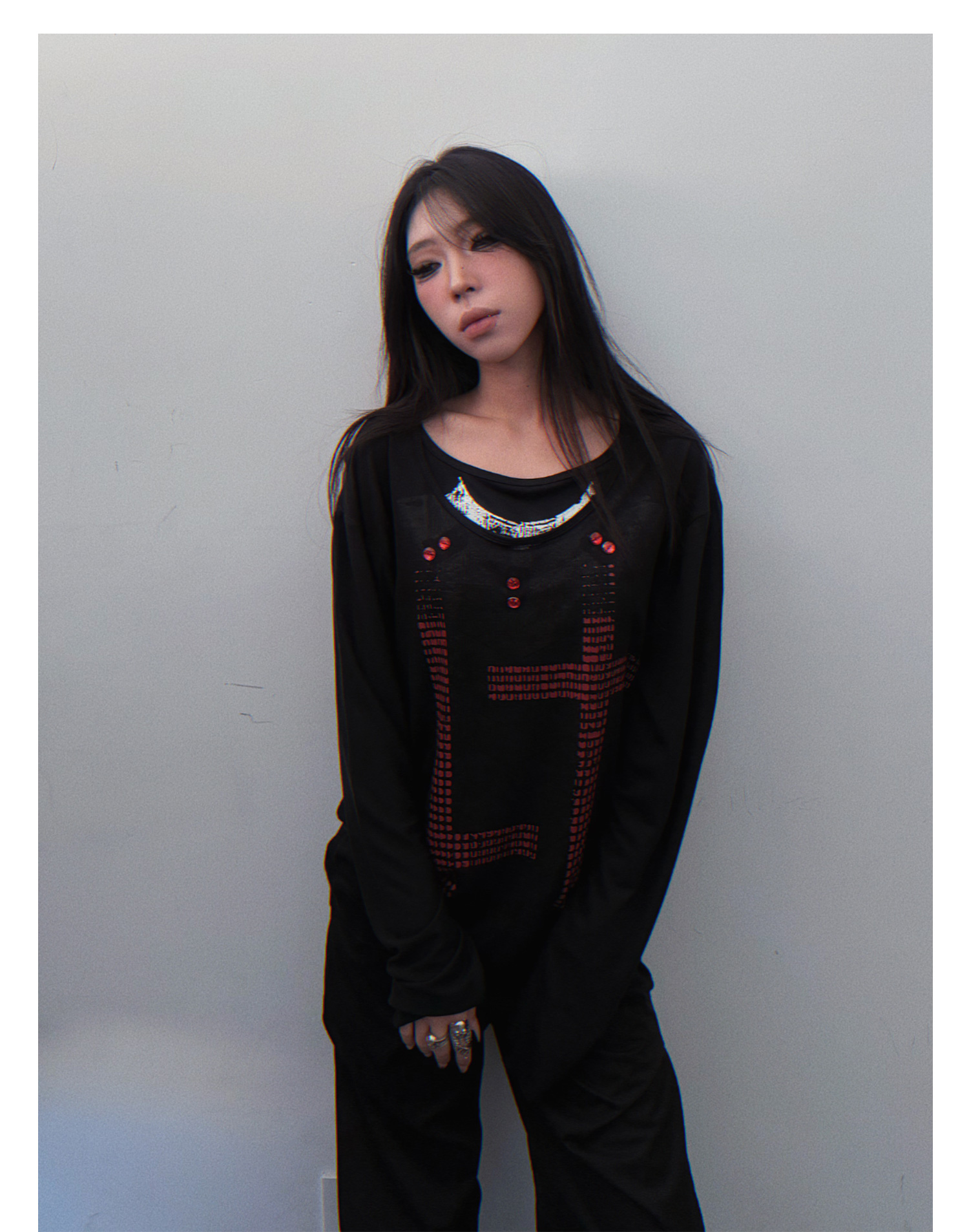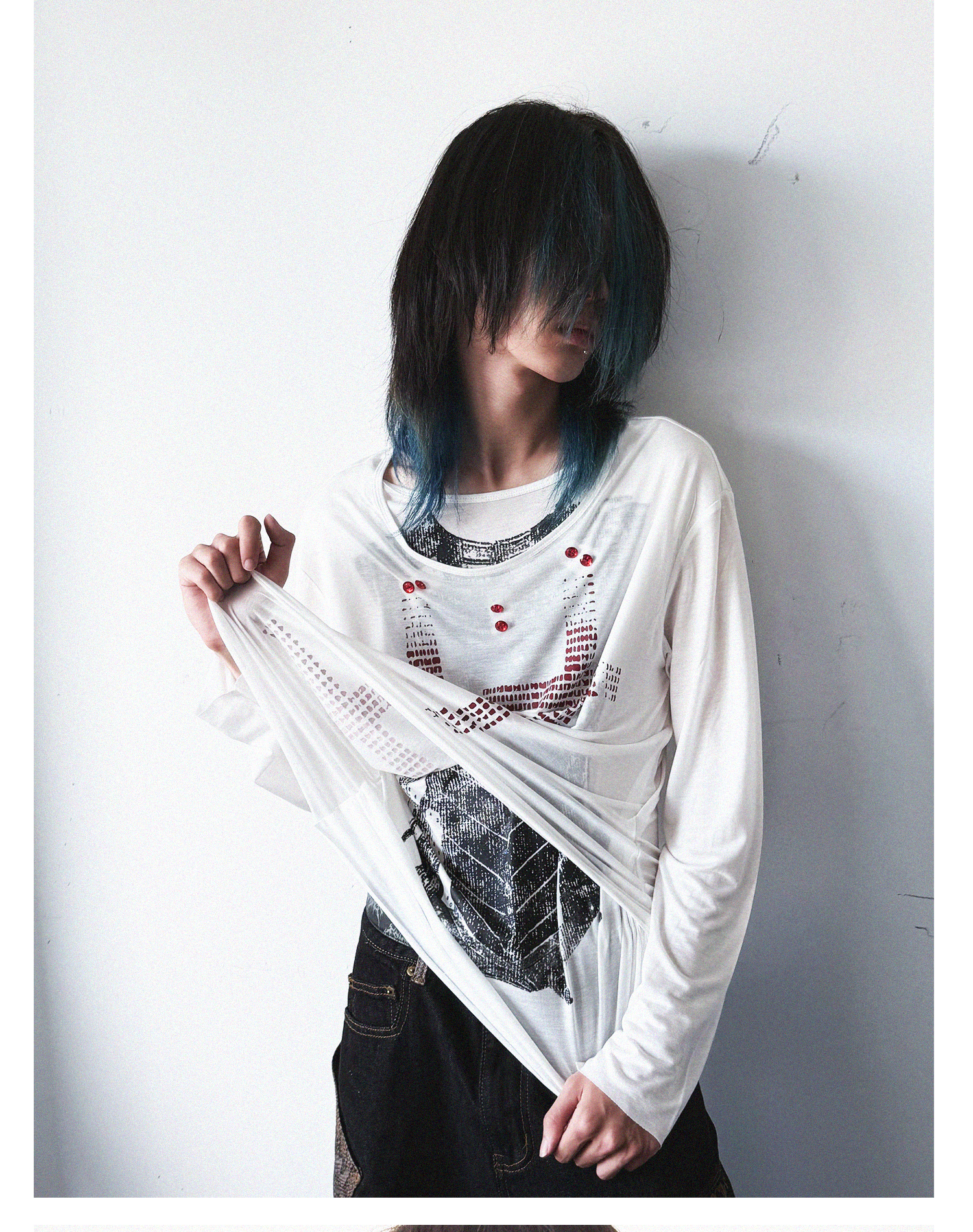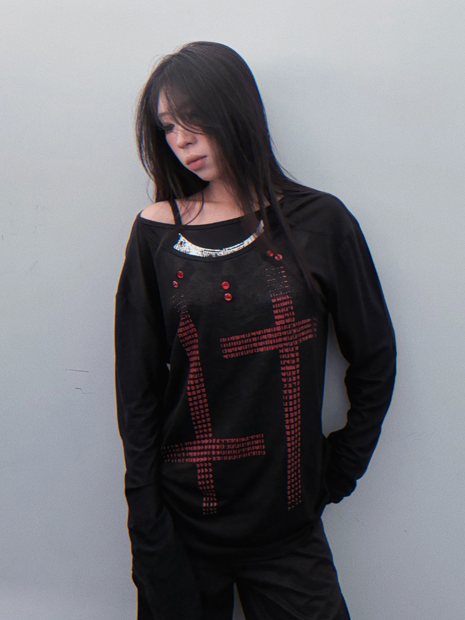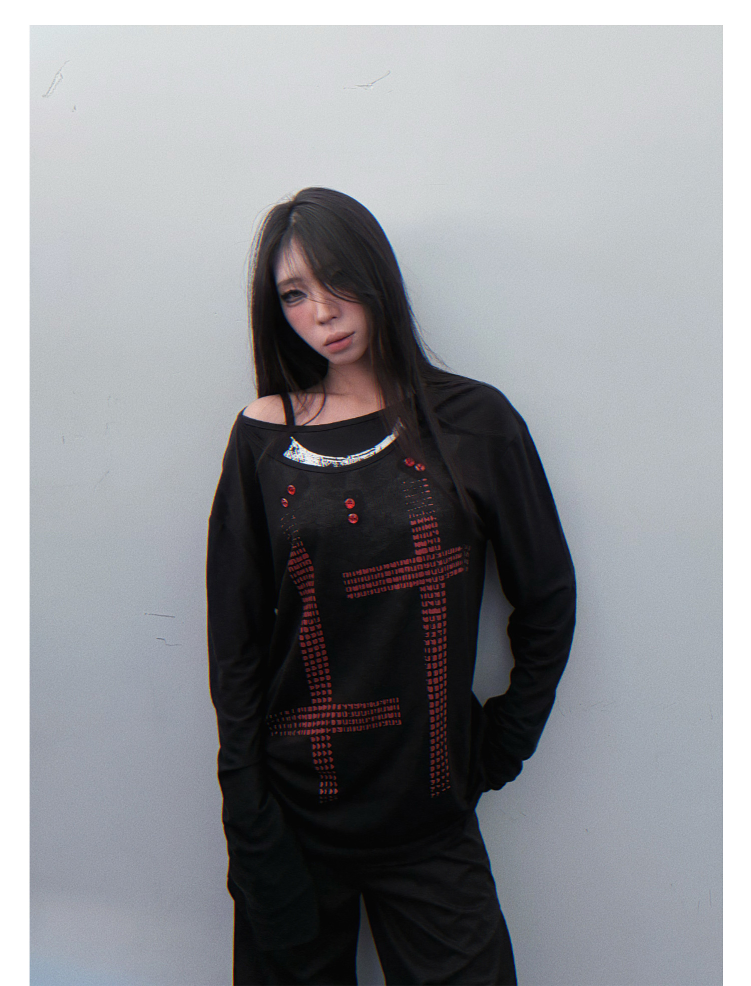 Graphic Design Fake Layered Long Sleeve T-shirt WN20908