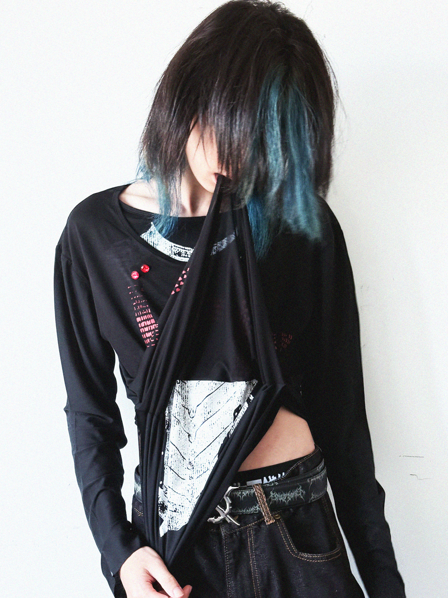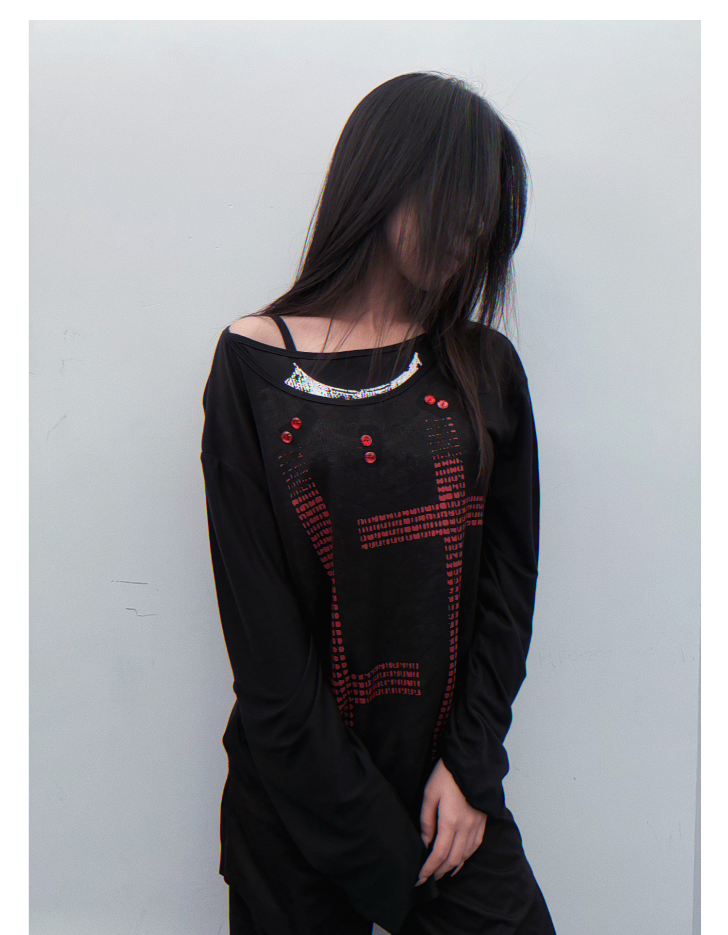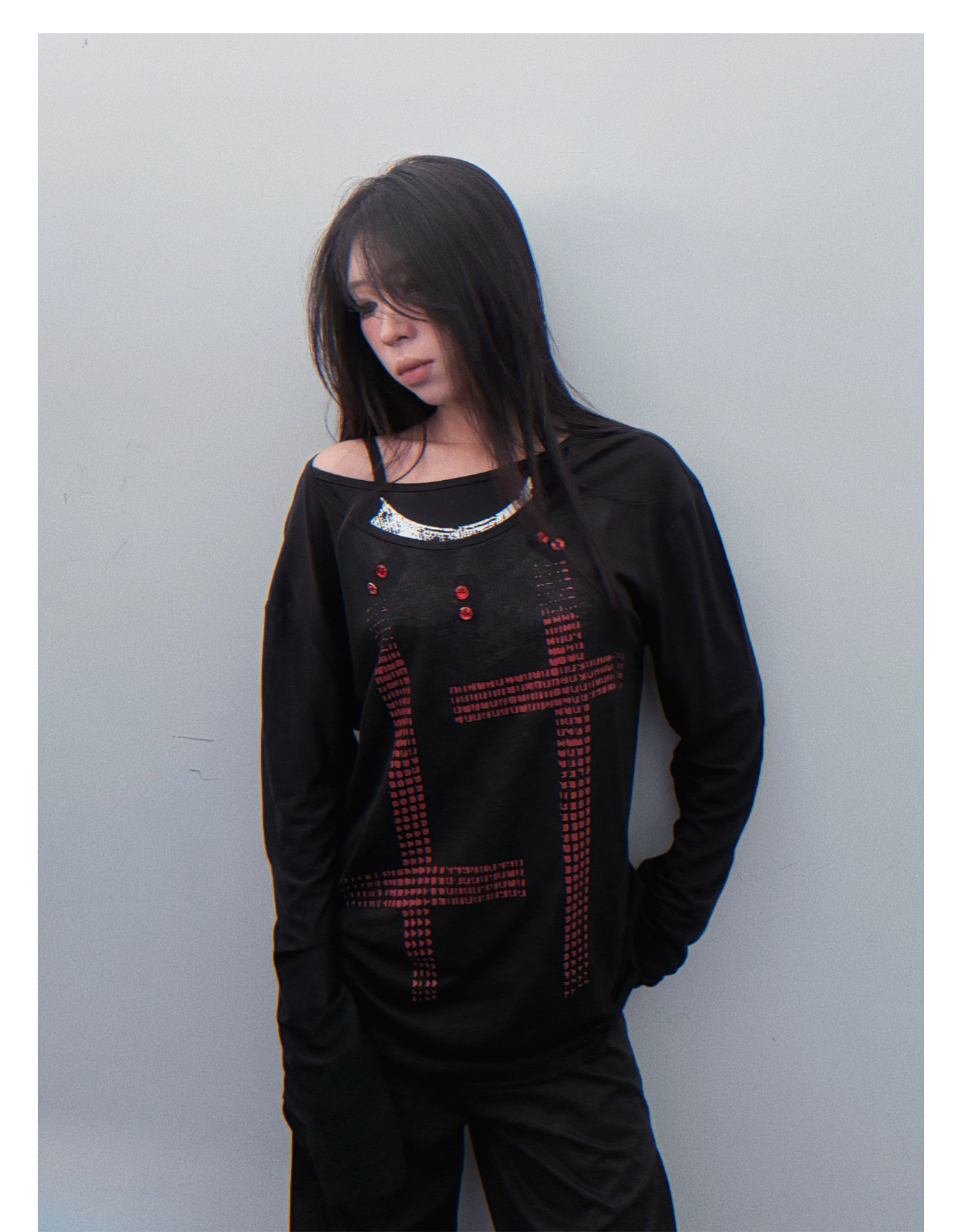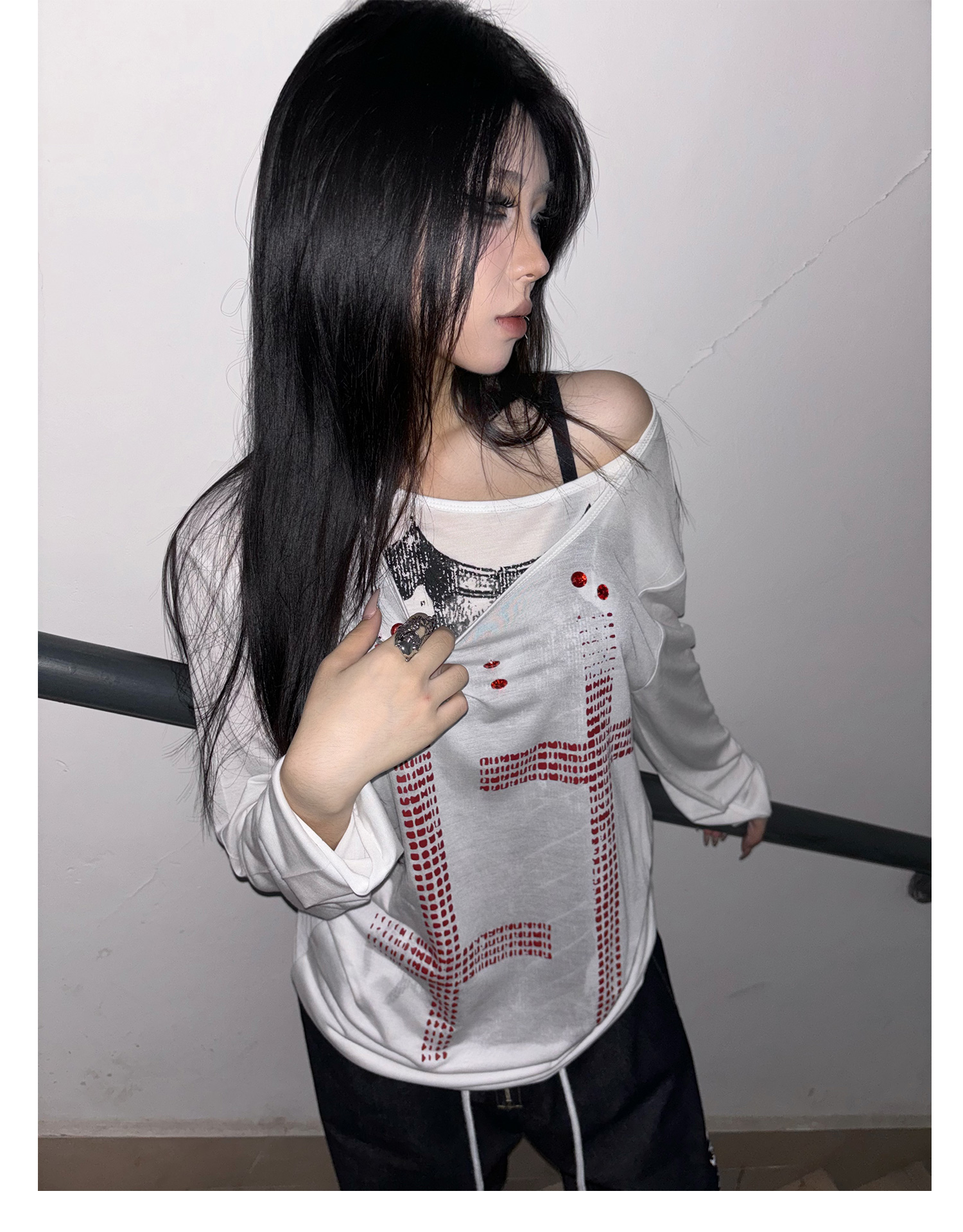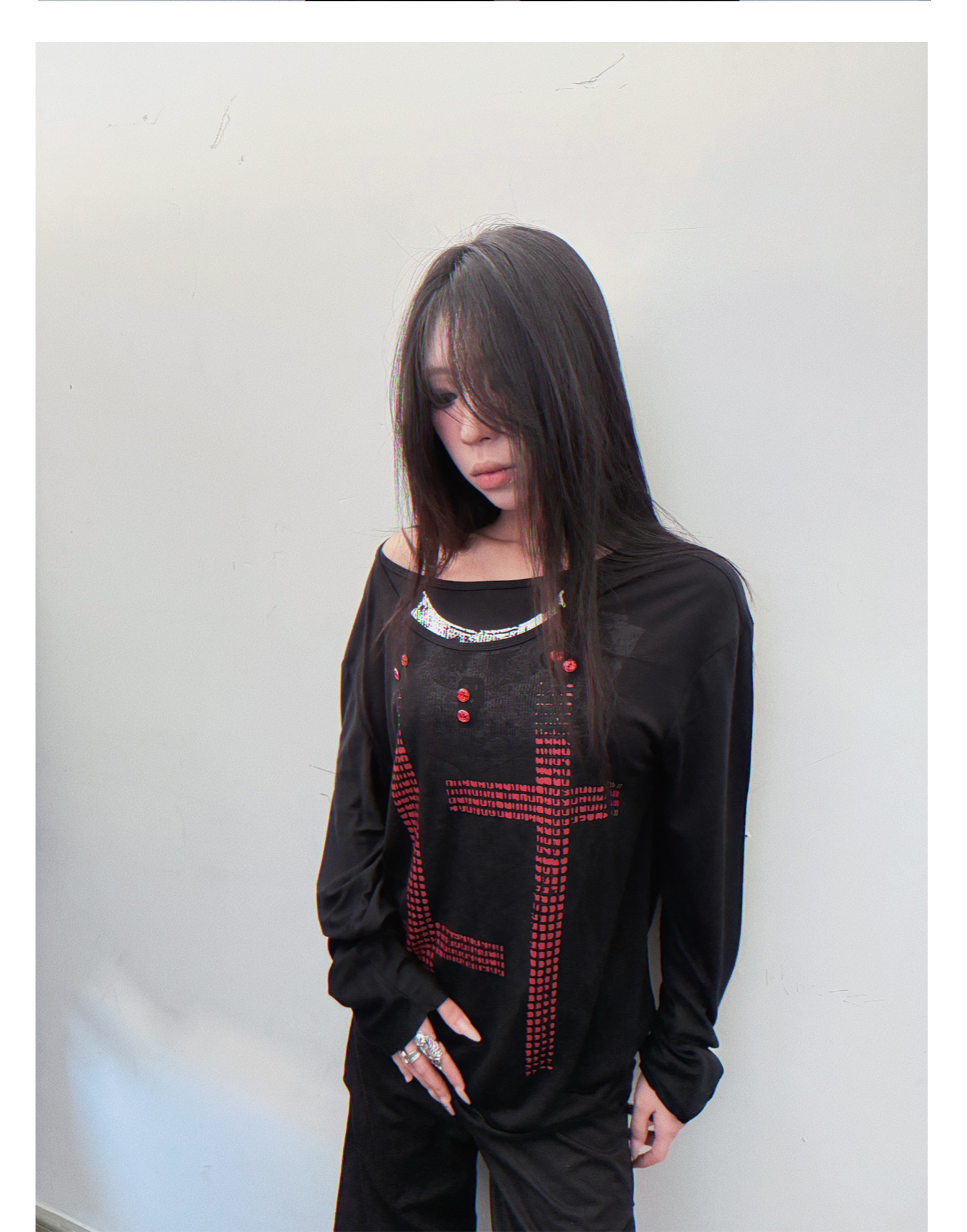 Graphic Design Fake Layered Long Sleeve T-shirt WN20908