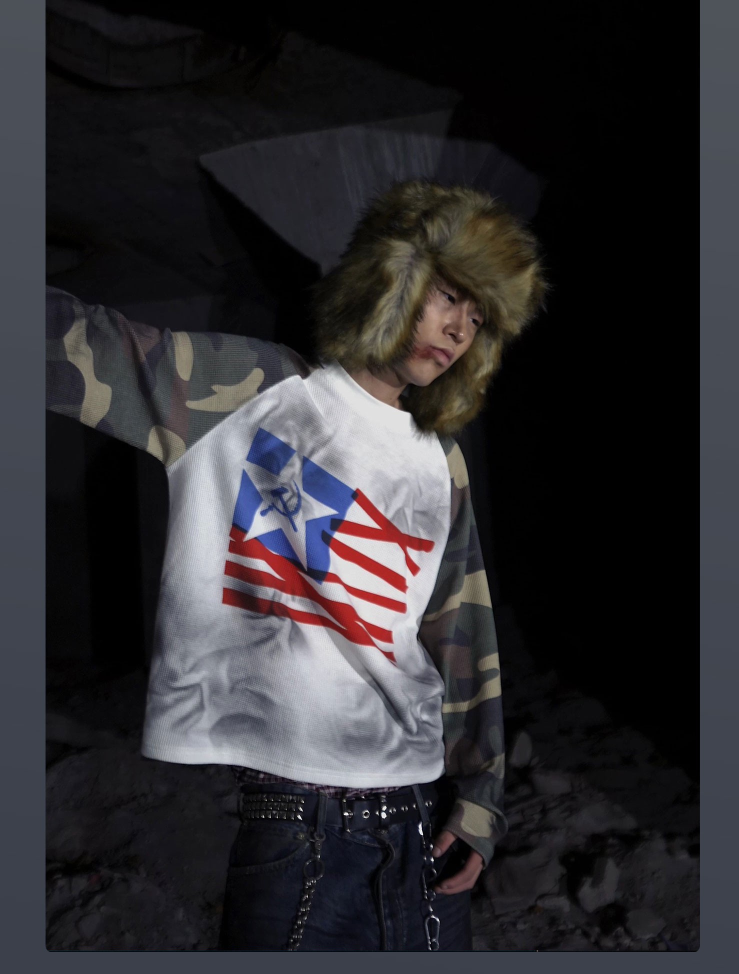 Camouflage Design Print Raglan Long Sleeve T-Shirt WN20962