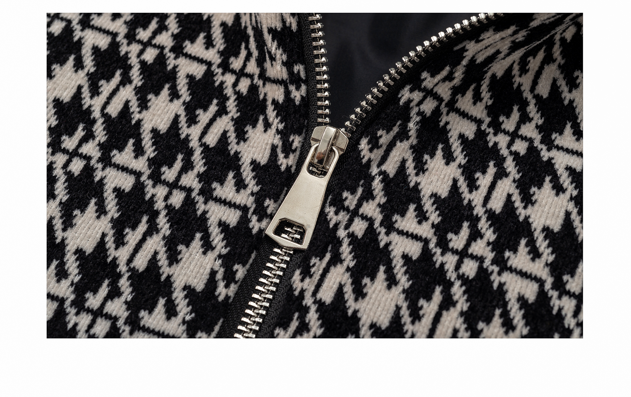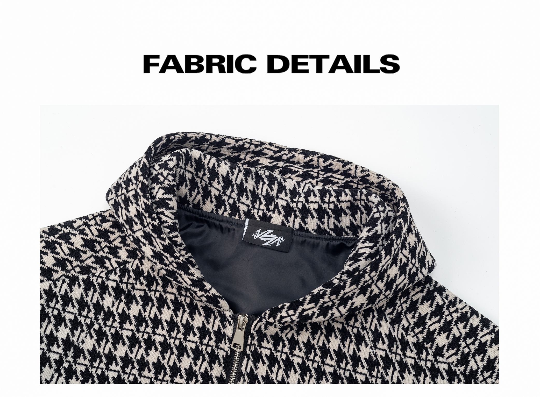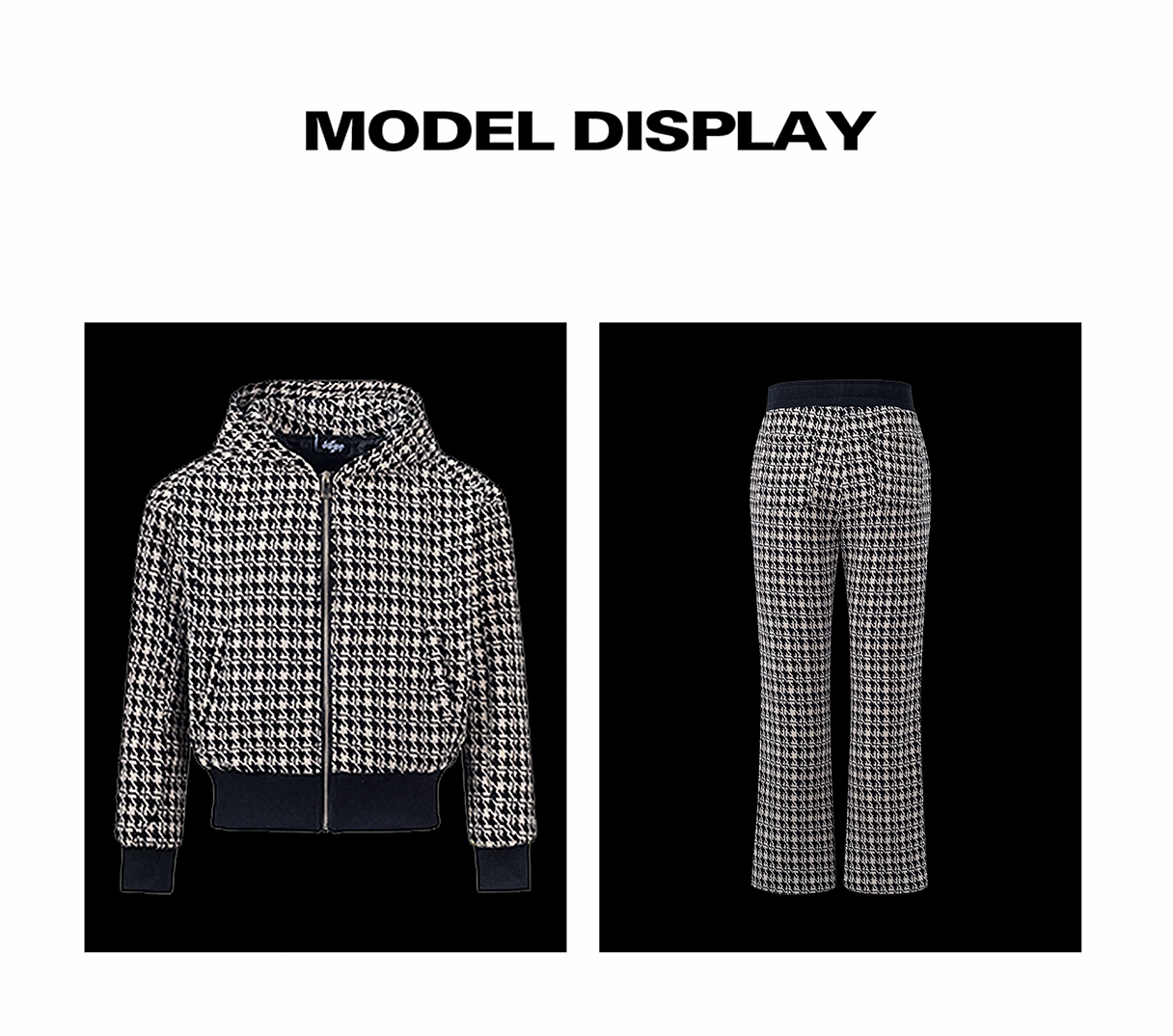 Houndstooth Hooded Zipper Jacket & Micro Flare Pants Setup WN21011